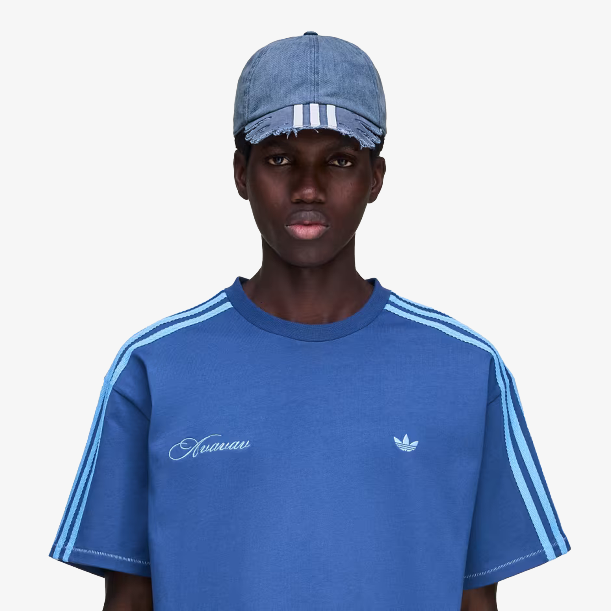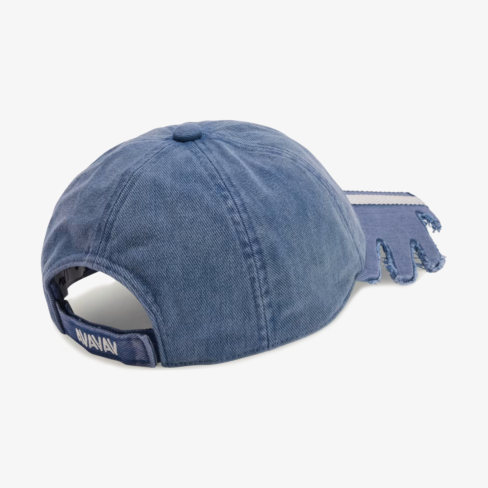 An adidas x Avavav cap with cut-out, raw-edge distressing.