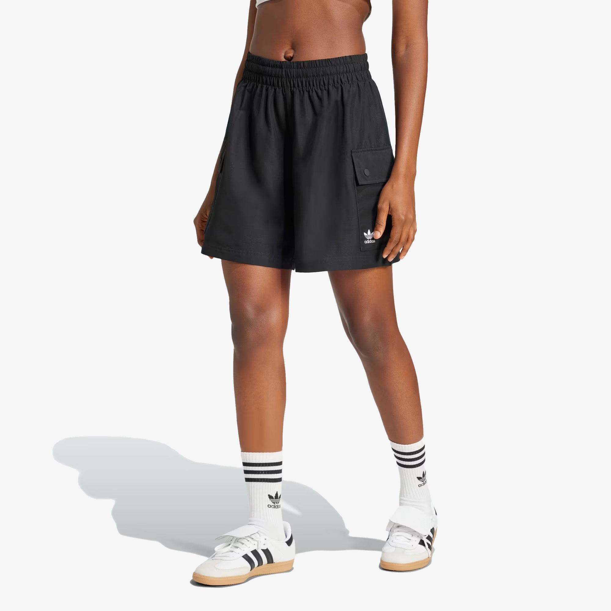 Adidas Originals | ESSENTIALS WOVEN HIGH-WAIST CARGO SHORTS { BLACK
