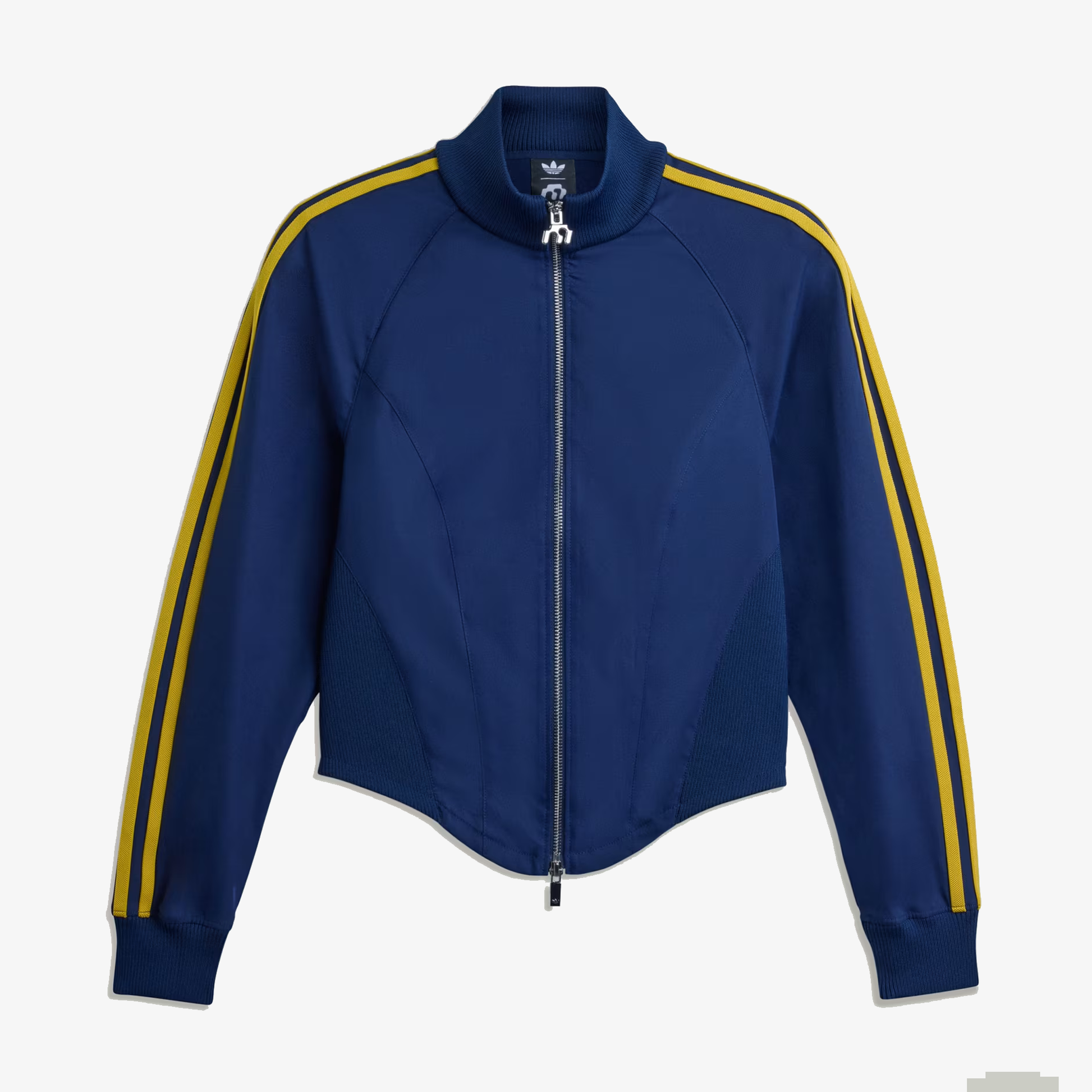 Meet the adidas Miaou Corset Tracktop. This fusion of edgy streetwear and sports style delivers a piece that is sleek and fashion-forward. Crafted with a slim fit, this track top is designed to complement your silhouette while keeping you comfortable. The twill construction adds a touch of elegance, while also offering durability. Whether you're heading to a casual outing or a sporty event, this track top is your go-to choice for a confident look.
