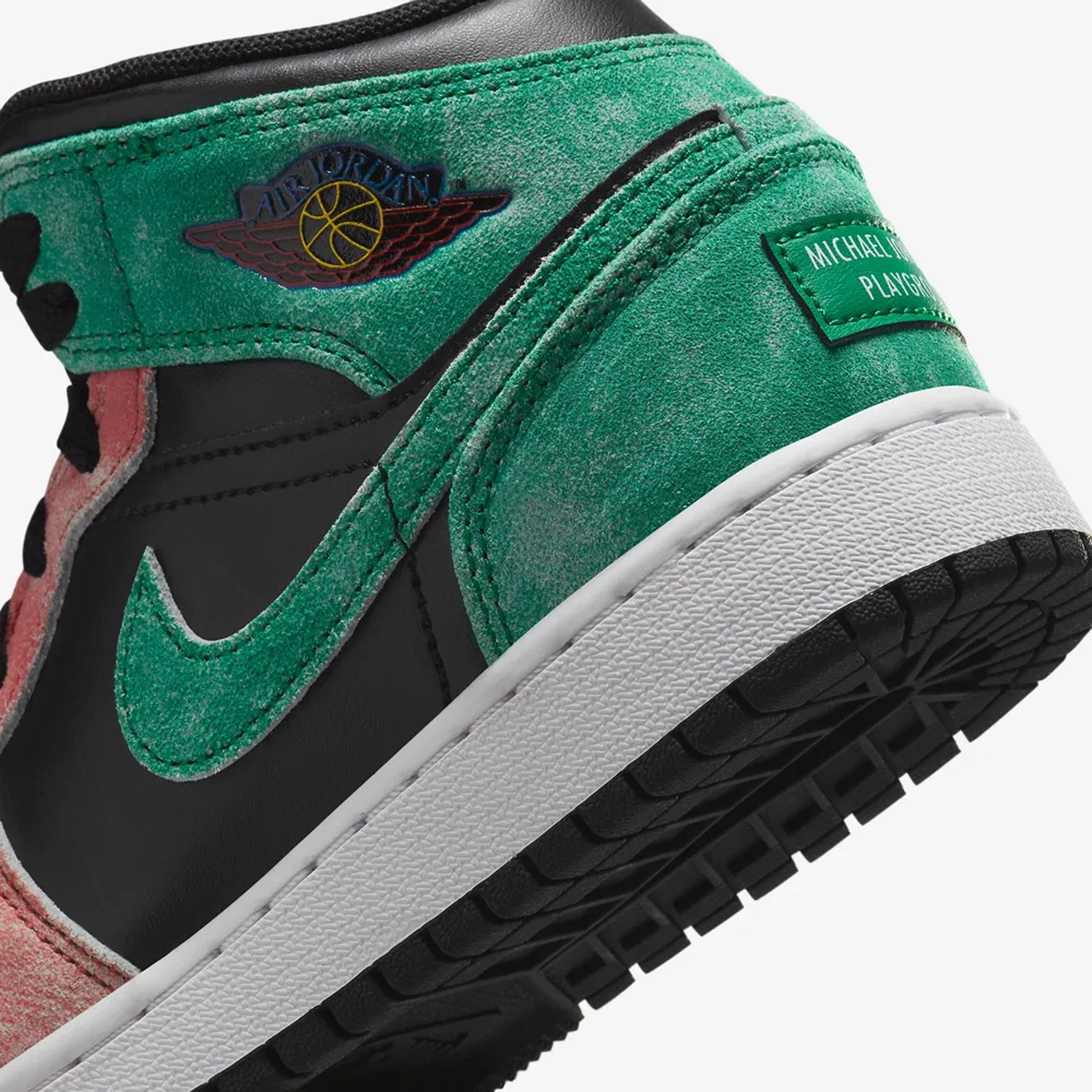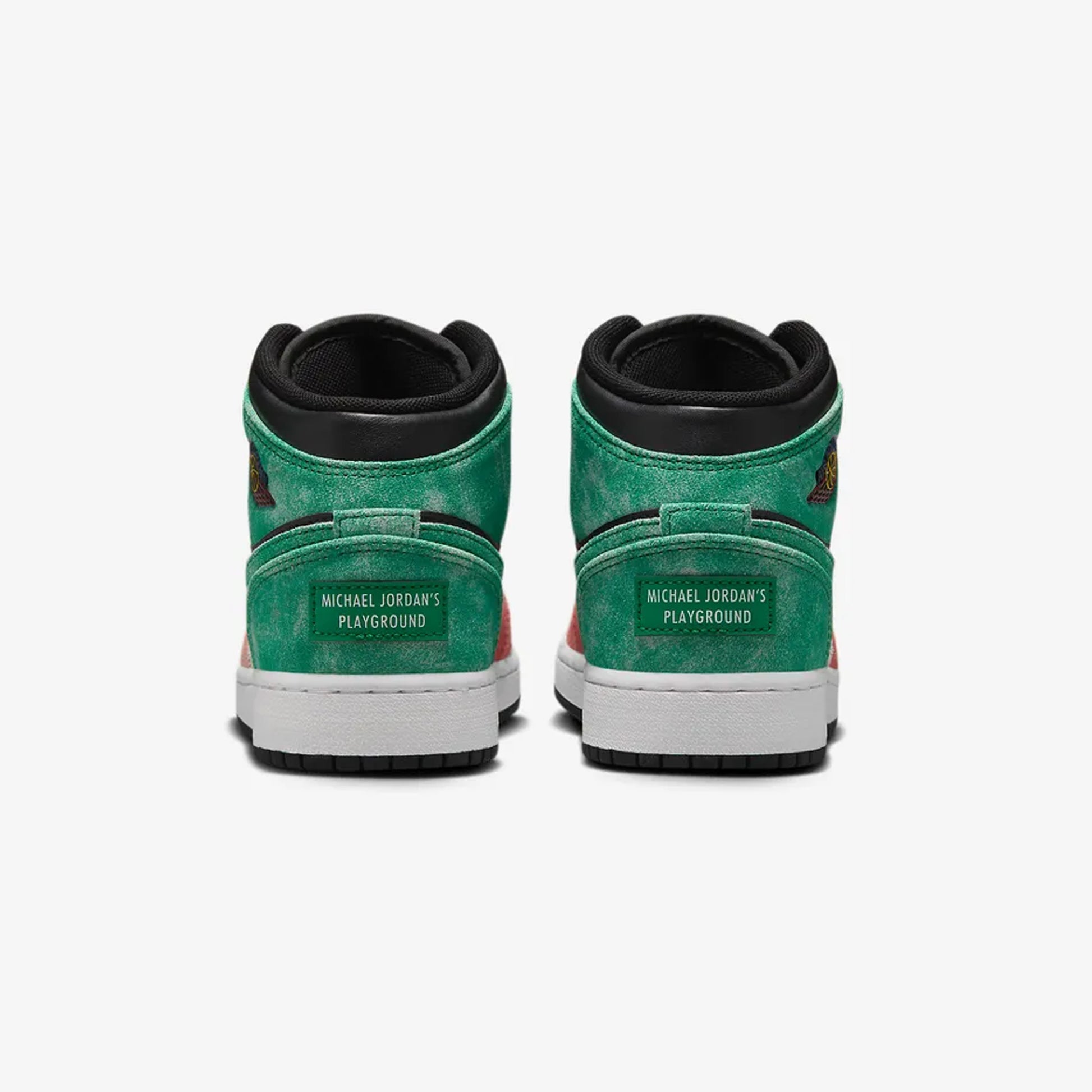 Jordan | AIR JORDAN 1 MID SE (GS) { BLACK/PINE GREEN-DUNE RED-PINE GREEN