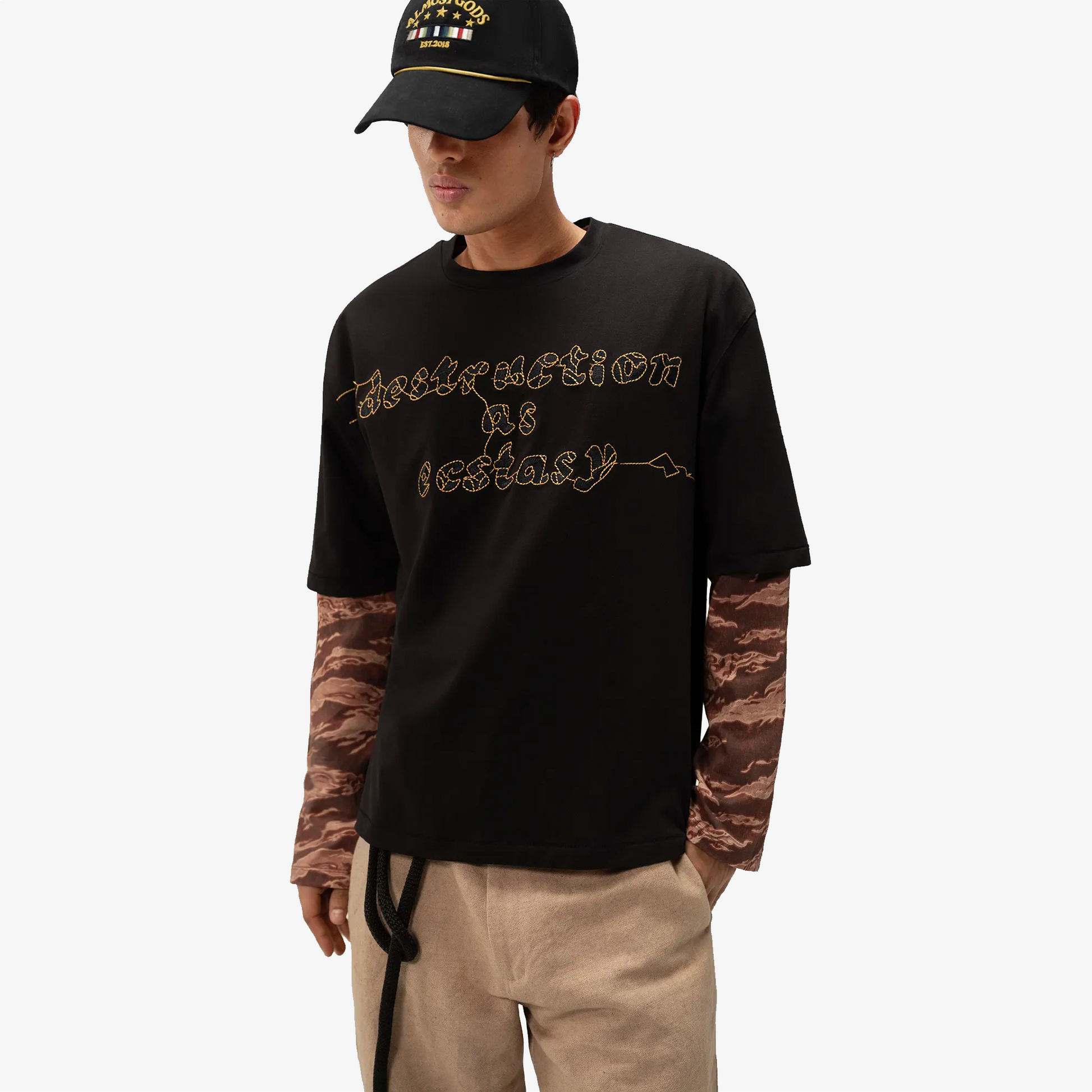 Boxy fit tee featuring ‘Destruction as Ecstasy’ embroidered in the front.