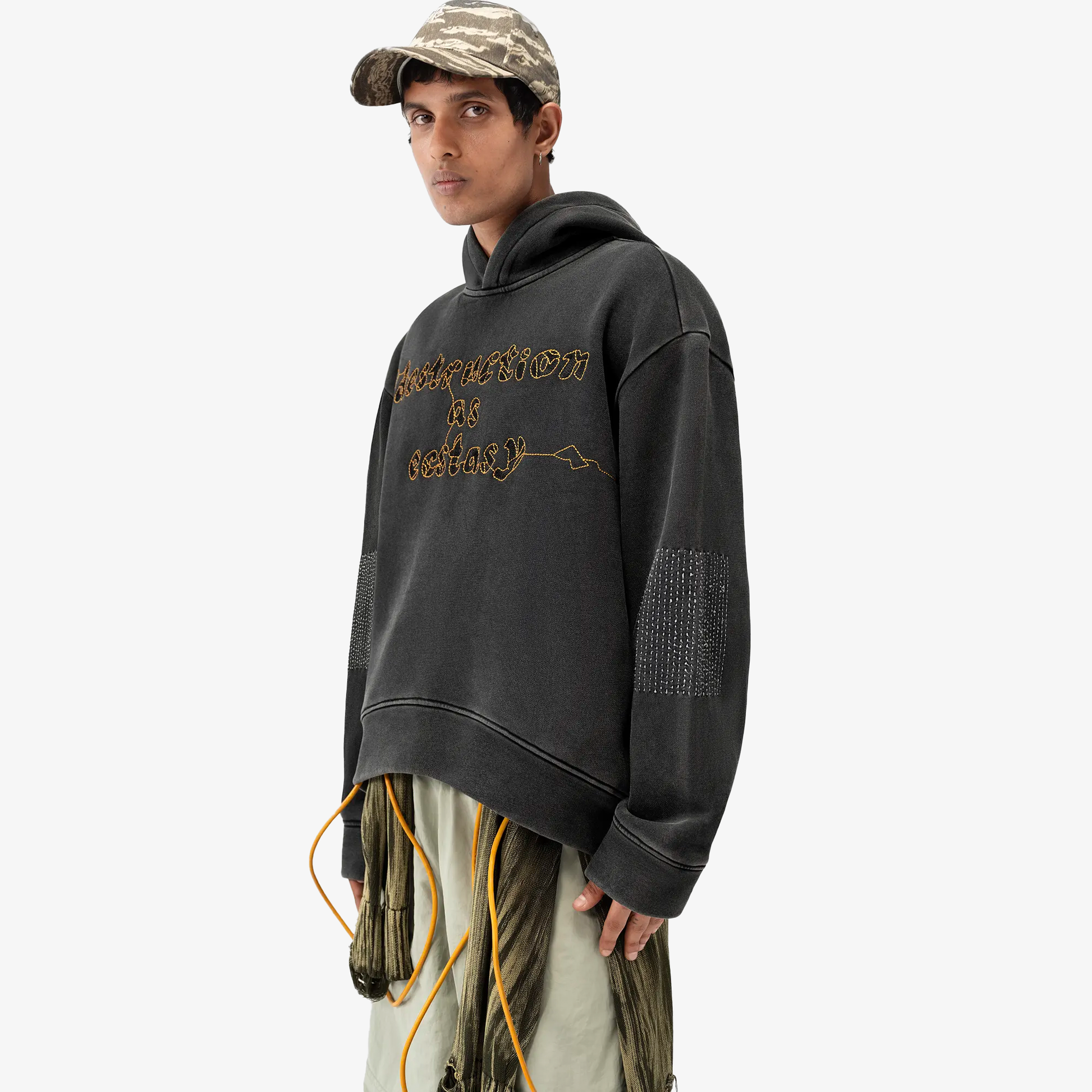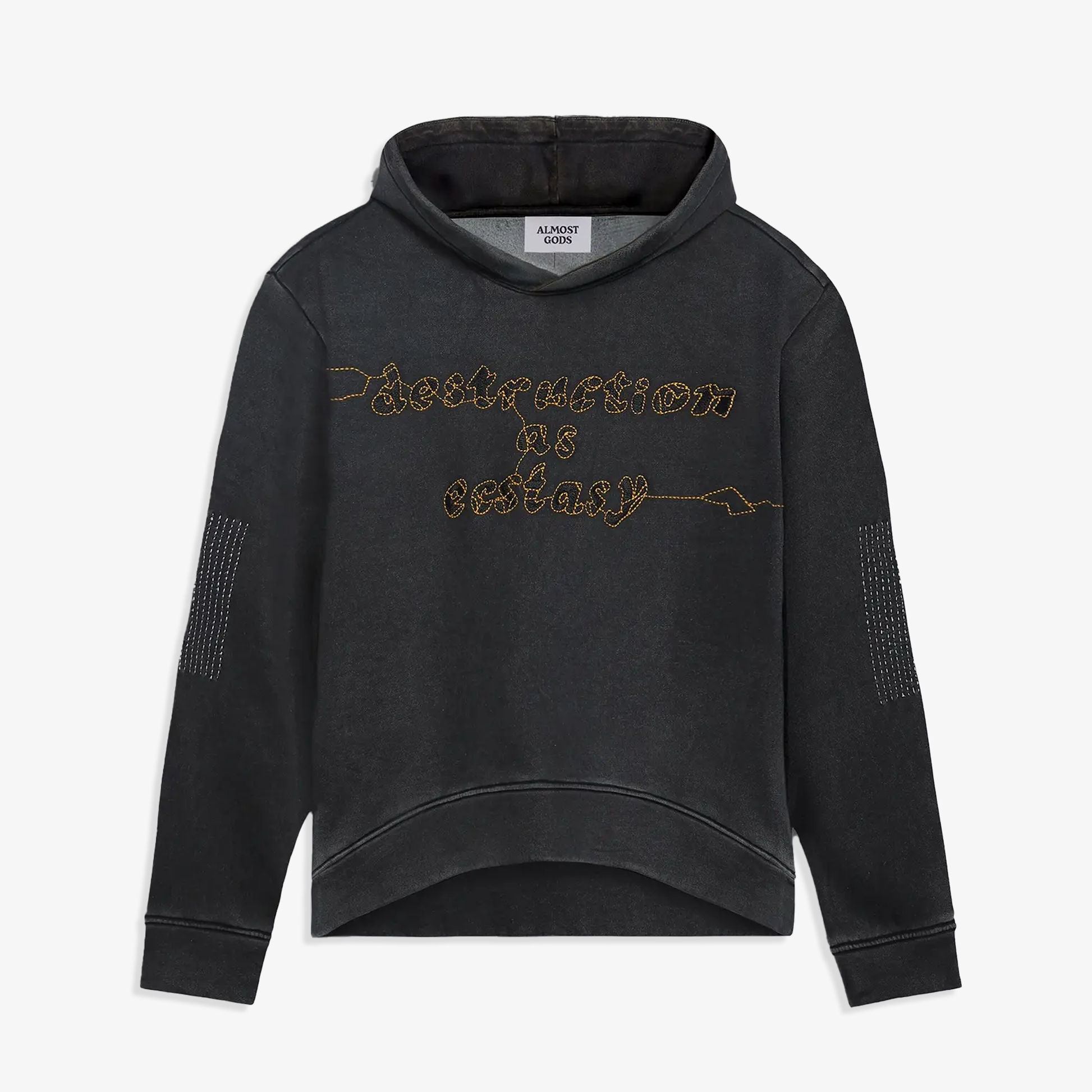 ALMOST GODS | DESTRUCTION AS ECSTASY EMBROIDERED CROPPED HOODIE { BLACK