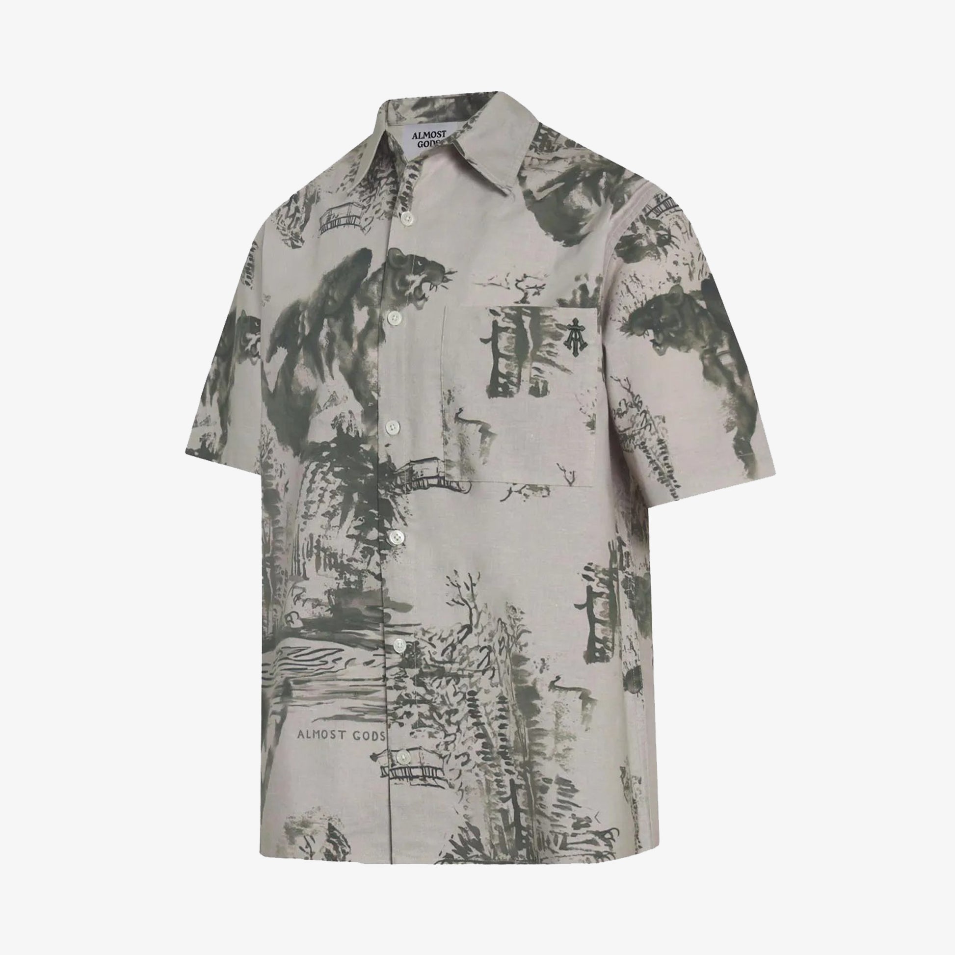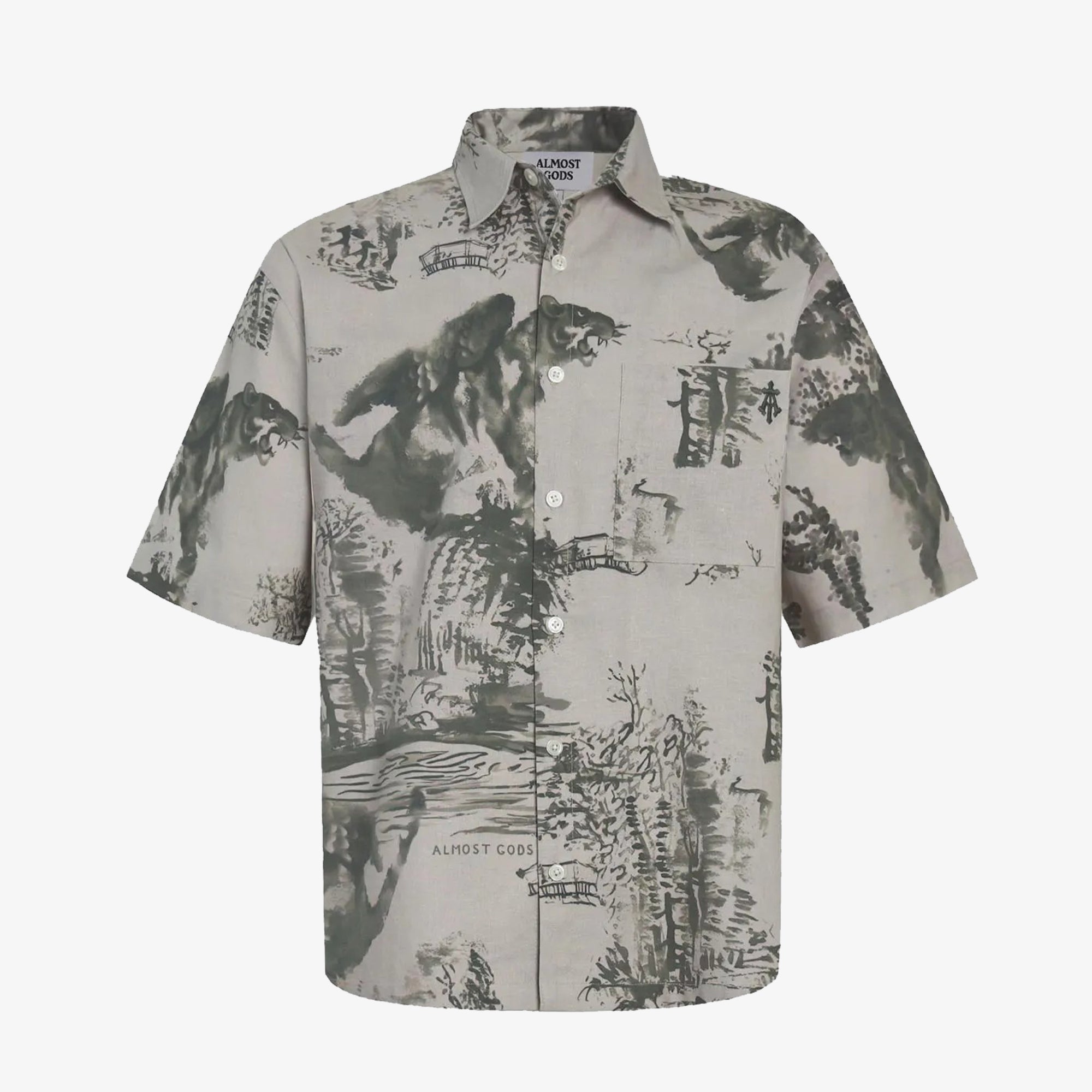 A relaxed-fit shirt featuring a textured print that references the natural grain of Alder wood.