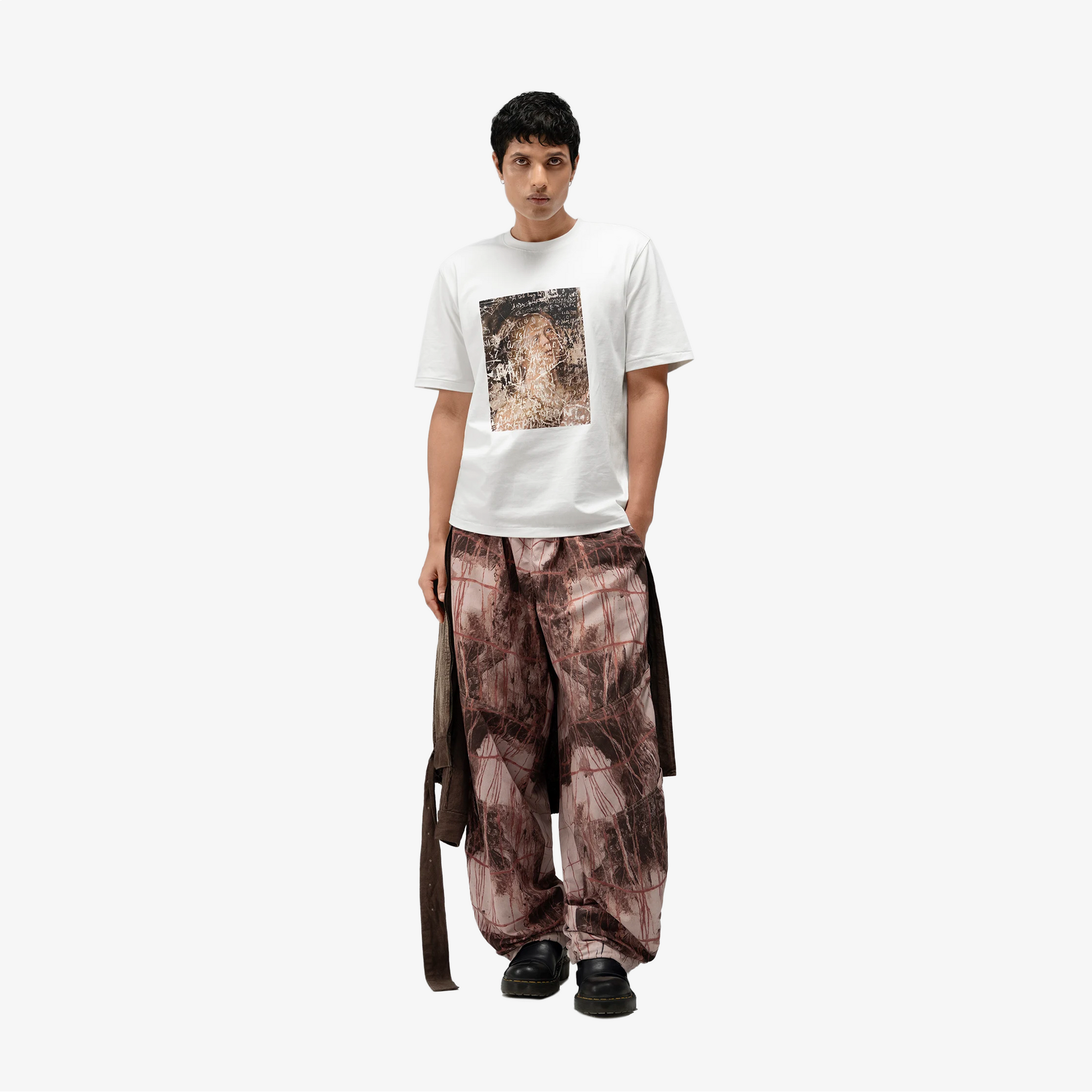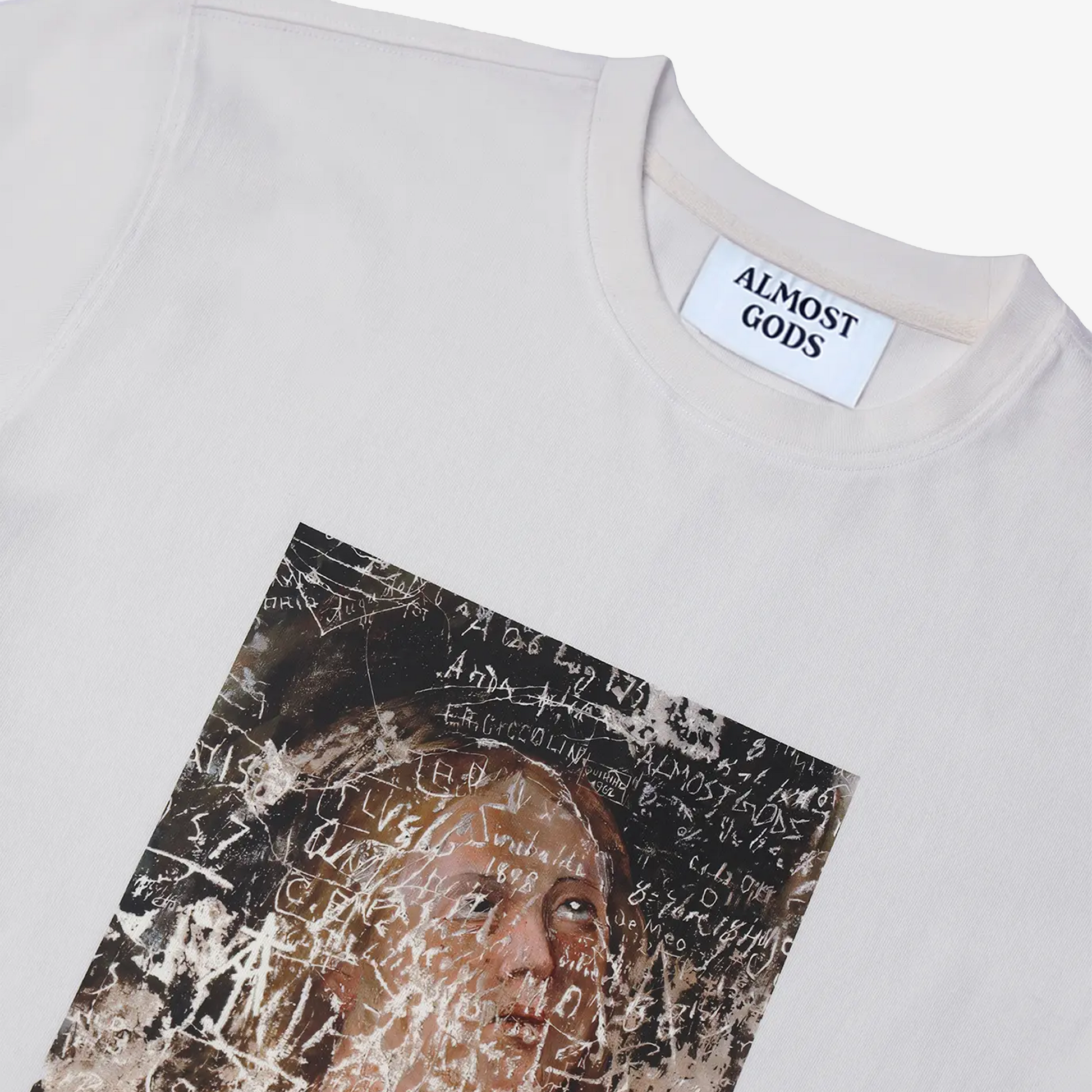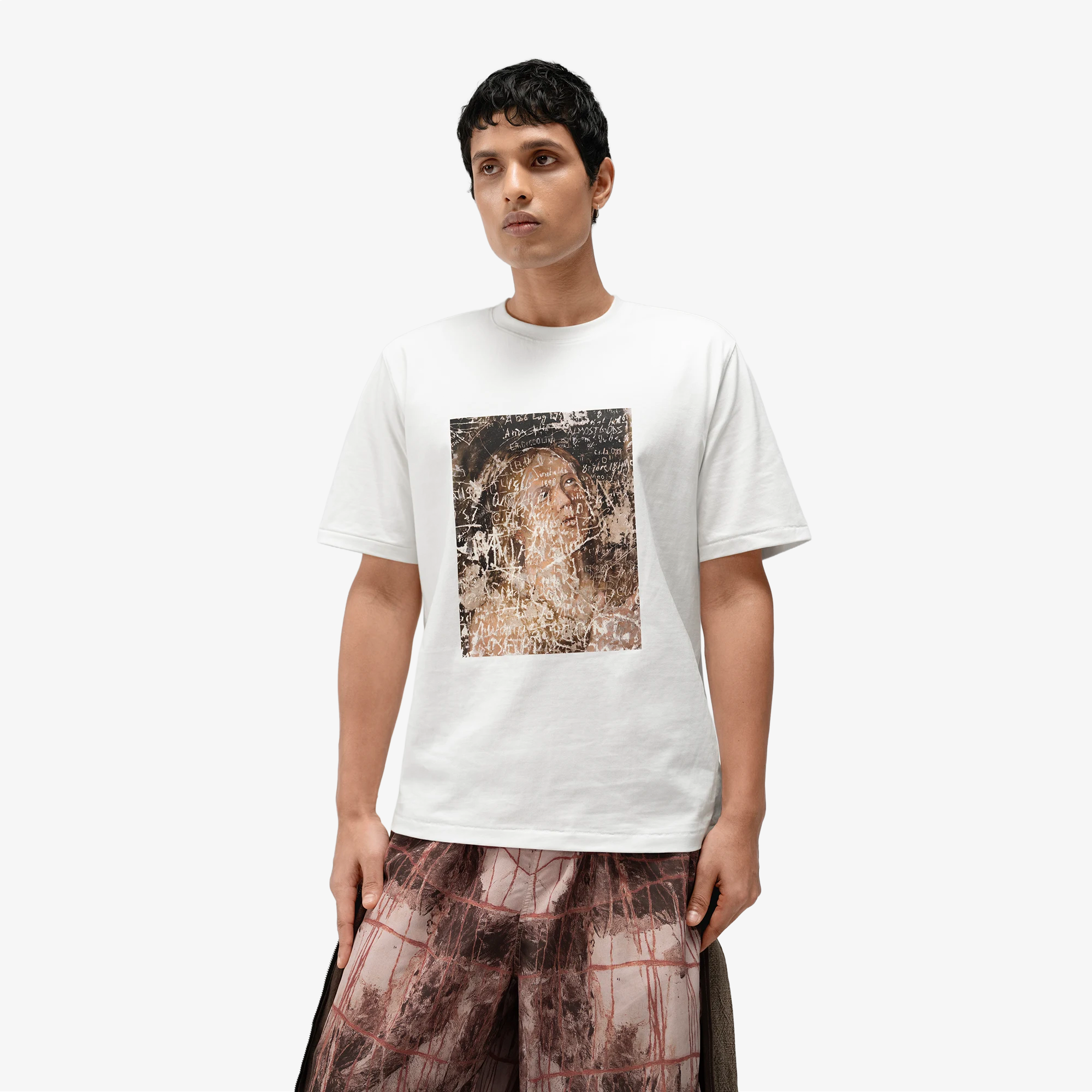 Relaxed-fit tee featuring a screen print of a vandalised fresco.