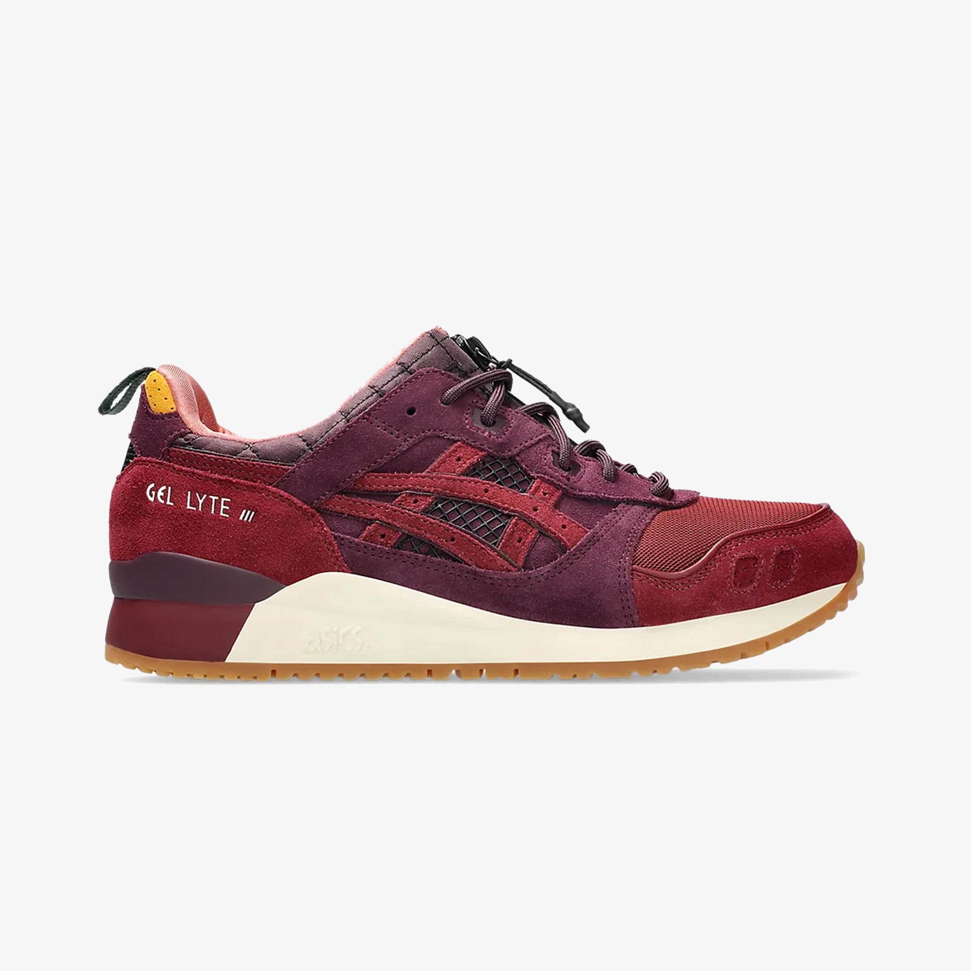 For the uninitiated, a burgundy-toned ASICS GEL-Lyte V arrived in the middle of last decade, during a period when the GEL-Lyte series provided some of the biggest movers for runners-centric sneakerheads. Just under a decade later, The floral theme graces the GL3, splitting the same dark red tonality at the toe and heel with a dose of deep purple on the middle panels. A colorway isn’t all that mita brings to the runner, though; a quilted collar, zippers uniting the split tongue and a special edition insole are just a few of the new material choices that define this collab effort.