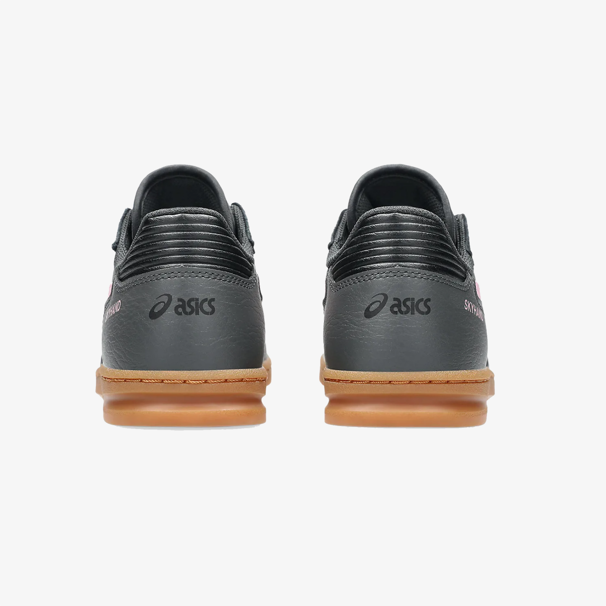 ASICS SportStyle announces the second collaboration with Toyoda Gosei. Featuring the SKYHAND™ OG sneaker, this collaboration explores the topic of becoming more sustainable by reusing Toyoda Gosei’s leftover car leather material that was used for their steering wheels. ASICS and Toyoda Gosei are both committed to becoming more sustainable brands. Therefore, the design teams found a way to repurpose the discarded content from Toyoda Gosei’s steering wheel manufacturing process as a unique design element for the SKYHAND™ OG sneaker. Designed with simplicity and everyday wearability in mind, the SKYHAND™ OG sneaker features a primarily tonal black color palette. Various leathers with suede, perforated, and smooth textures create a monochromatic patchwork effect throughout the upper. Additionally, a prominent cross-stitching connects the quarter-panel and heel as a nod to the seams that are prevalent on the auto manufacturer’s steering wheel designs.