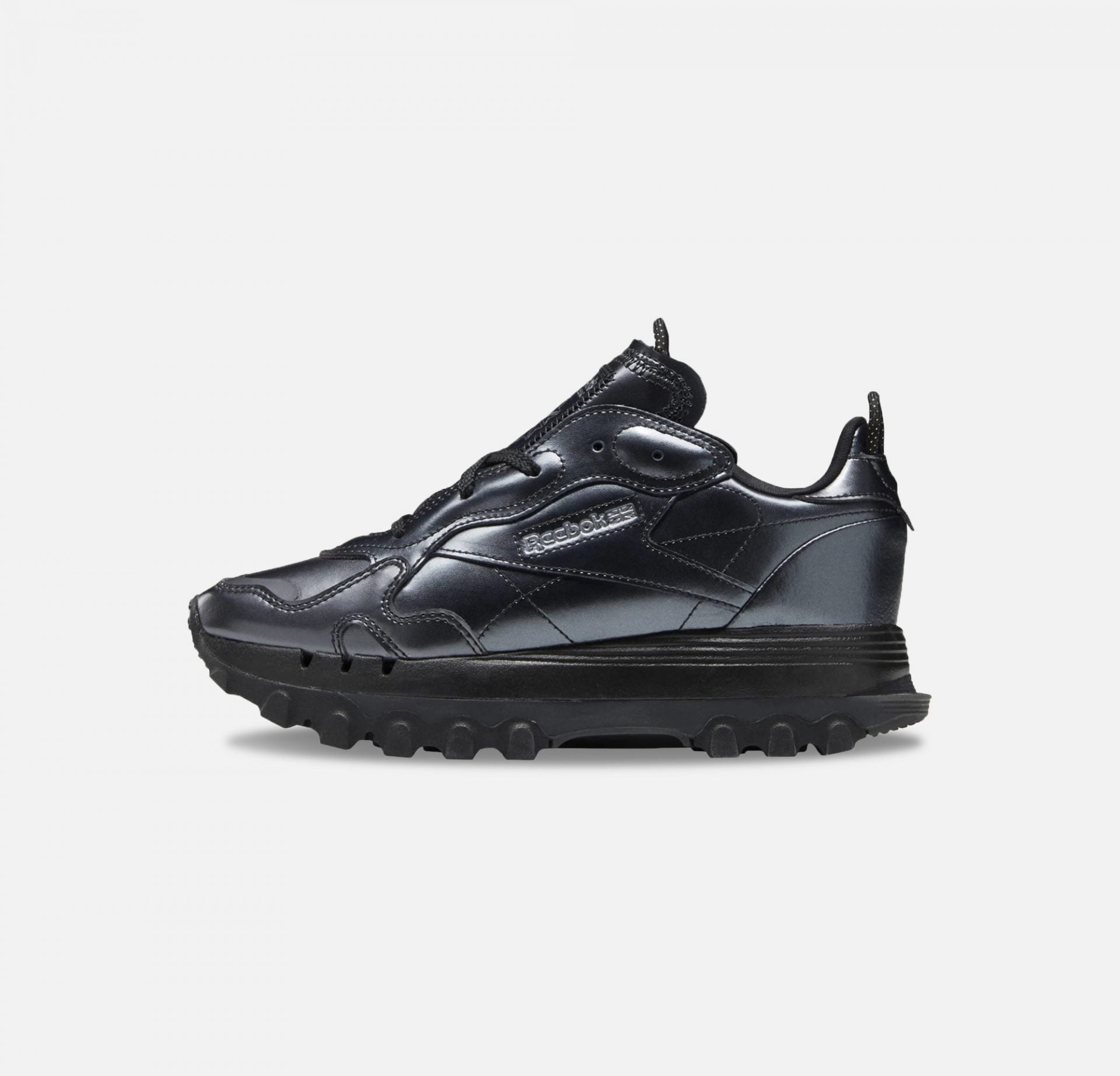 Pure Cardi. All Reebok. Every detail on these women's shoes takes design cues from her personality. Transparent details show off her down-to-earth attitude. Bold, fierce color evokes her personality. An asymmetrical design nods to her different hustles. The stacked midsole and aggressive lugs on the outsole display her different dimensions. Over the top but also chic, these kicks give you legit Cardi B style.
