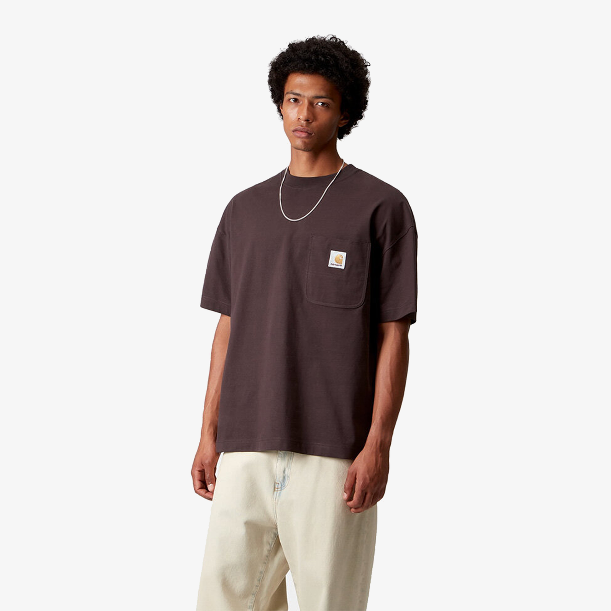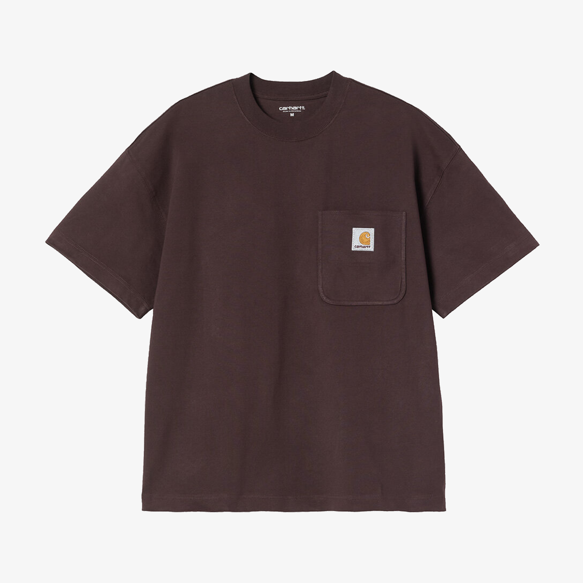 The S/S Work Pocket T-shirt, with a loose, boxy fit, is made from a medium-weight cotton jersey. It features a square woven label on the chest pocket.