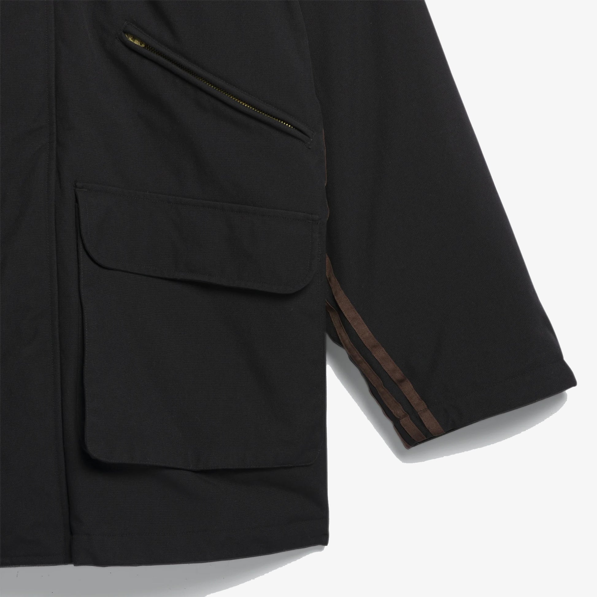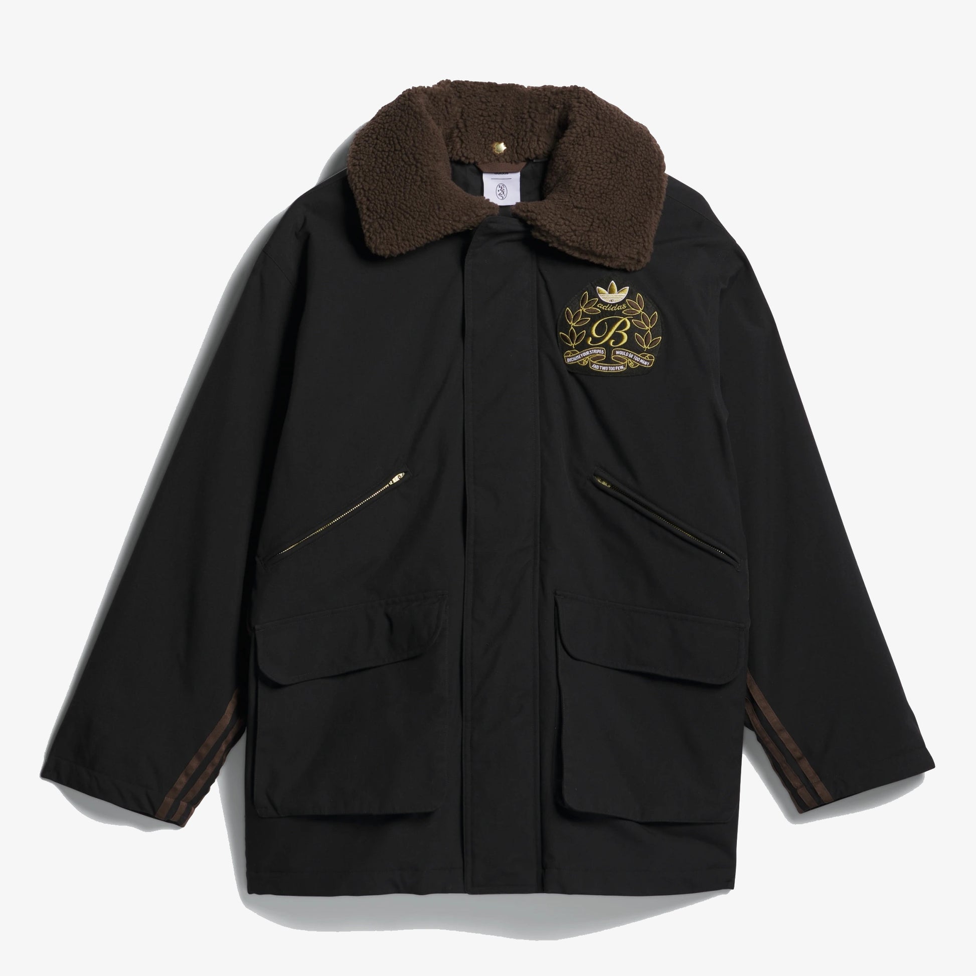 Drawing from a piece from his vintage archives, Blondey McCoy worked with adidas Skateboarding for a one-to-one recreation of a timeless outerwear piece. The fully-lined A.B. Chore Coat features a removable fluffy fleece collar to keep out the cold, front zip and cargo pockets, a classed-up Blondey crest and 3-Stripes side seam tape details. Made with a series of recycled materials, and at least 70% recycled content, this product represents just one of our solutions to help end plastic waste.