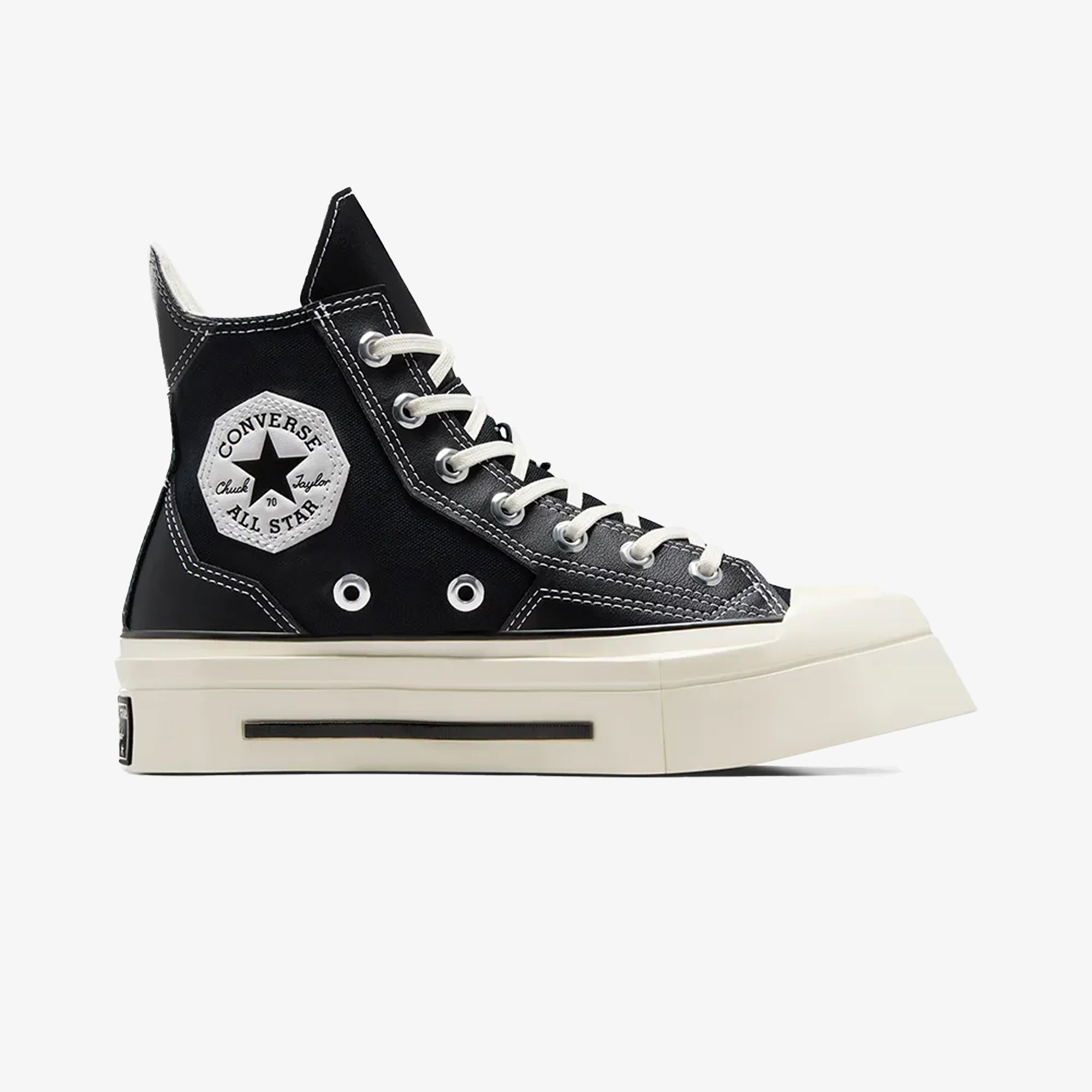 - Angular overlays, eyelets, and patches reimagine Chuck Taylor DNA