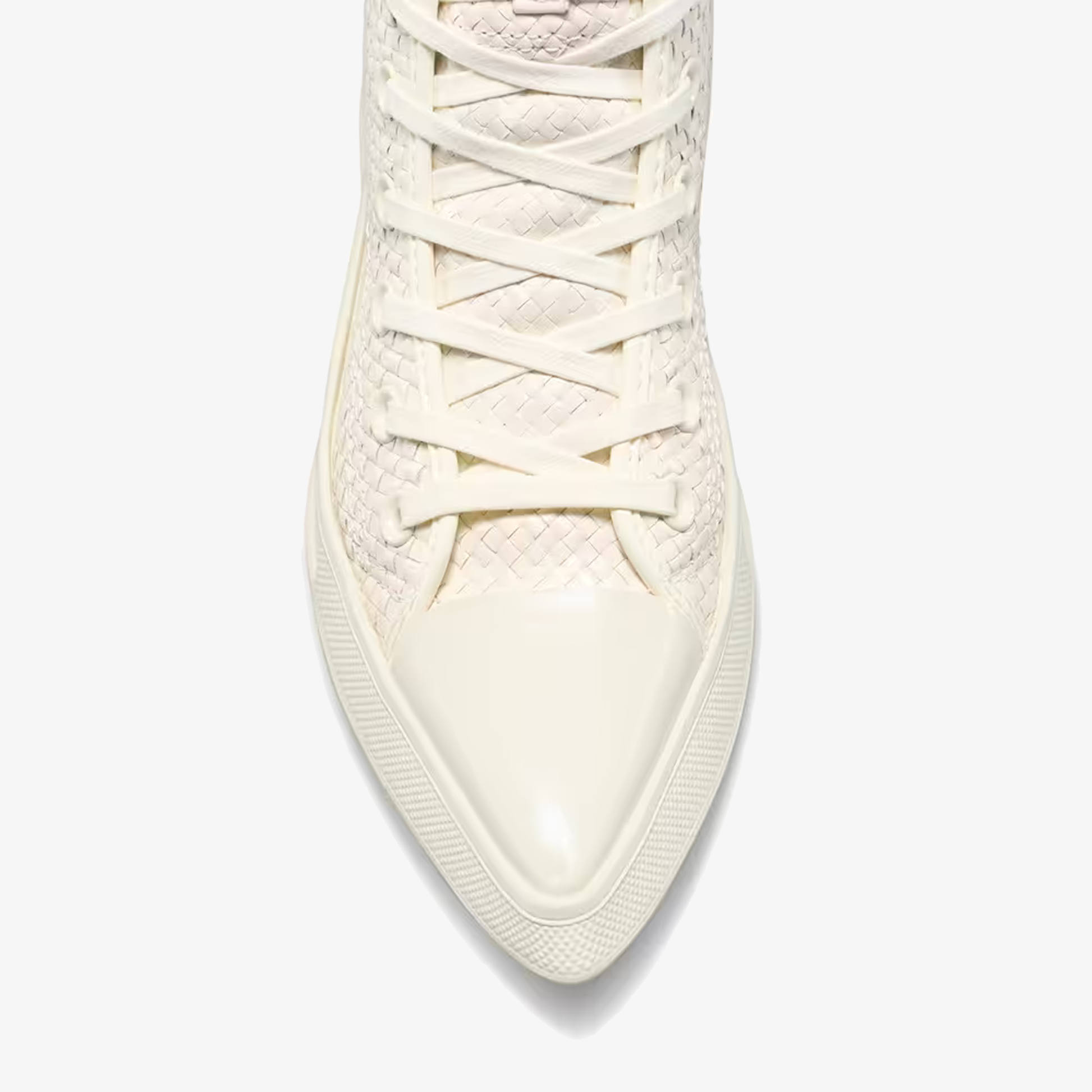 - Luxe, woven leather upper, with a sleek, pointed-toe design