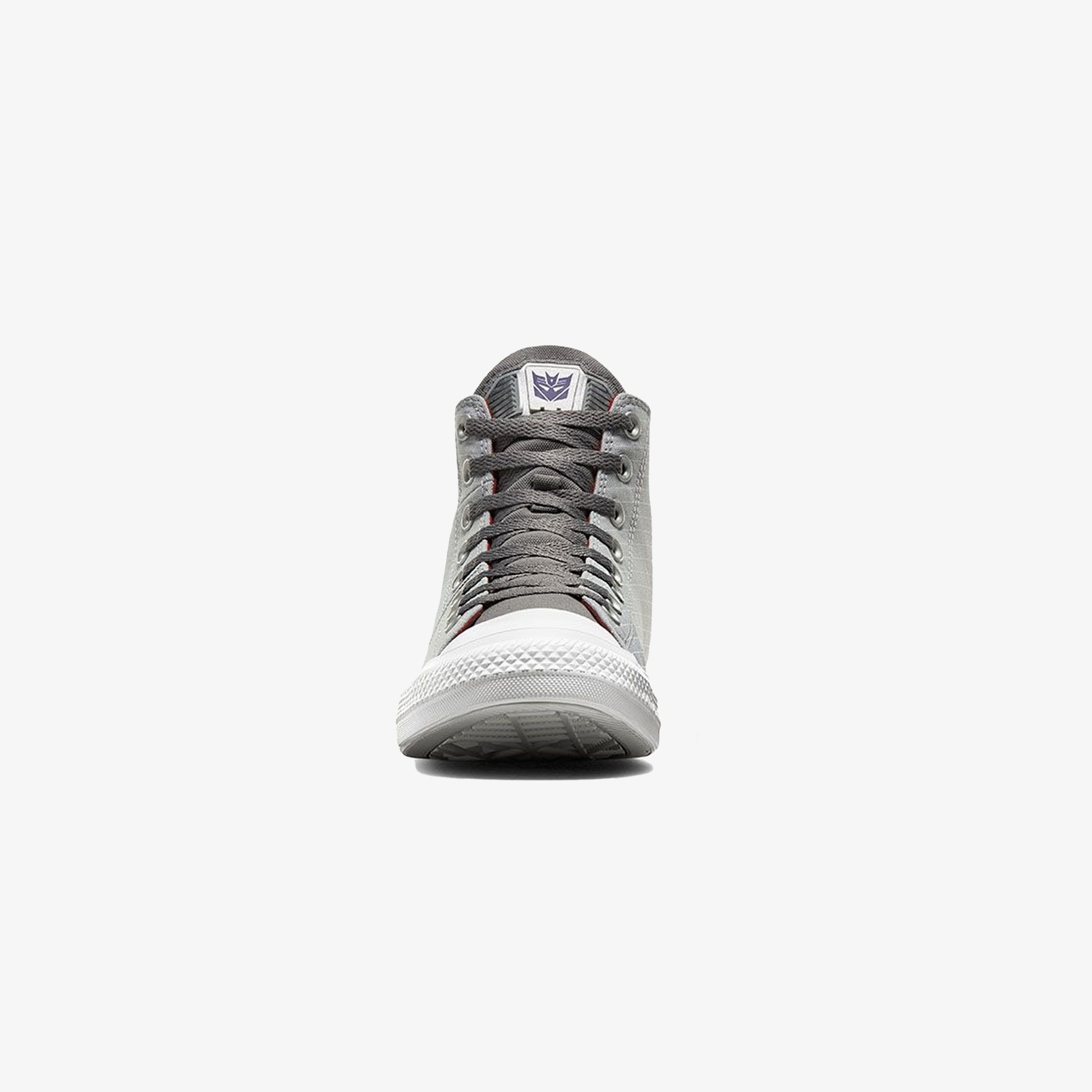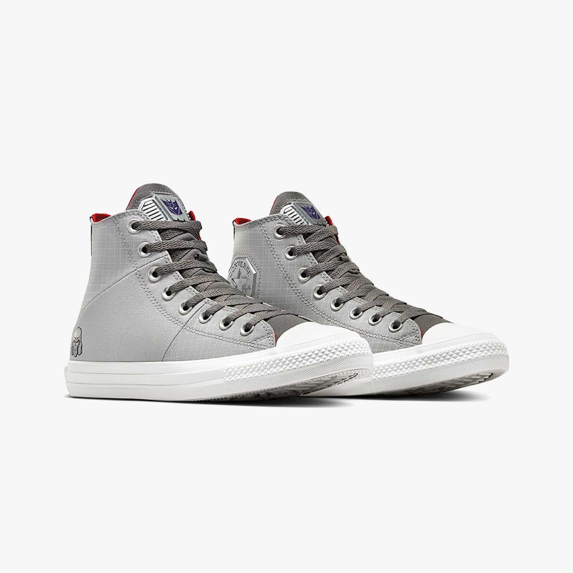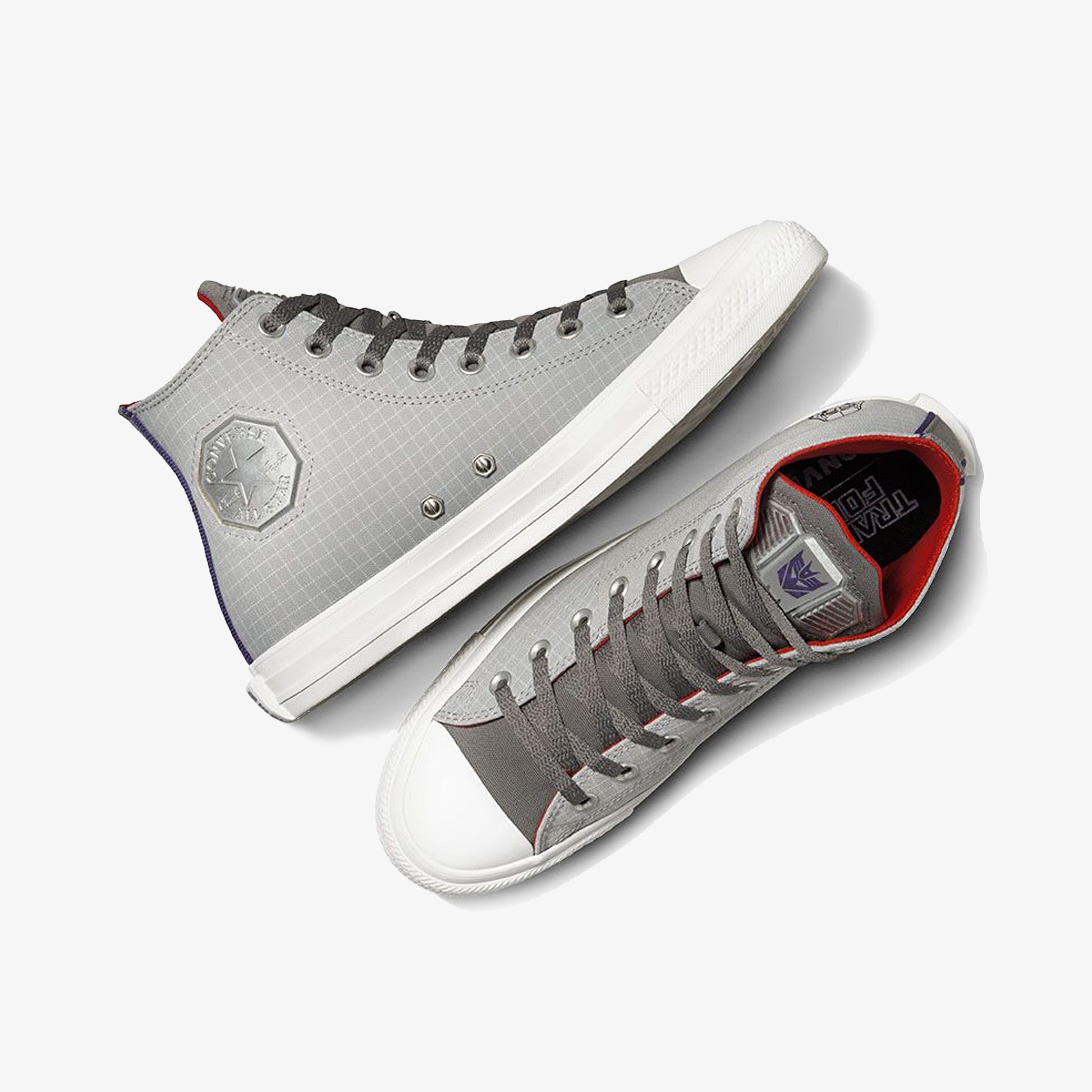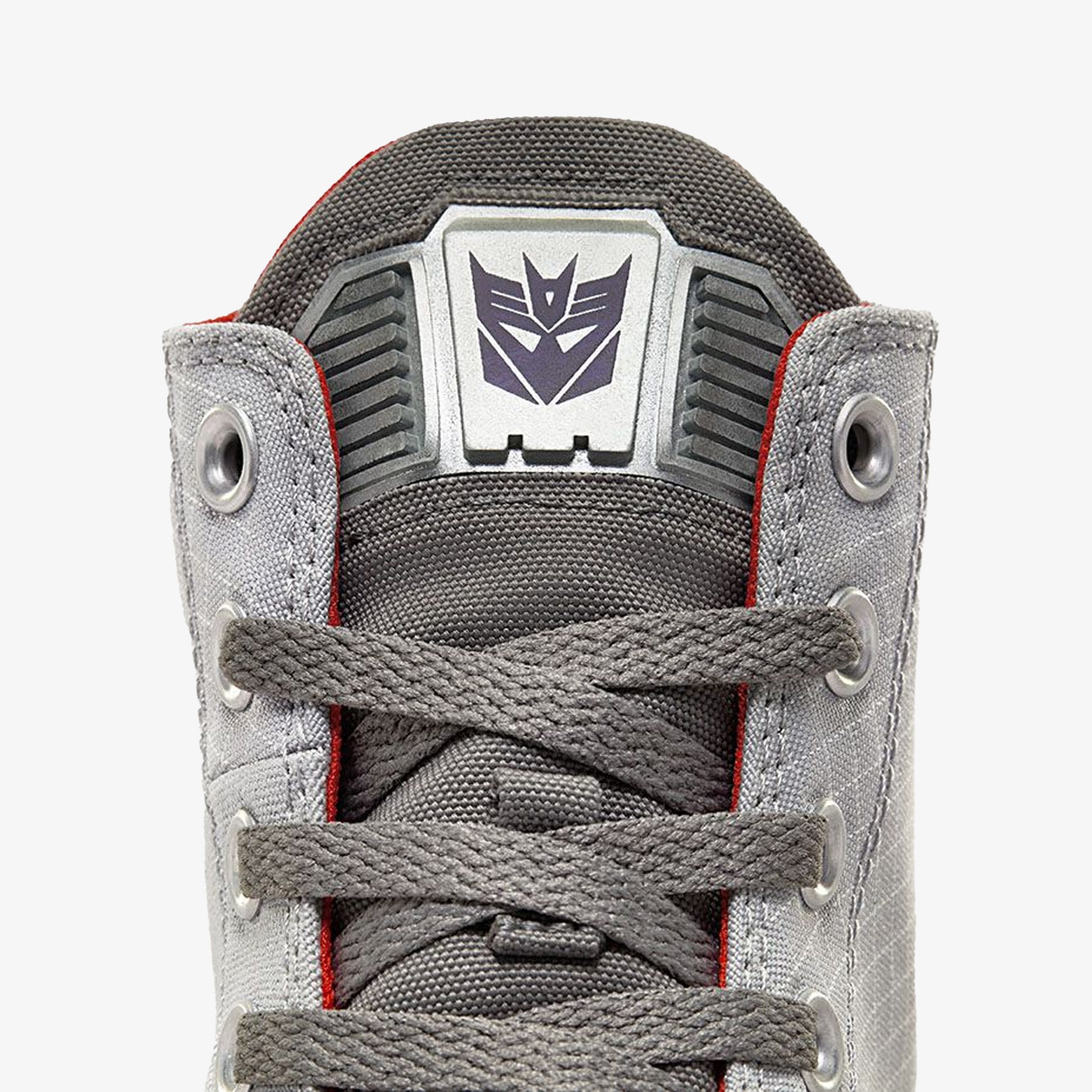 CONVERSE X TRANSFORMERS Decepticons Attack! Celebrate the 40th anniversary of Transformers with a Megatron edition of classic Chuck Taylor All Star high tops. The limited design features graphics and artwork from the original series, including the Decepticons shield logo and Megatron’s go-to weapon, the energon mace.