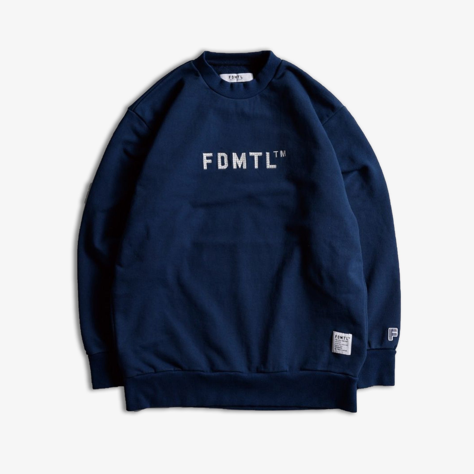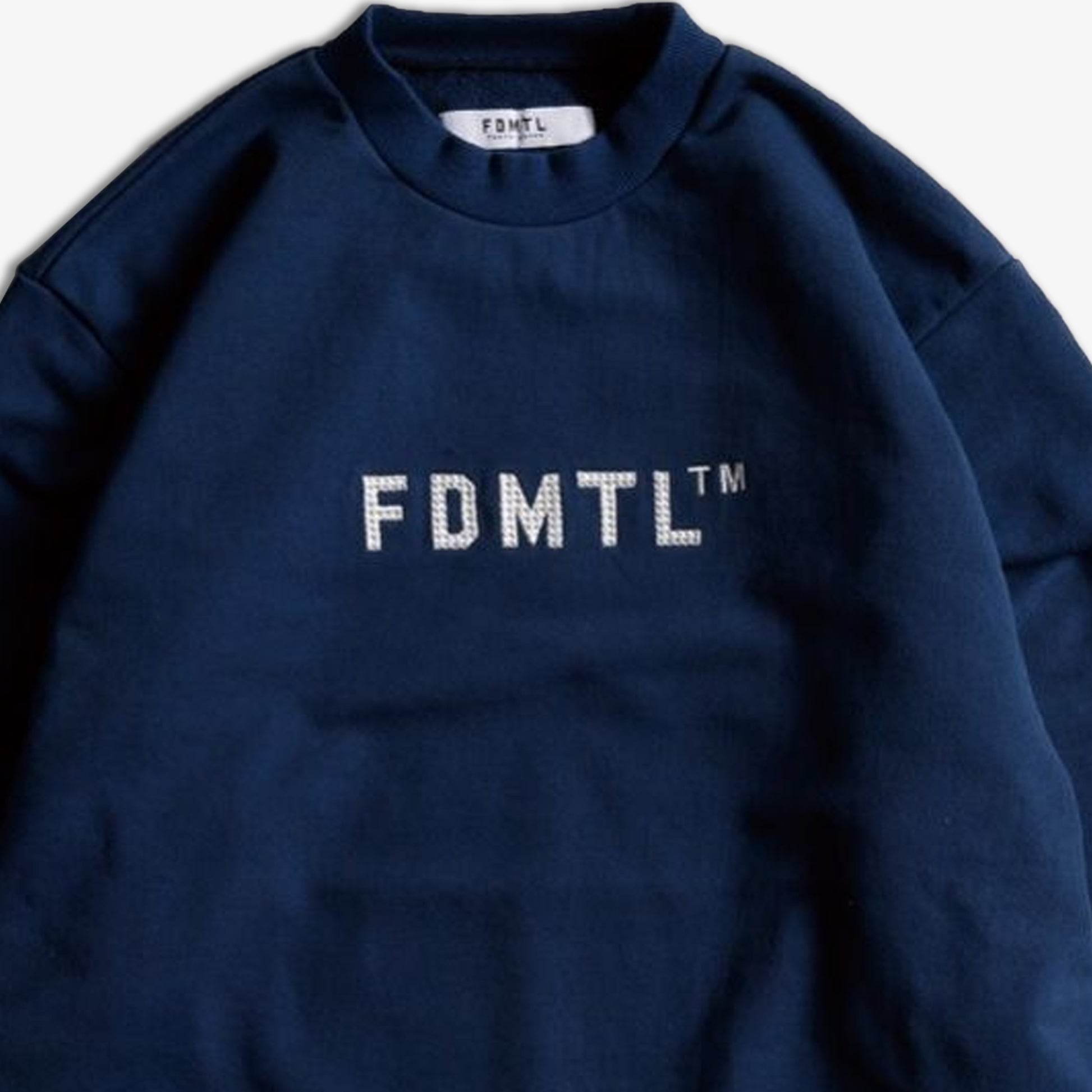 This sweat hoodie is made from a thick loopback fabric. The chest features an embroidered FDMTL logo. A small 'F' patch is attached to the left cuff. To enhance the fabric's texture, it has undergone a one-wash treatment.