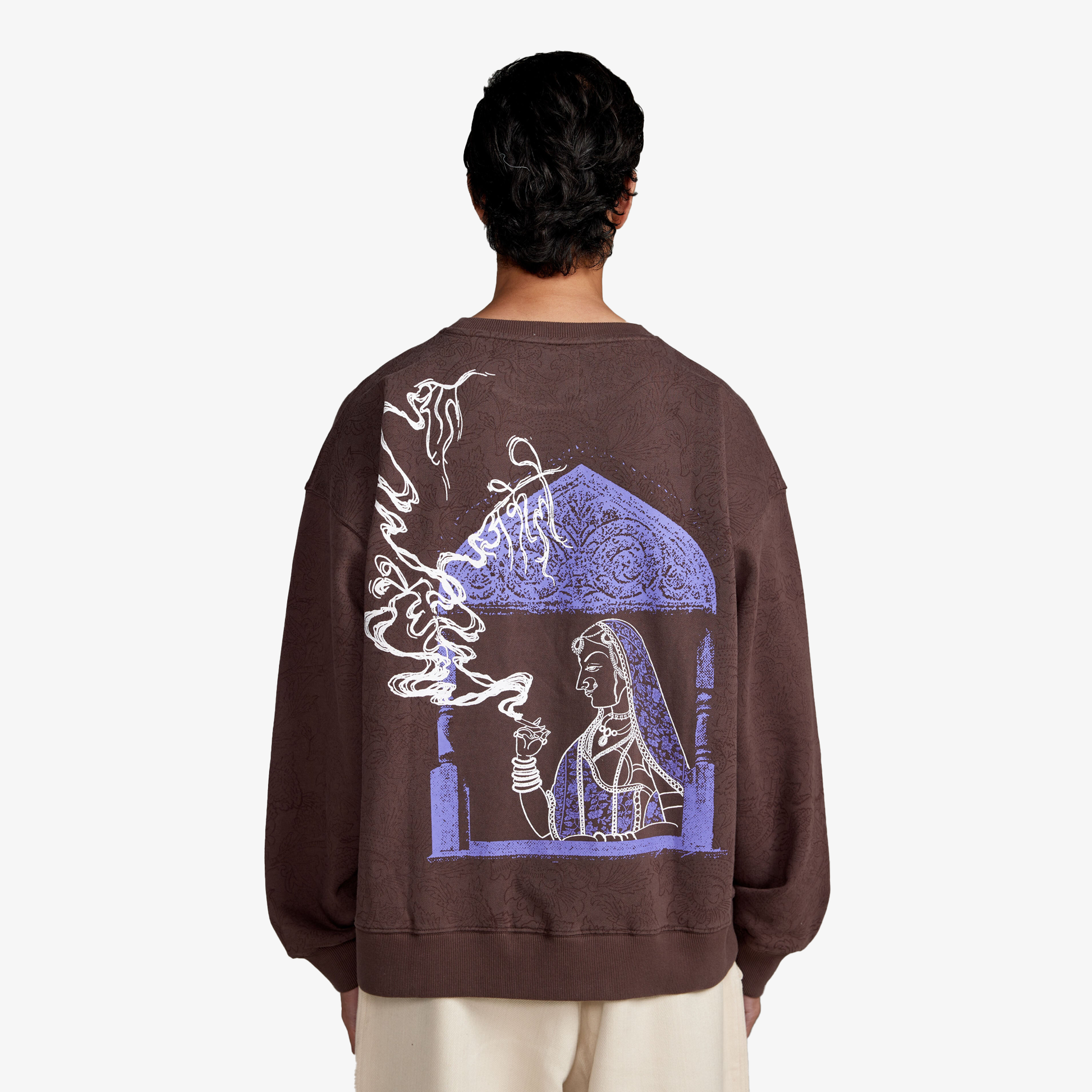 F A R A K | RAAT AKELI HAI BLOCKPRINTED SWEATSHIRT { BROWN