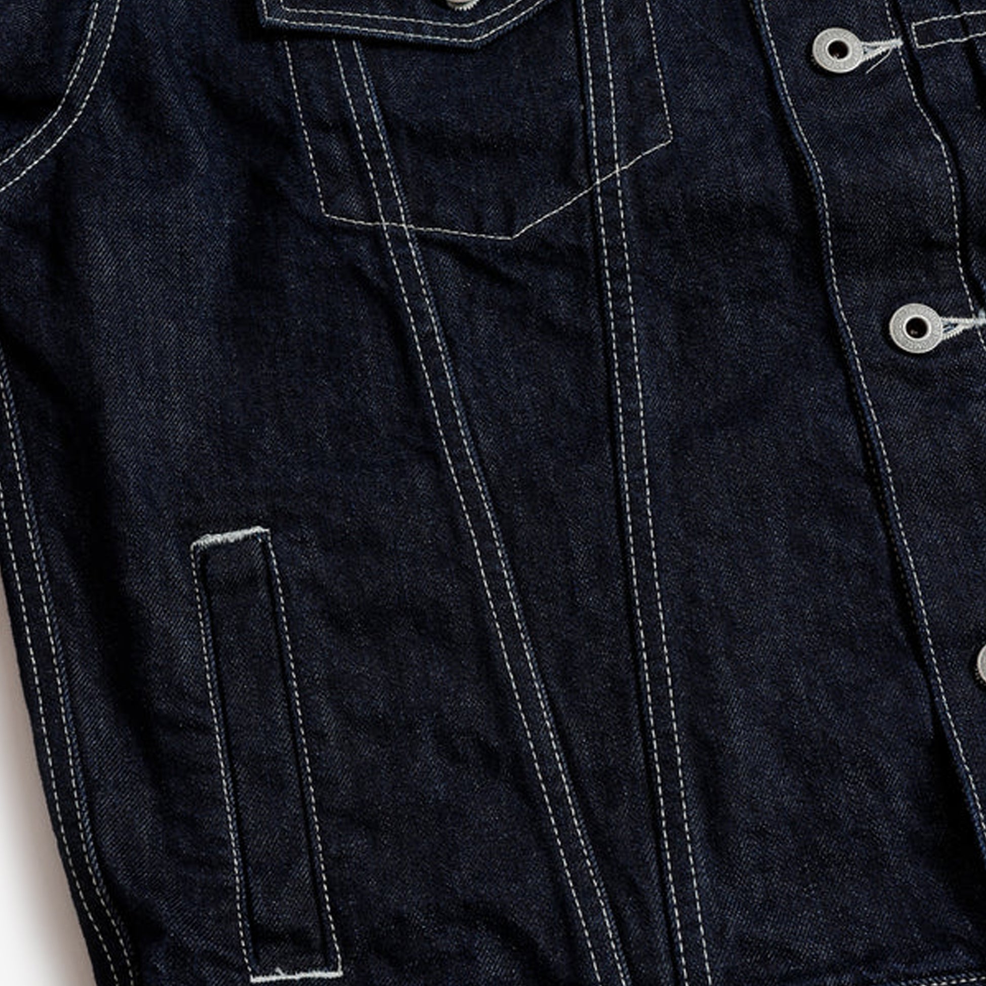 This is an asymmetrical denim jacket. You can enjoy both the classic TYPE 1 and TYPE 3 designs.