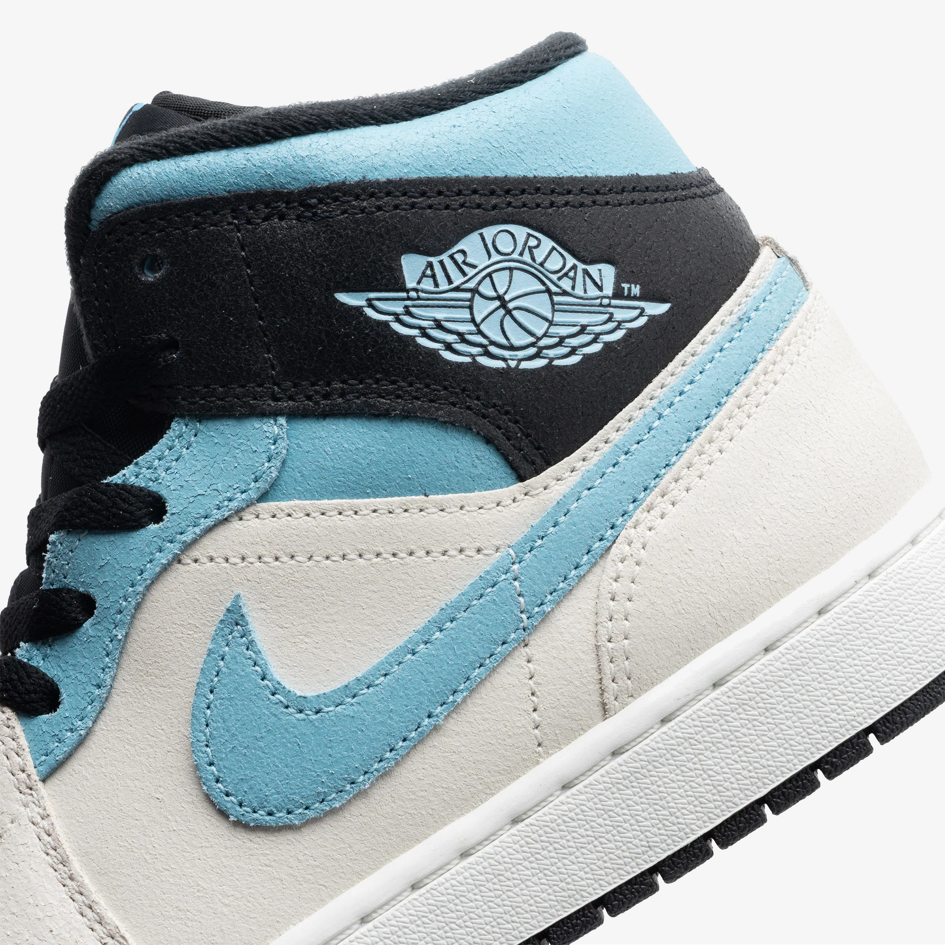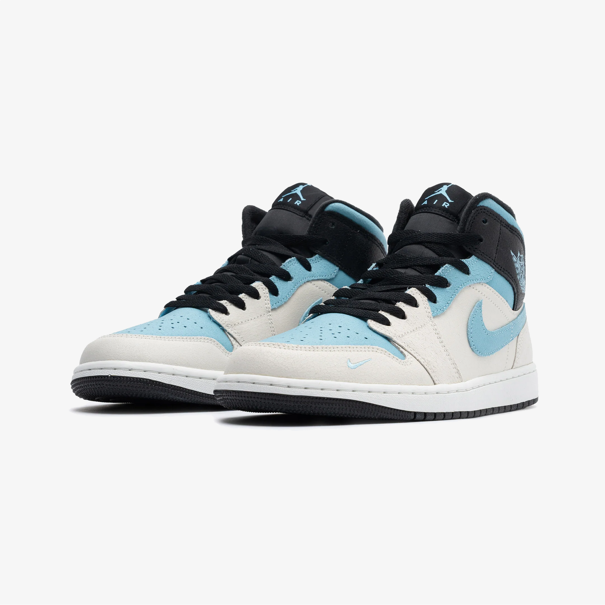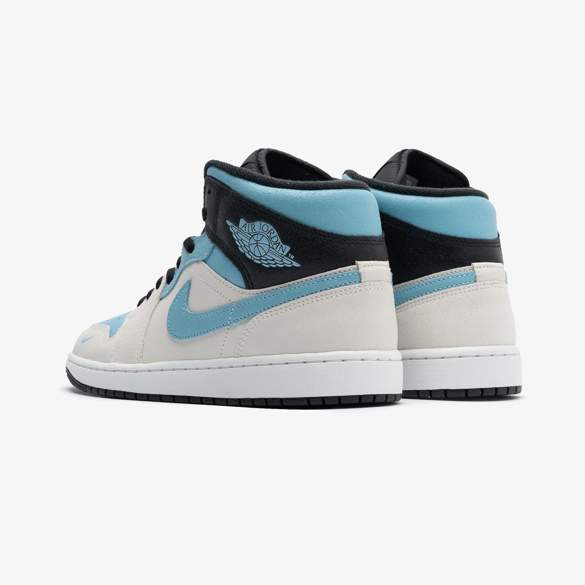JORDAN | AIR JORDAN 1 MID { SUMMIT WHITE/BLUE CHILL-BLACK