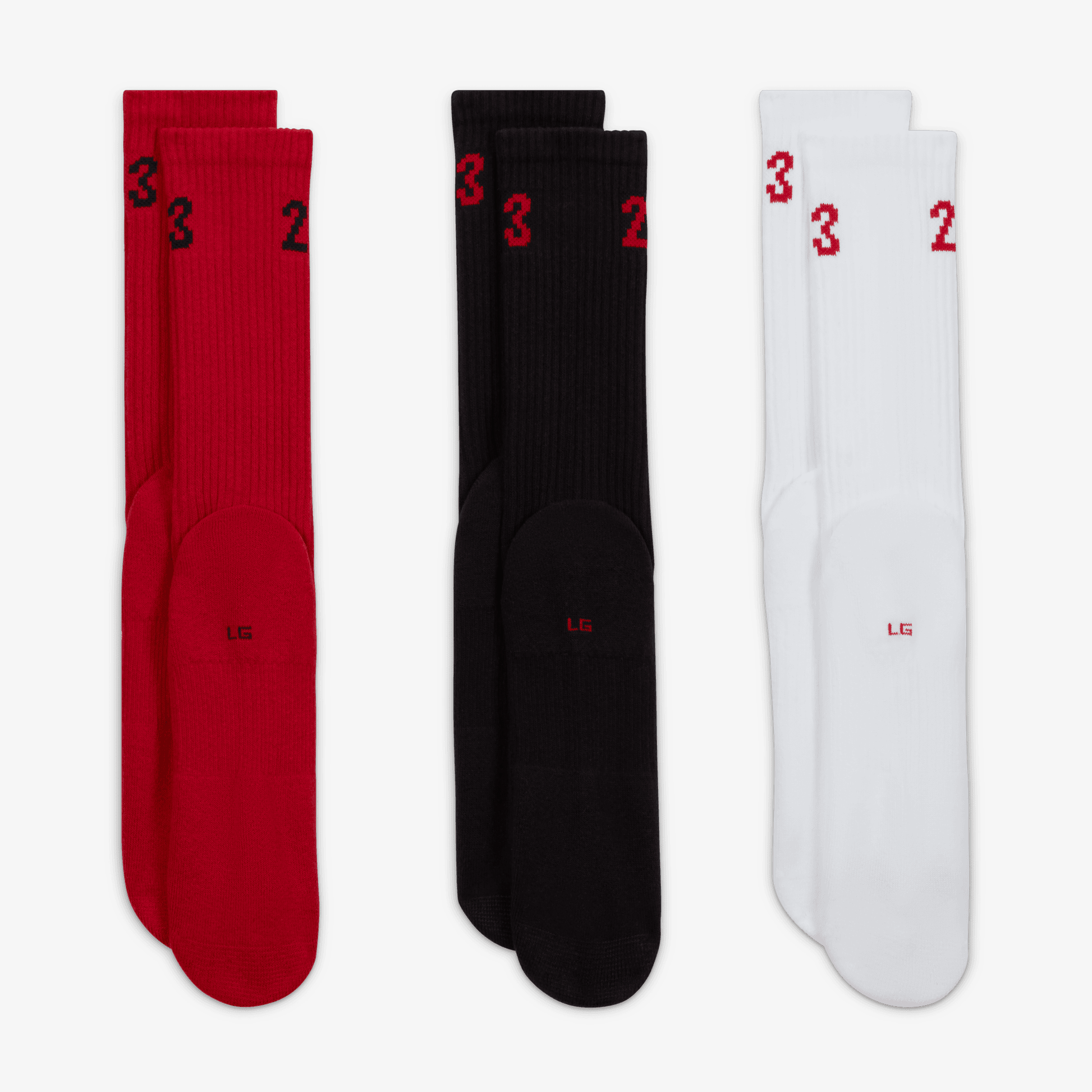 The Jordan Essentials Crew Socks are soft and stretchy, with a supportive fit and knit-in cushioning underfoot. 3 pairs set you up for nearly half the week.