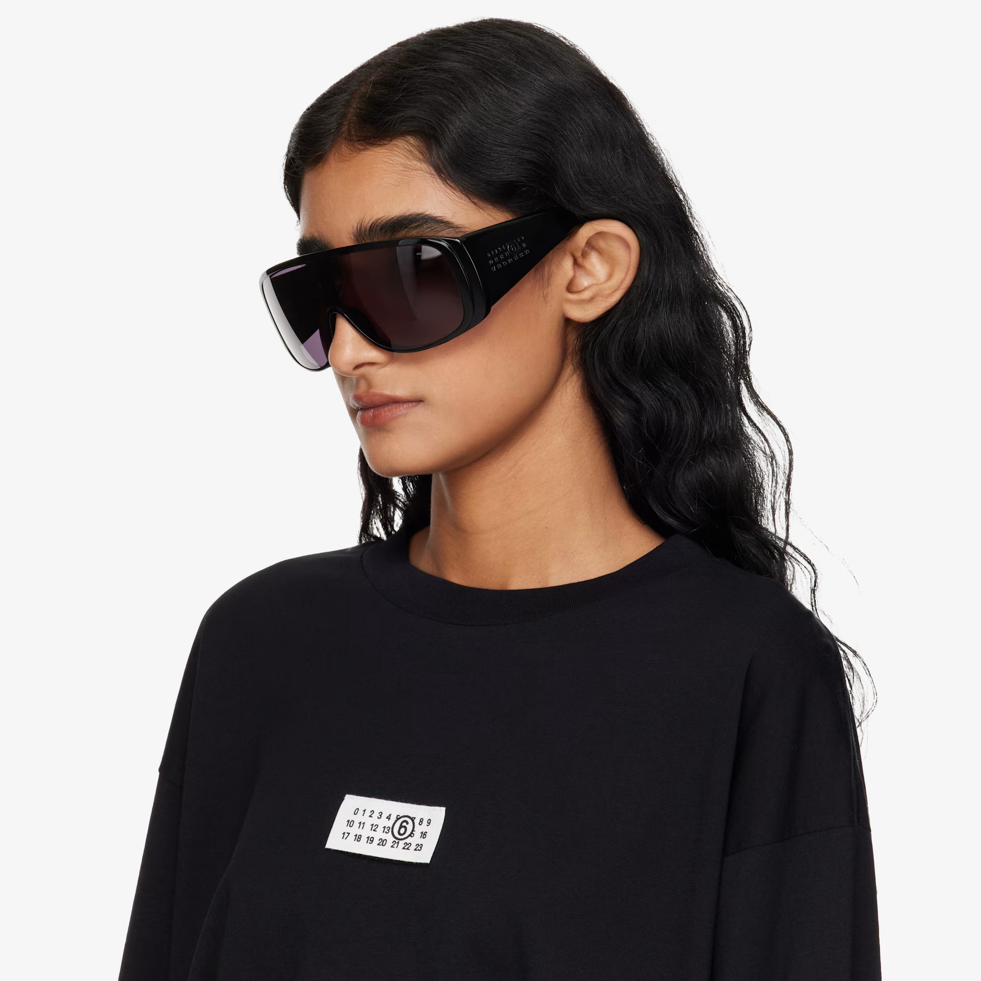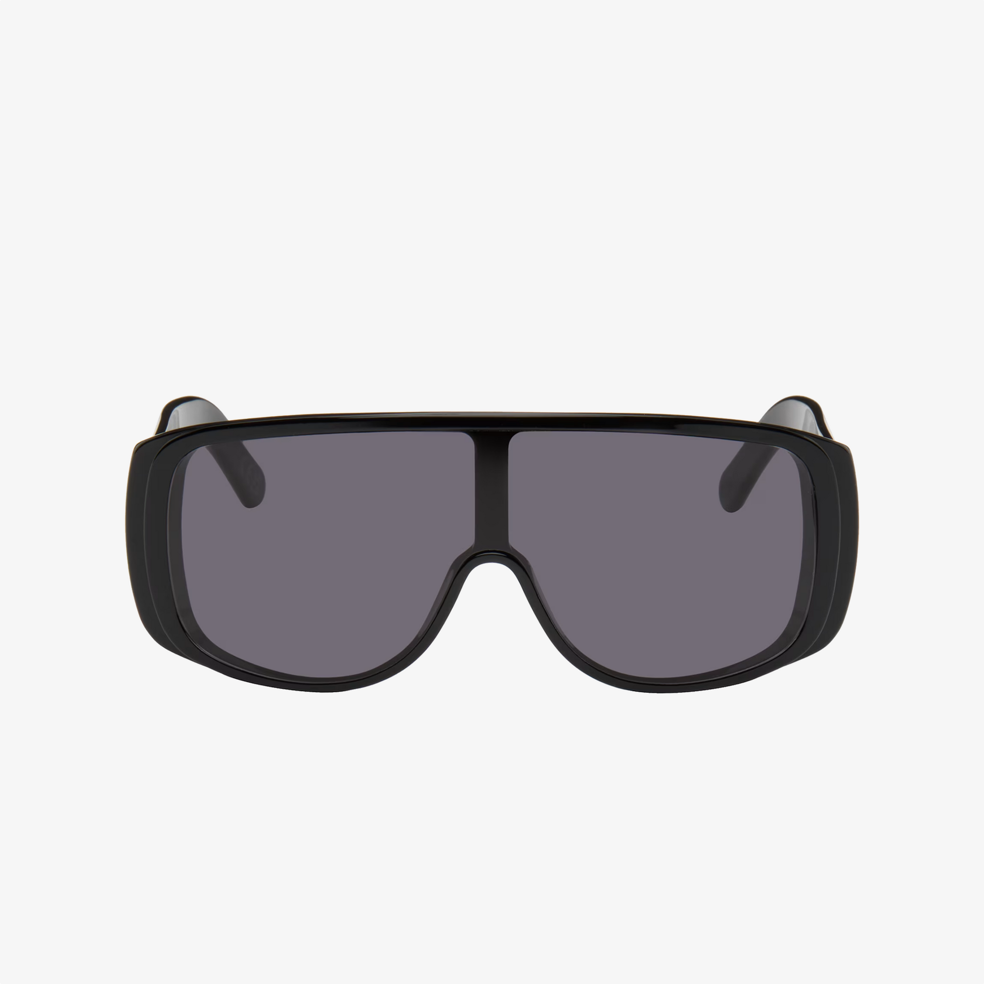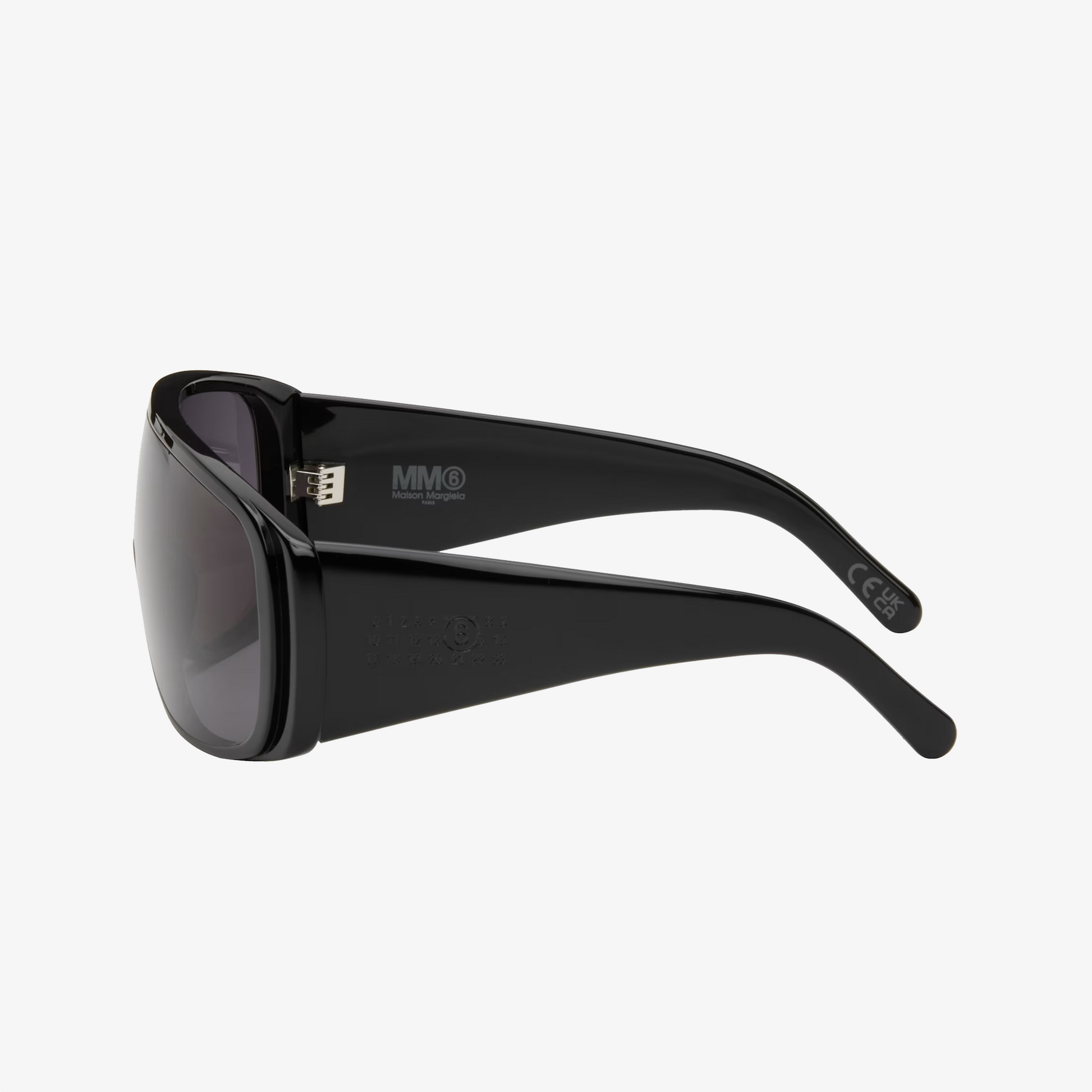 Handcrafted shield-style transparent acetate-frame sunglasses.