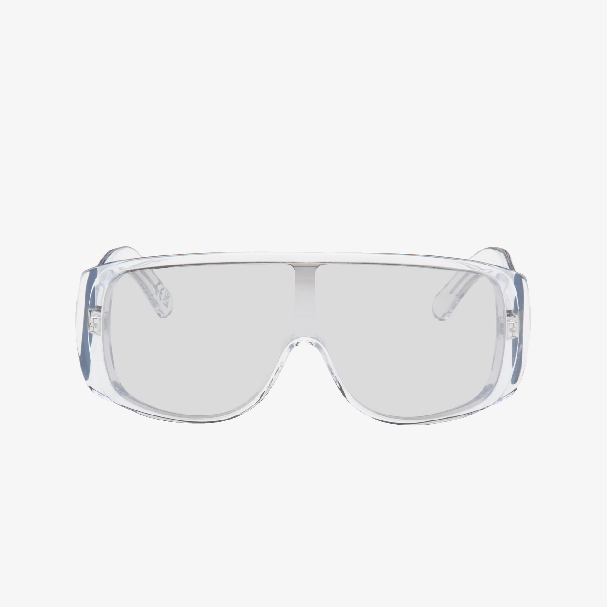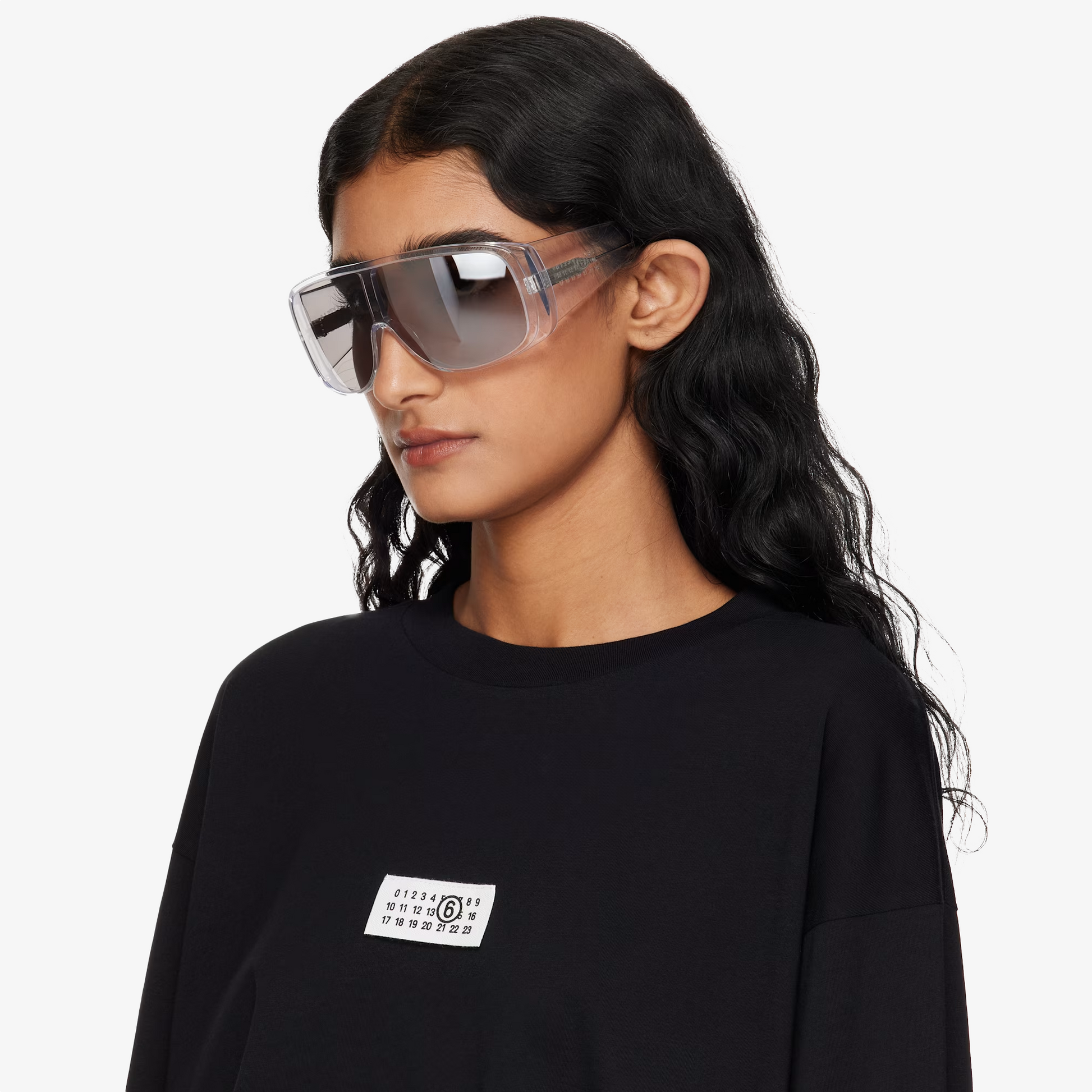 Handcrafted shield-style transparent acetate-frame sunglasses.