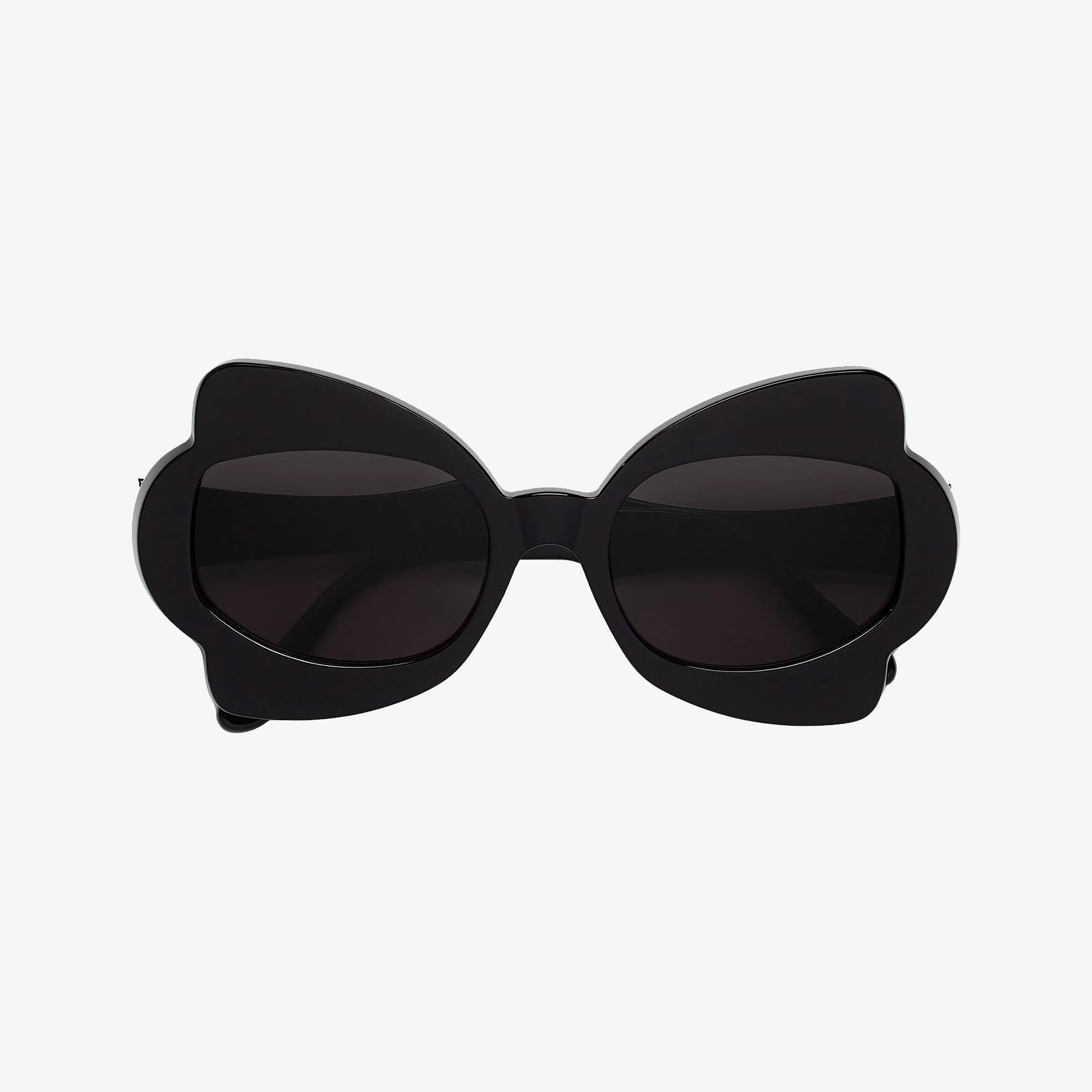 Designed exclusively for Marni, Monumental Gate is a playful silhouette inspired by floral references. Its bold acetate construction features thick, curved rims that have been milled to form a rounded, bulky design. Unique temples complement the frontal piece with a sculptural pointed element carrying a laser engraved Marni logo. This version features black acetate and matching lenses with gold decors.