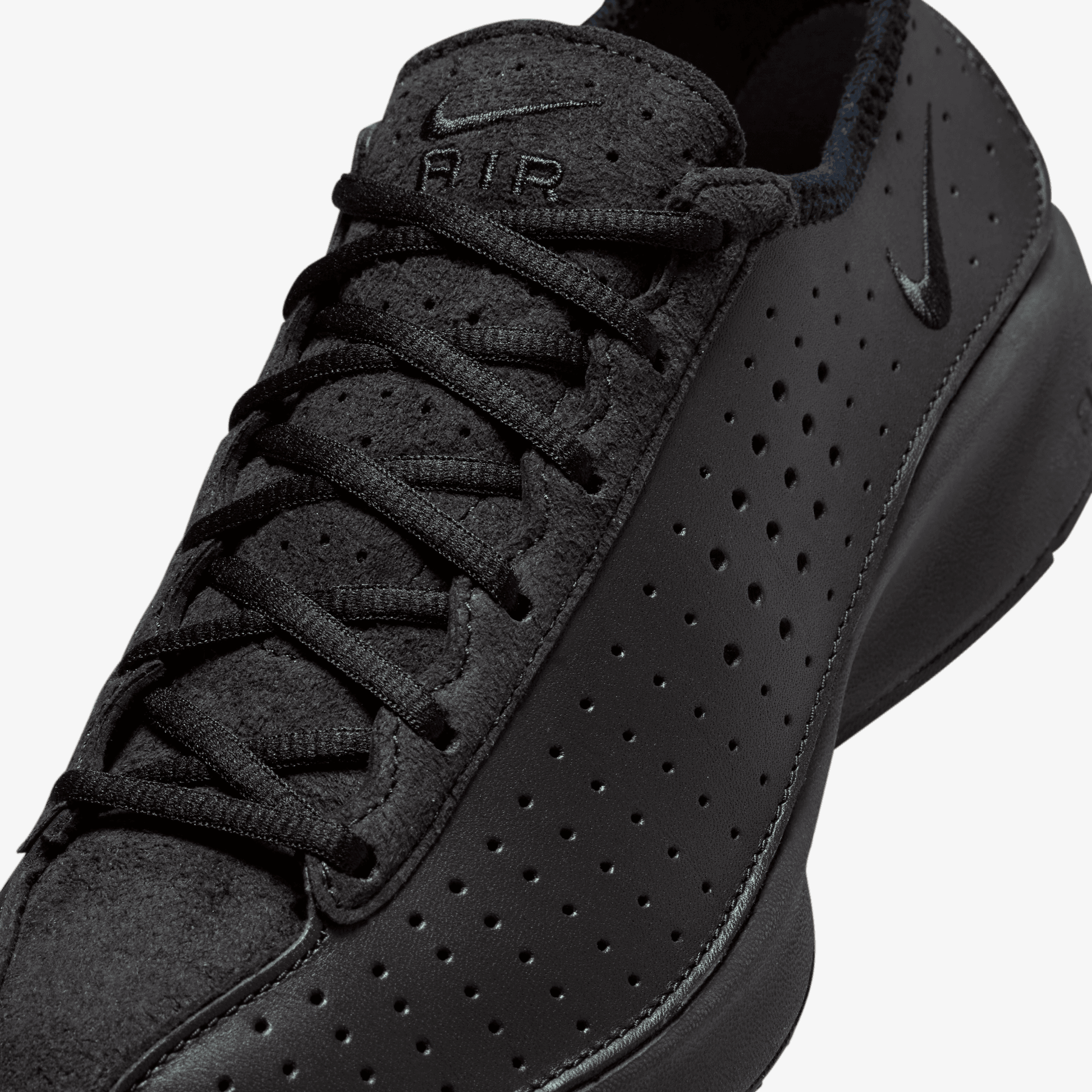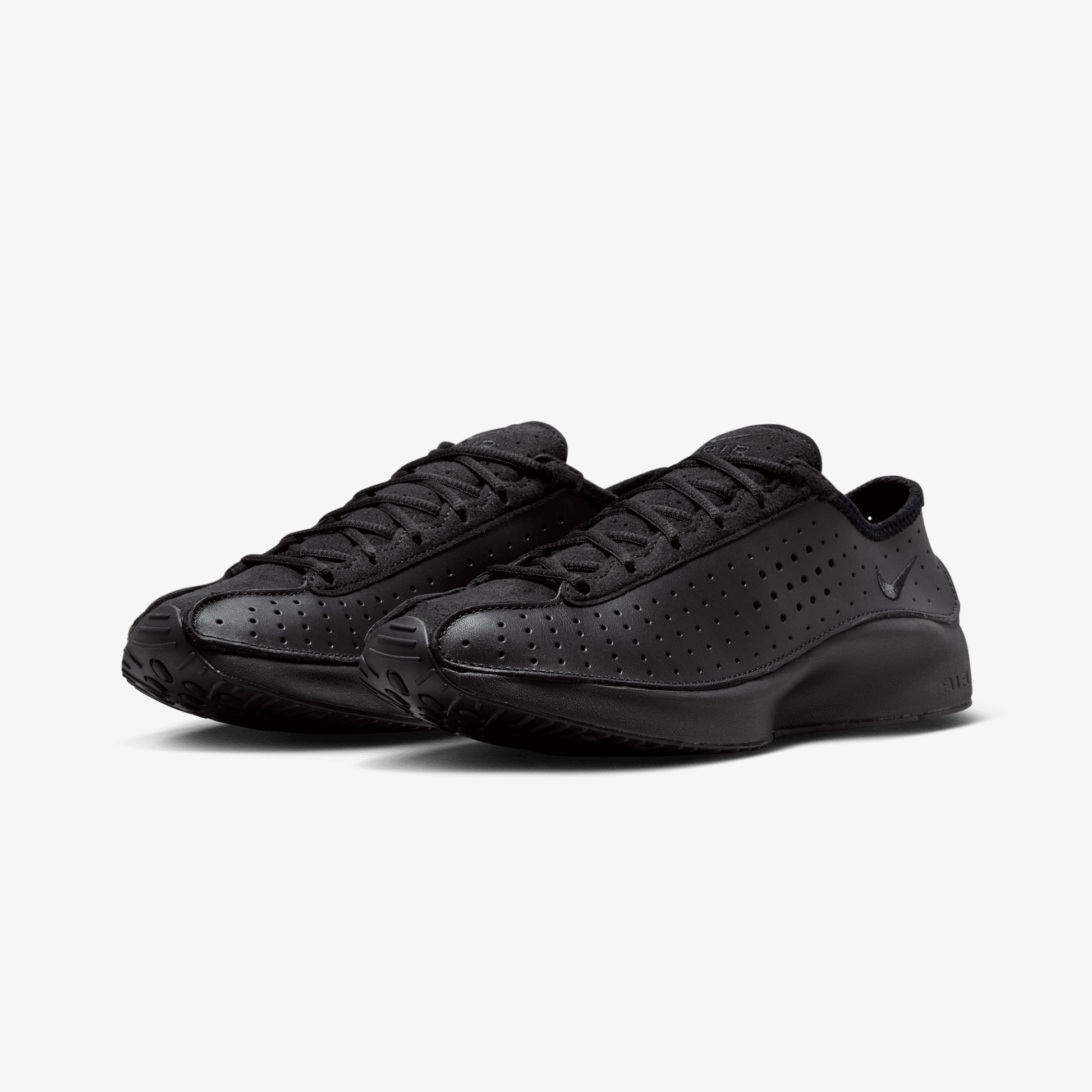 Perforated leather upper with suede accents is breathable and durable.