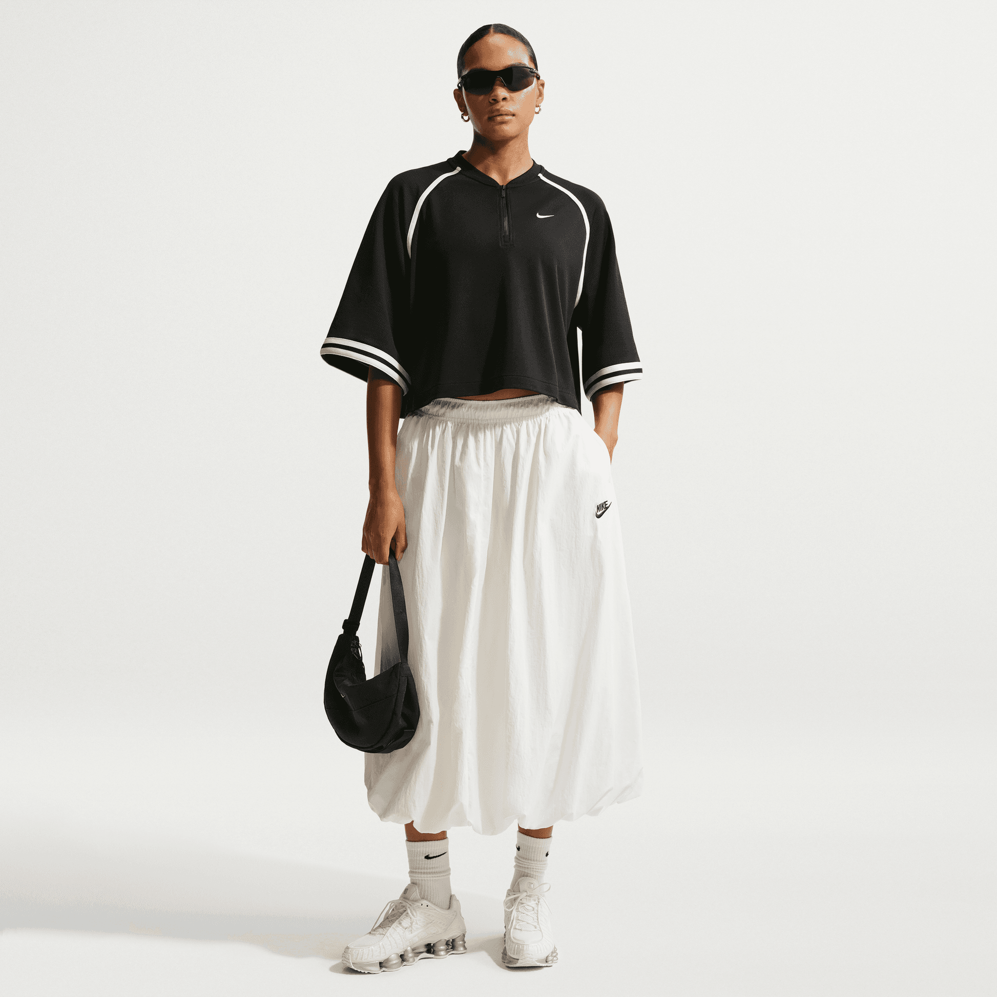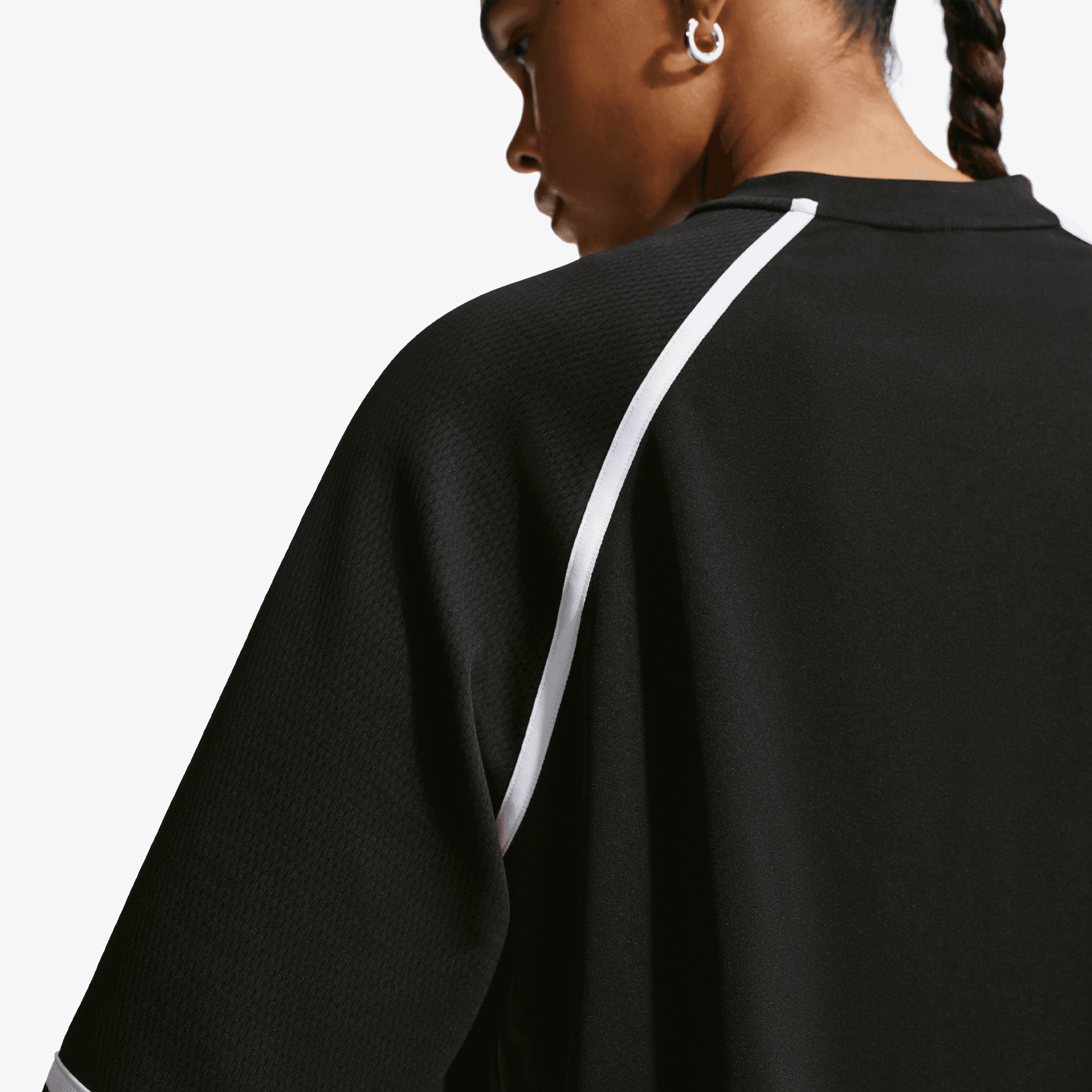 This top has a cropped, boxy fit and bold sleeves for a modern look. Jersey-inspired details like sweat-wicking fabric, mesh sleeves and decorative taping ground it in sport style.