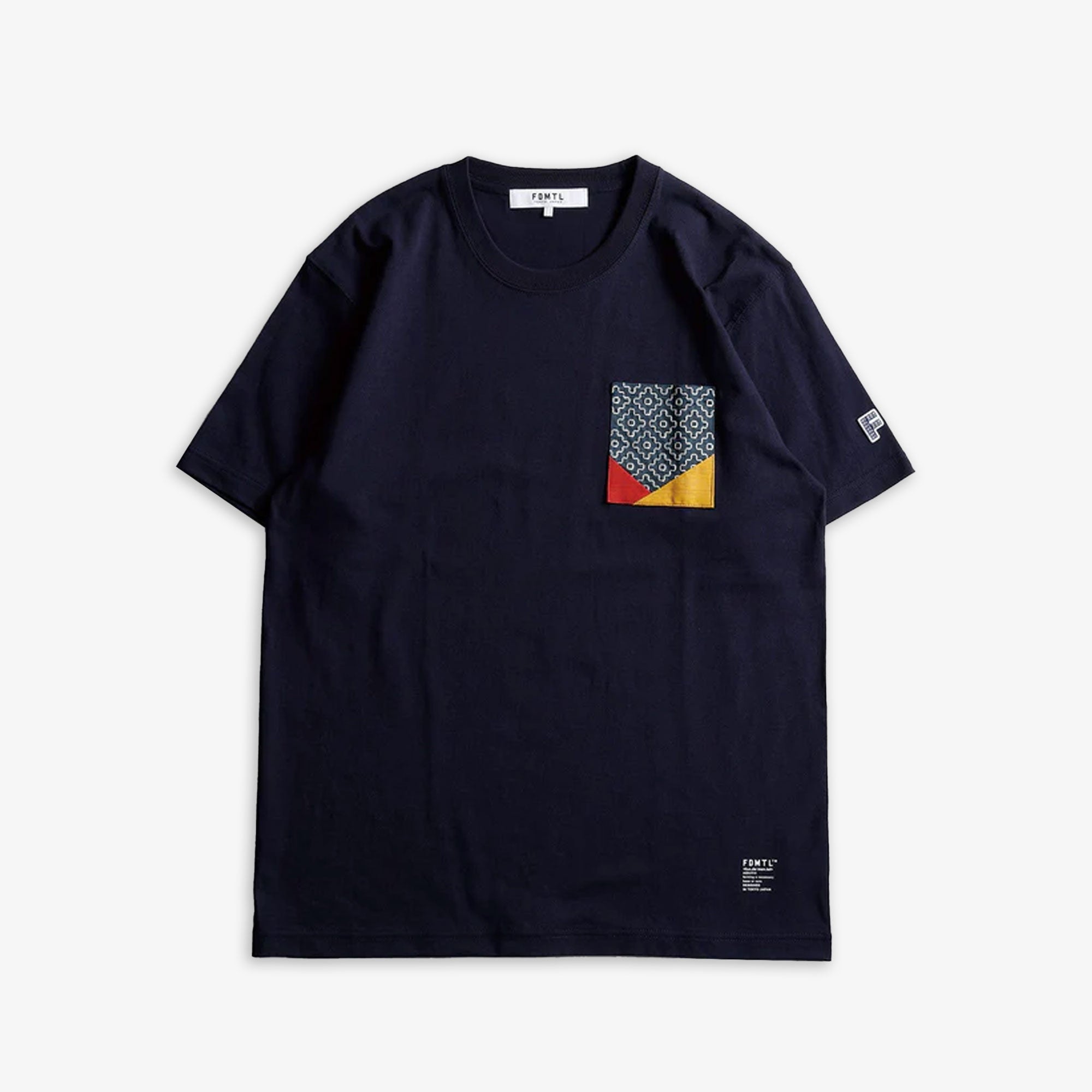 This T-shirt is made from a sturdy jersey fabric that weighs 7.2 ounces. There is a pocket on the chest with an origami motif.