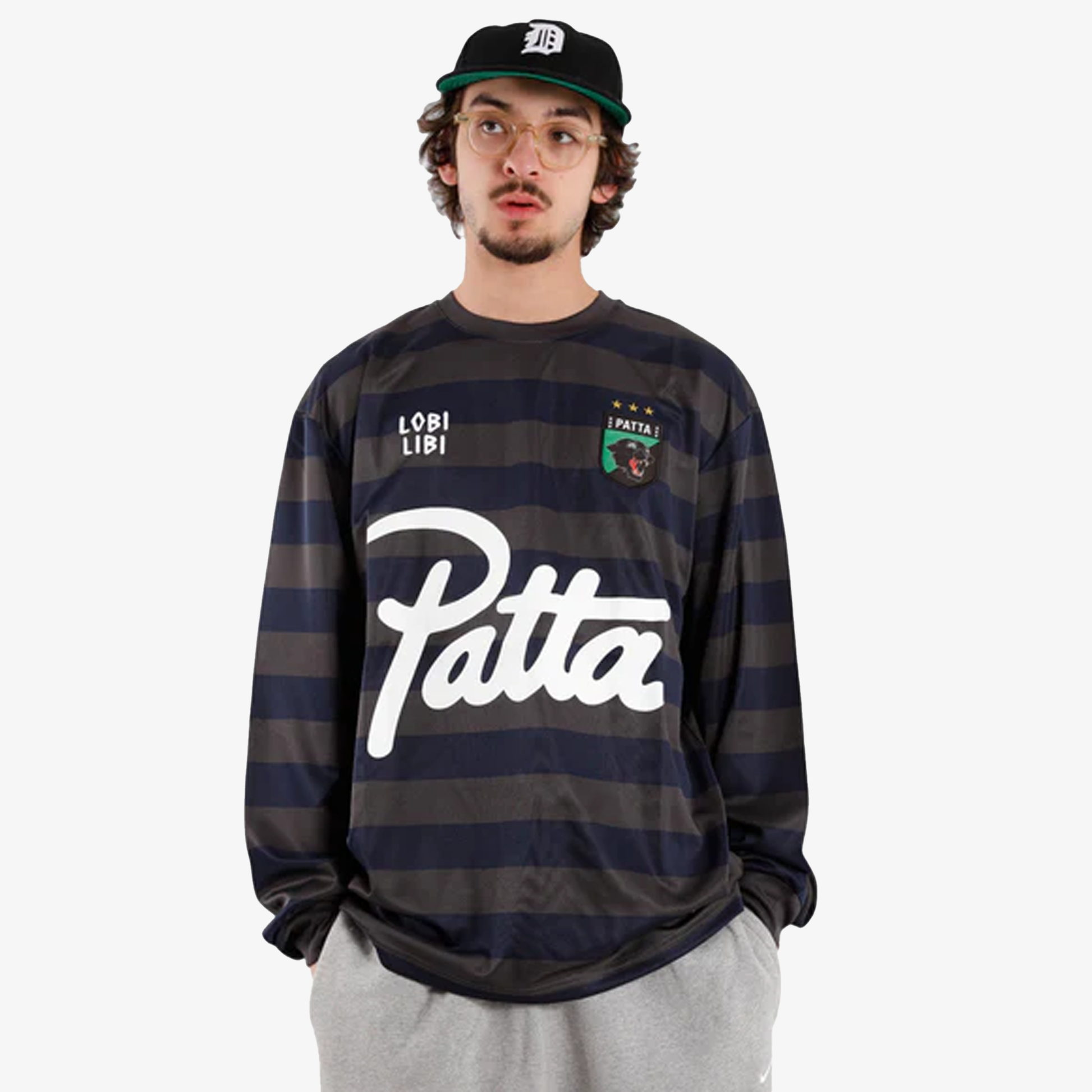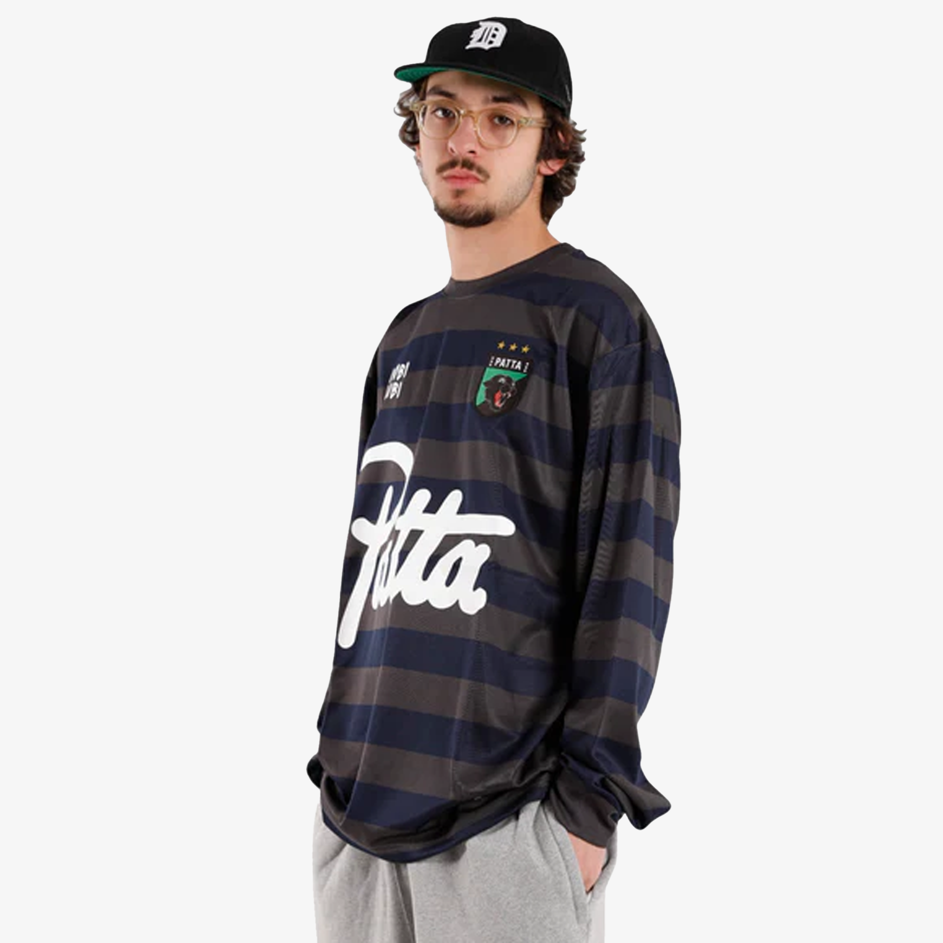 We are back with another addition to our long lasting legacy in high quality football jerseys. The Patta Striped Longsleeve Football Jersey comes in 100% Polyester fabric with an engineered two tone stripe construction. Enriched with our well-known Patta football badge, Lobi Libi embroidery and a transfer printed Patta script logo on the chest.
