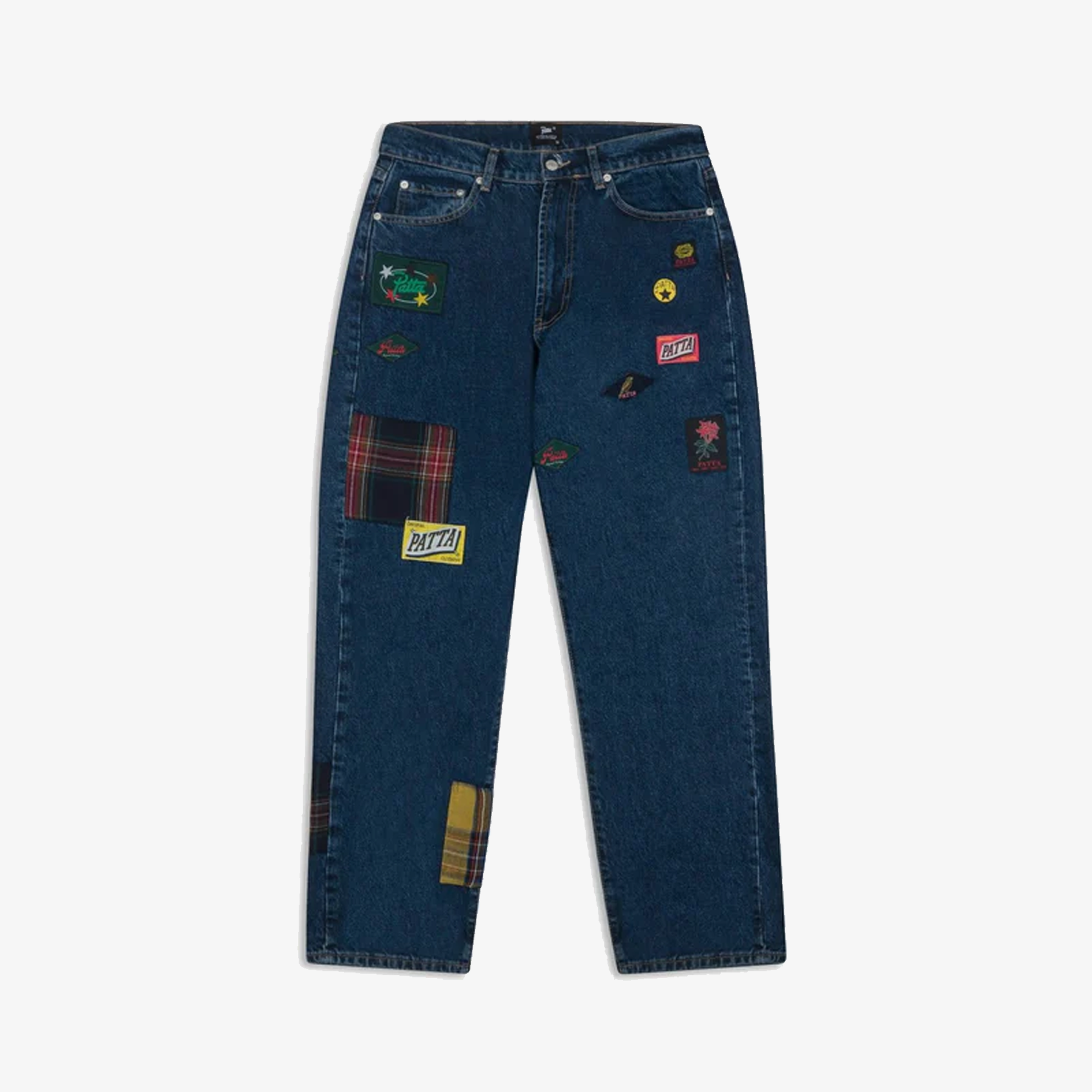 Constructed from 100% cotton, the Patta Whole Lotta Labels Denim Pants offer a relaxed, baggy fit. These pants serve as a distinctive highlight in any wardrobe, featuring extensive Patta-branded patchwork across the fabric. Additional refined details include branded buttons, rivets, and a leather patch on the back, enhancing their signature appeal.