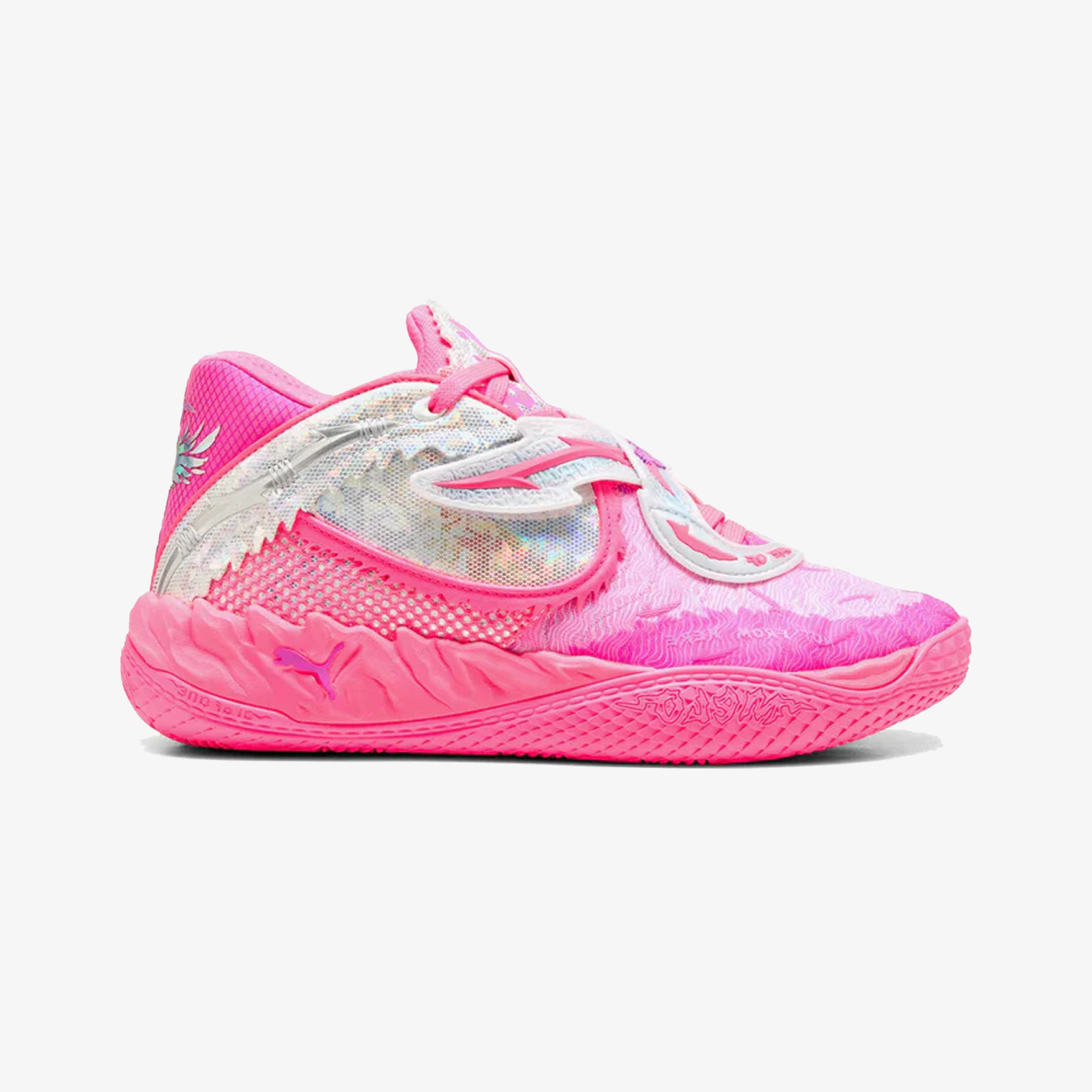 Melo doesn’t play basketball – he hoops. He plays like he’s never been coached. Like he’s in his own world. Just pure instinct and flow. Play like Melo in his newest signature shoe, the MB.05, inspired by Melo’s rockstar status on the court. This hot pink World Tour colourway stands out with iridescent molded barbed wire inspired by Melo’s tattoos and a repeating ‘1’ pattern to reinforce Melo’s 1-of-1 status. Finished off with NITROFOAM™ cushioning for sustained on-court dominance, the MB.05 is made for you to embrace your own 1 of 1.