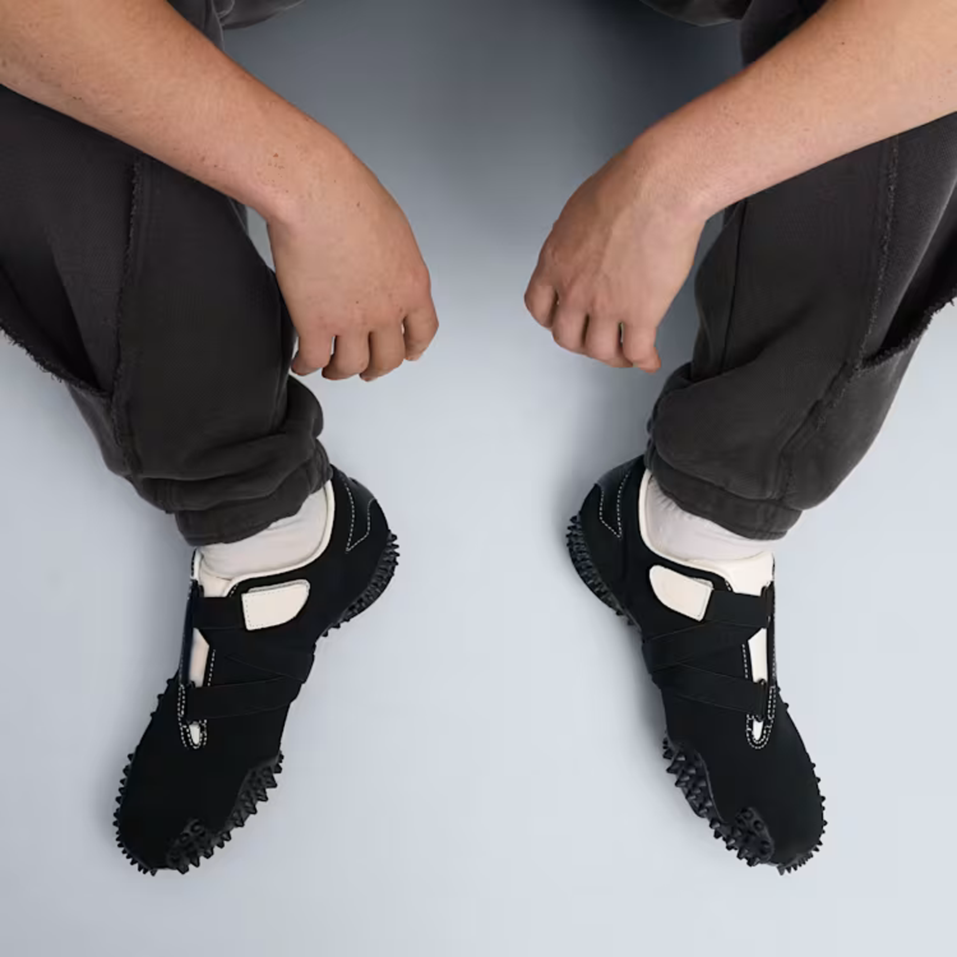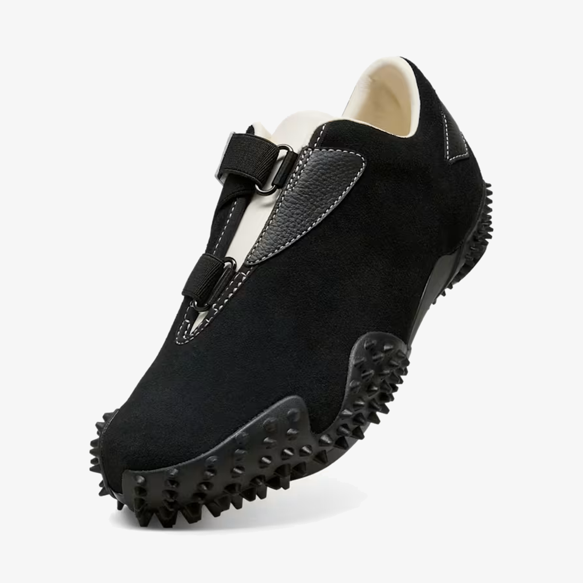Mostro Icons brings back an unmistakable silhouette with its mix of suede, leather overlays, and that signature wrapped rubber tooling. The elastic Velcro closure snaps the look into place, giving the sneaker a bold, future-retro attitude. It’s the kind of pair that turns heads without ever raising its voice.