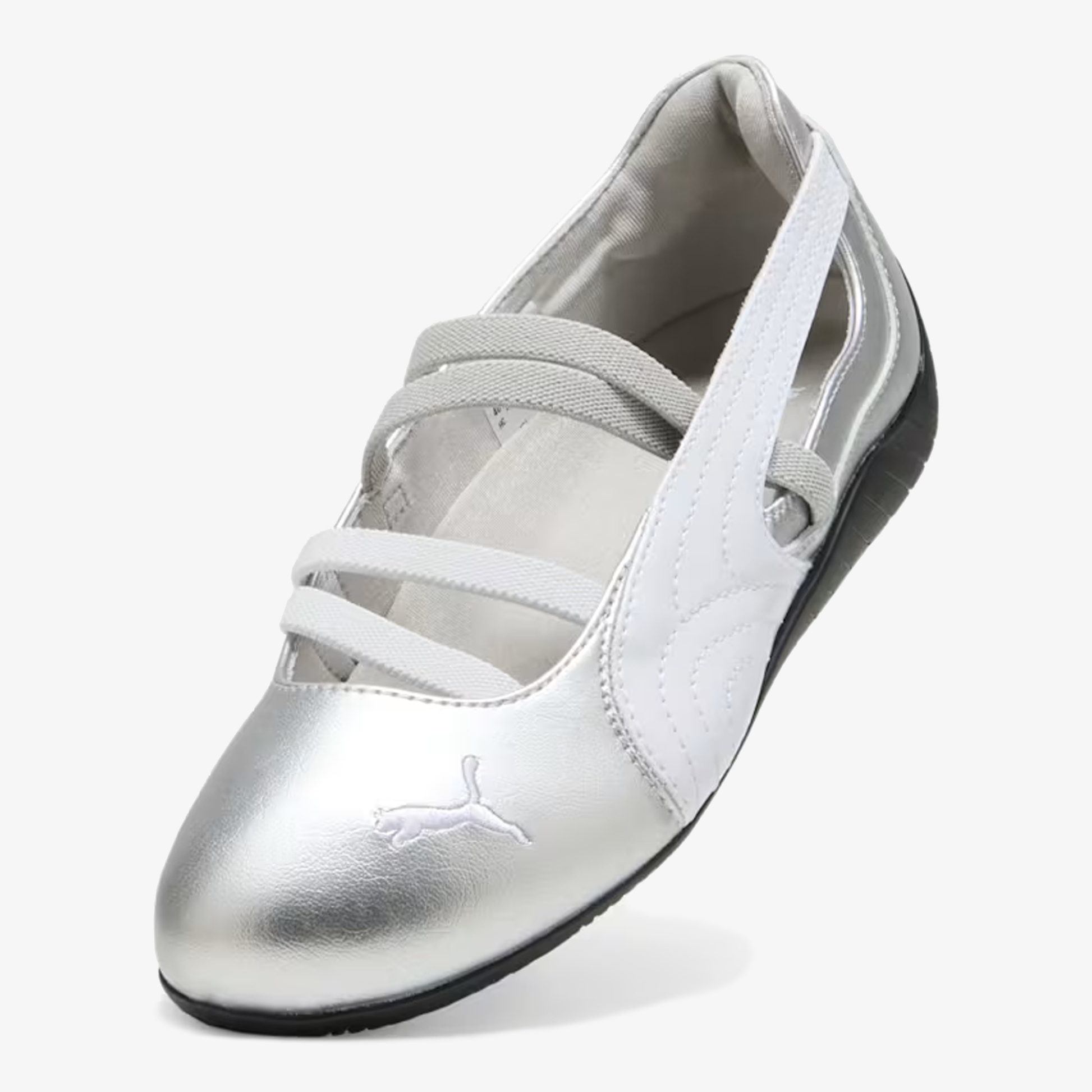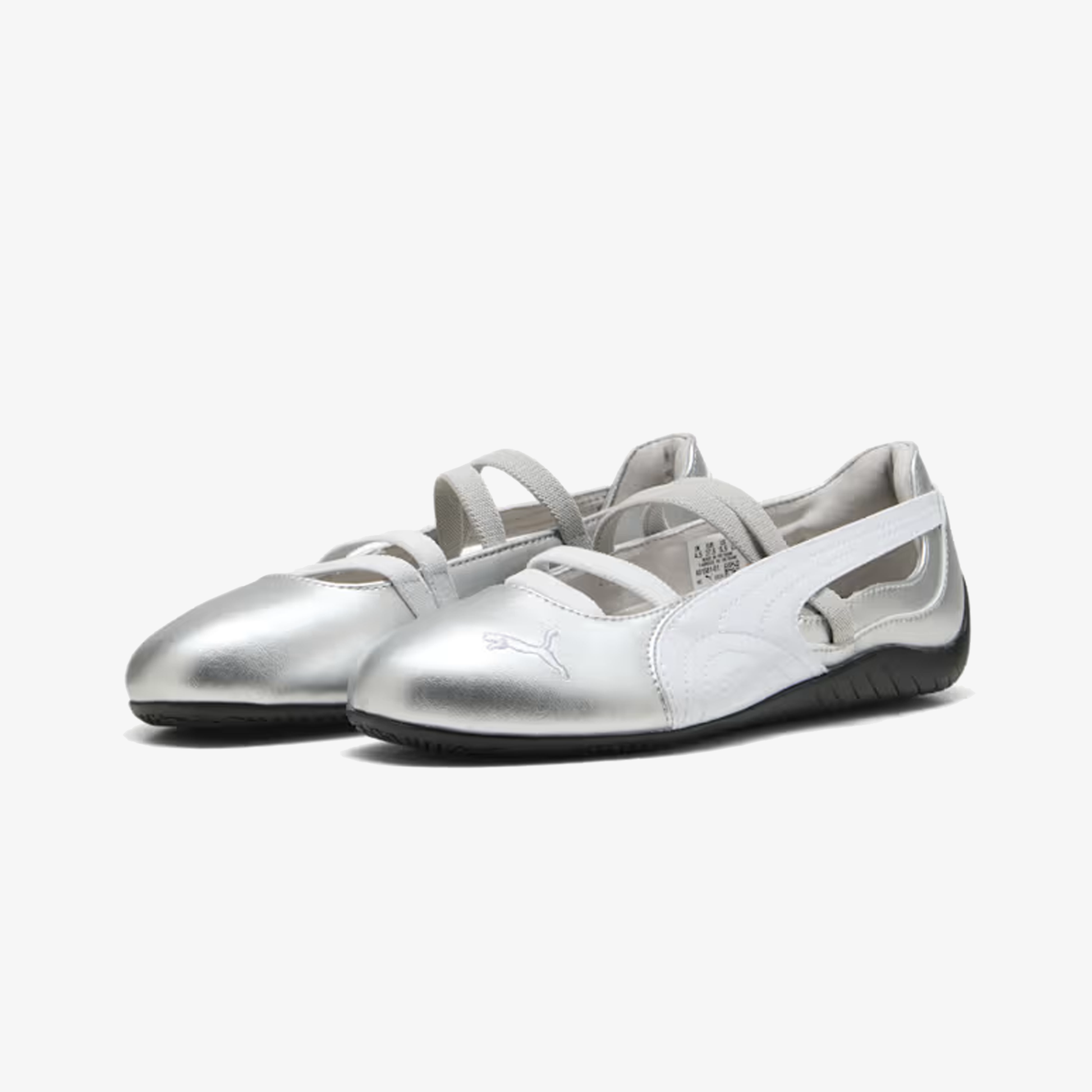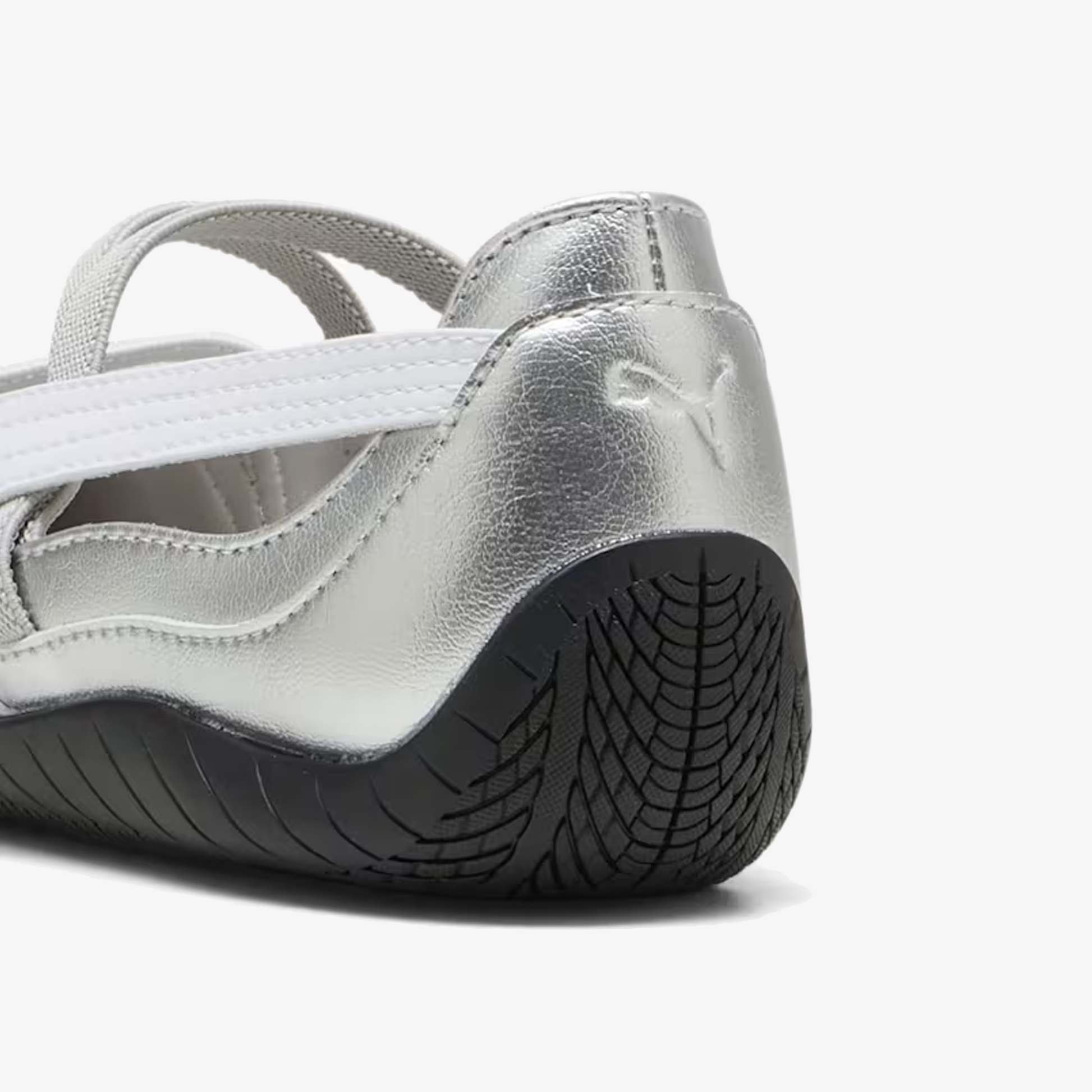 An icon of racing culture, the PUMA Speedcat has been synonymous with speed, precision, and unparalleled performance for over 25 years. It originated as a fireproof Formula 1® footwear style, but over the decades it found itself on a new circuit – transcending the tracks of Monaco for the streets of global fashion capitals. Merging ballet elegance with that original racing DNA, the Speedcat Ballet features a metallic upper, embroidered PUMA cat, and elastic bands for a snug fit. Embrace the low-profile trend with this iconic PUMA silhouette.