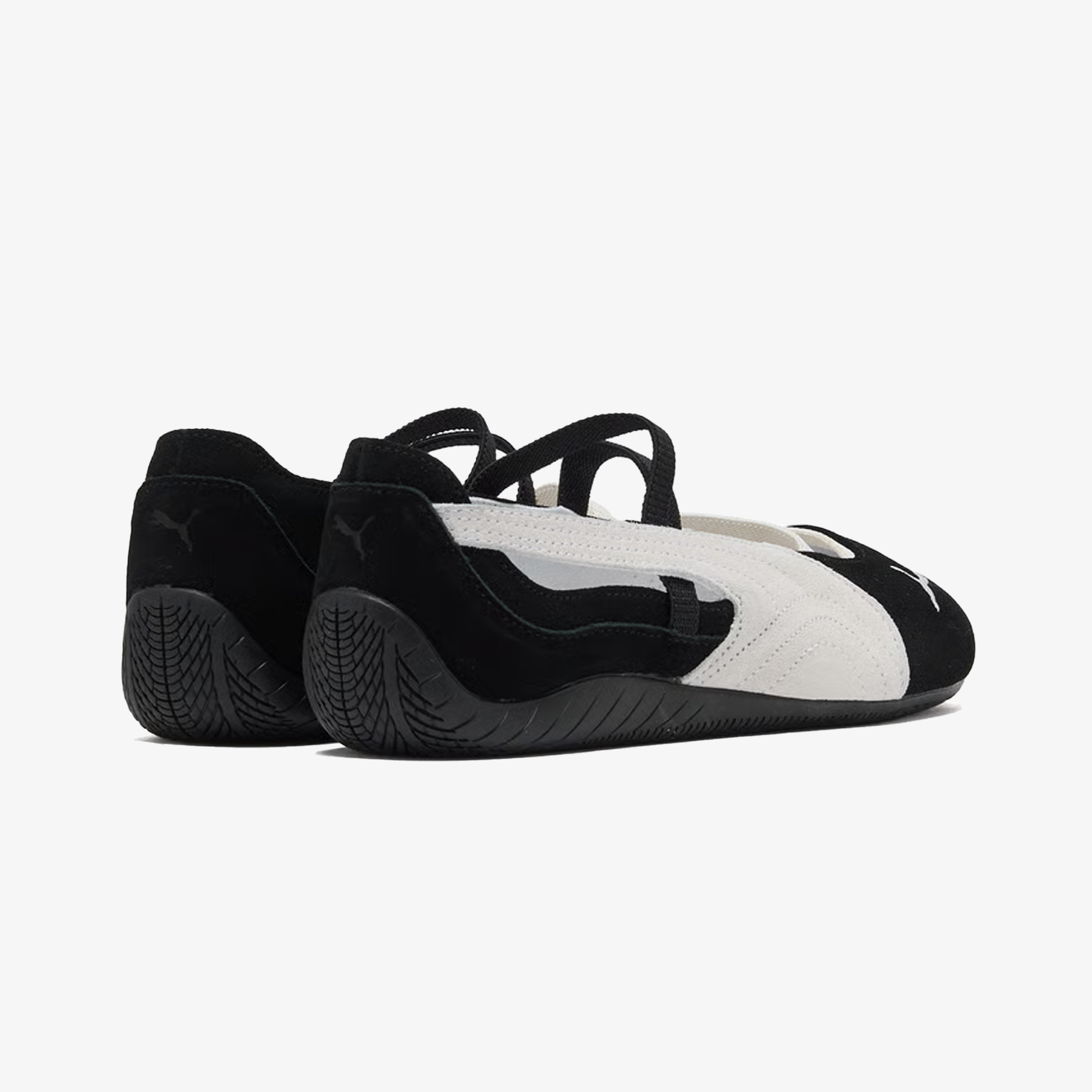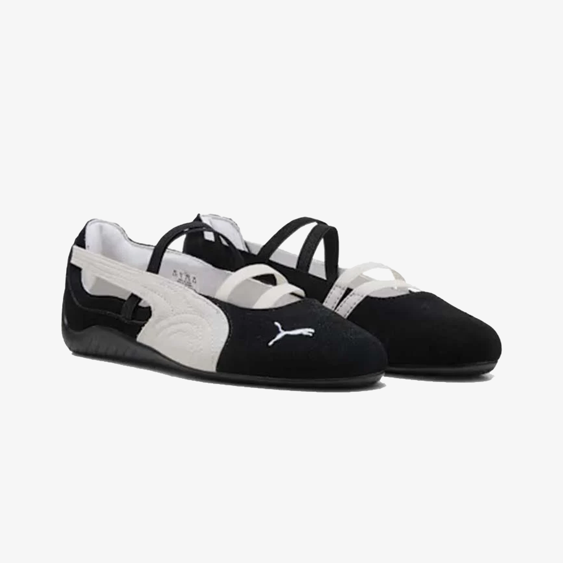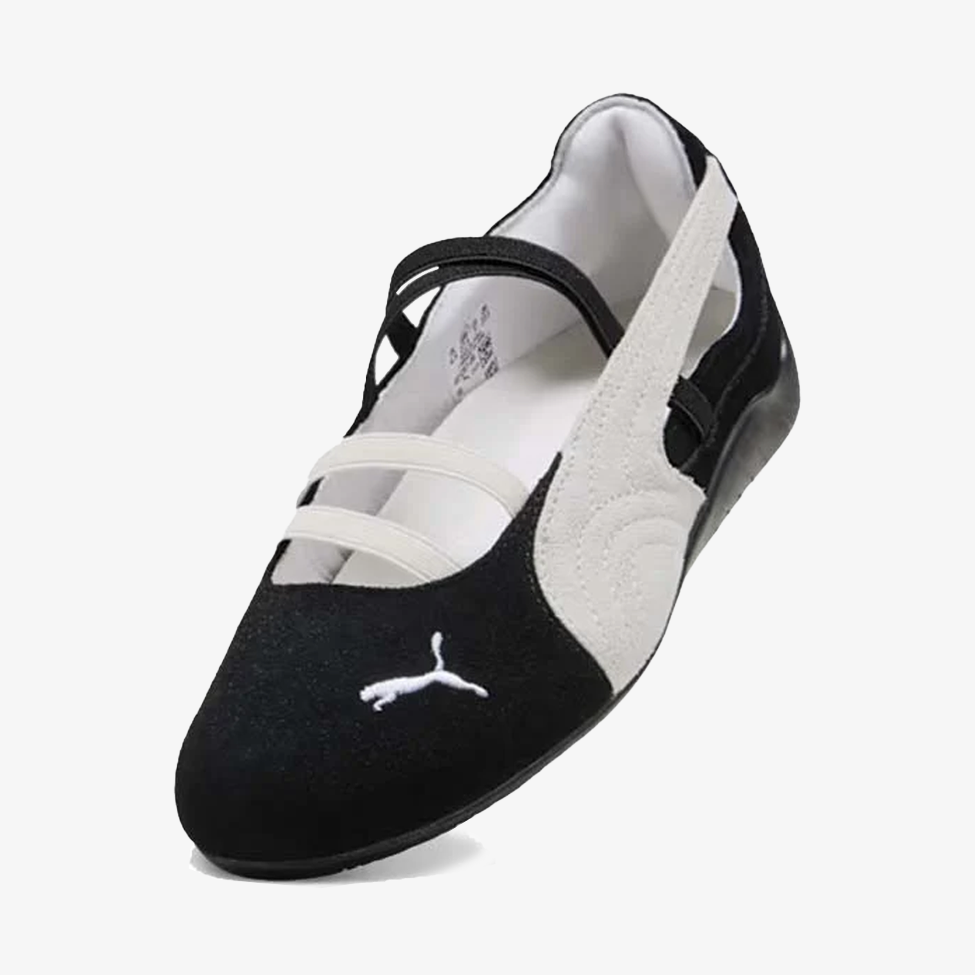 Rewrite the classics with Speedcat Ballet, a new iteration of the PUMA Speedcat. Drawing inspiration from classic ballet flats, the Speedcat Ballet transforms the icon of racing culture with a chic slip-on construction. Featuring a unique cutout Formstrip, elastic straps, and a tire tread sole, the Speedcat Ballet is serving up effortless track-turned-street style.