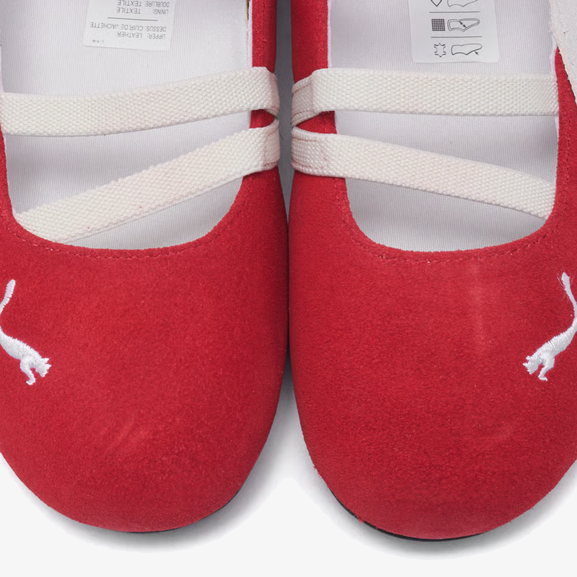 Rewrite the classics with Speedcat Ballet, a new iteration of the PUMA Speedcat. Drawing inspiration from classic ballet flats, the Speedcat Ballet transforms the icon of racing culture with a chic slip-on construction. Featuring a unique cutout Formstrip, elastic straps, and a tire tread sole, the Speedcat Ballet is serving up effortless track-turned-street style.