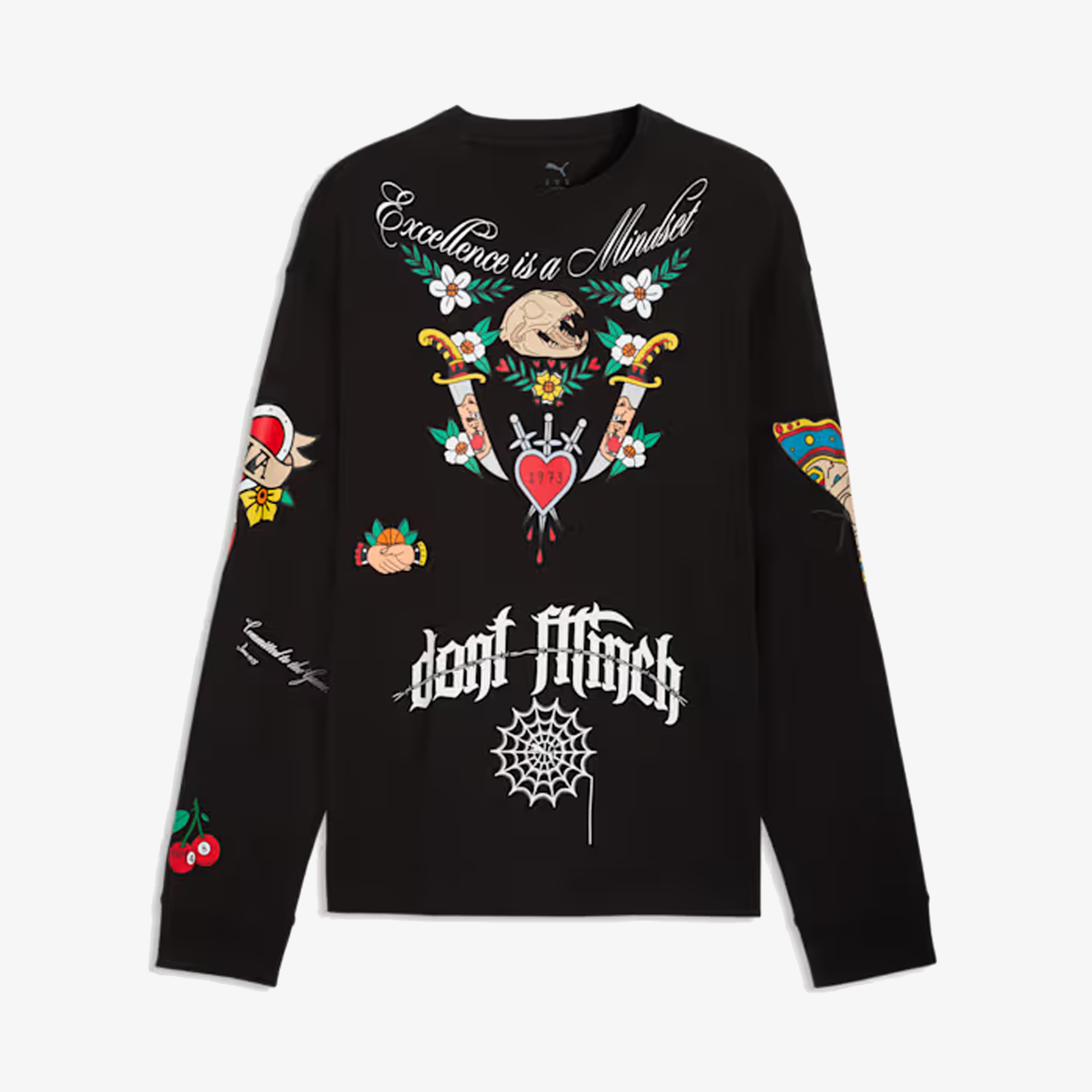 PUMA | SWISH N' INK LONG SLEEVE OVERSIZED BASKETBALL TEE { BLACK