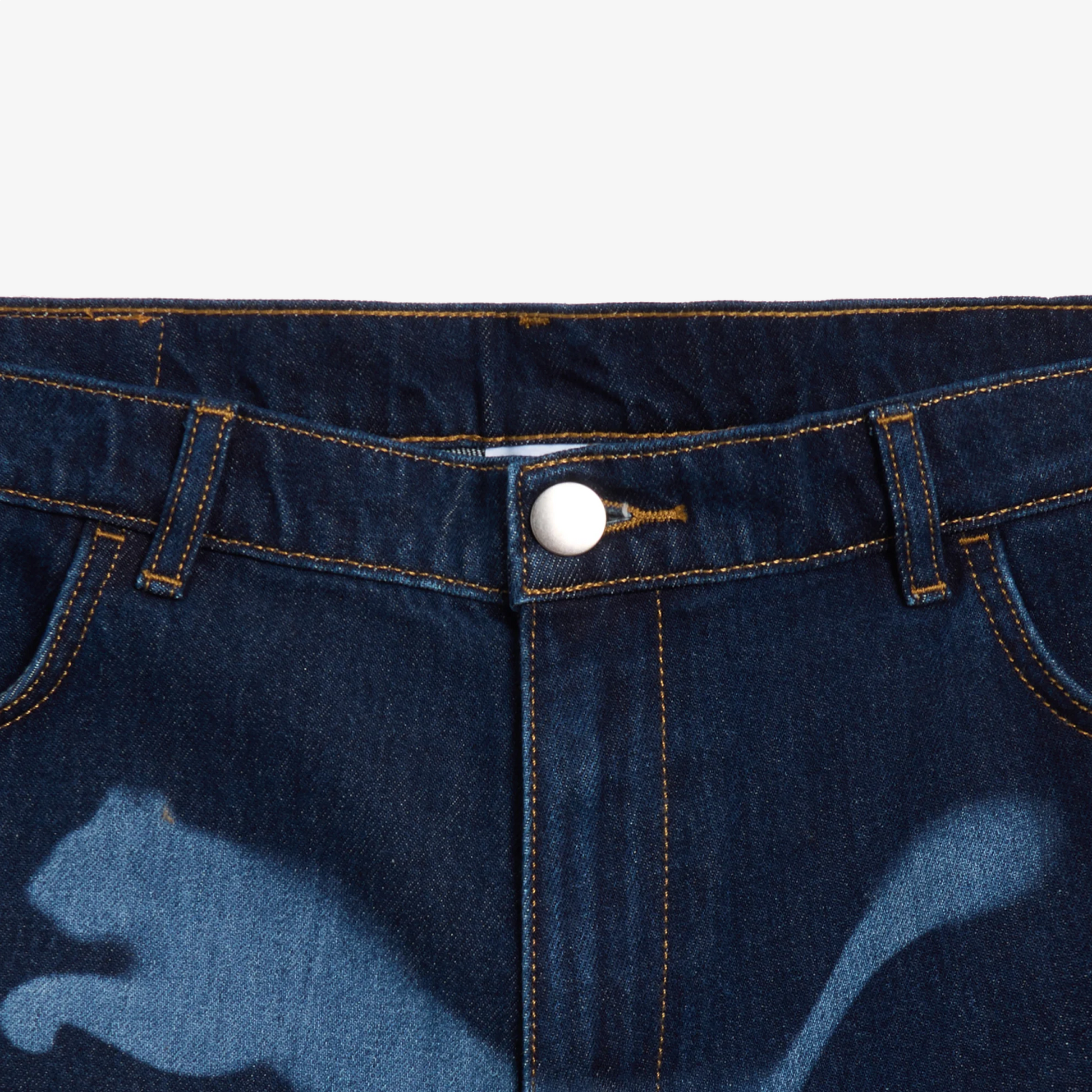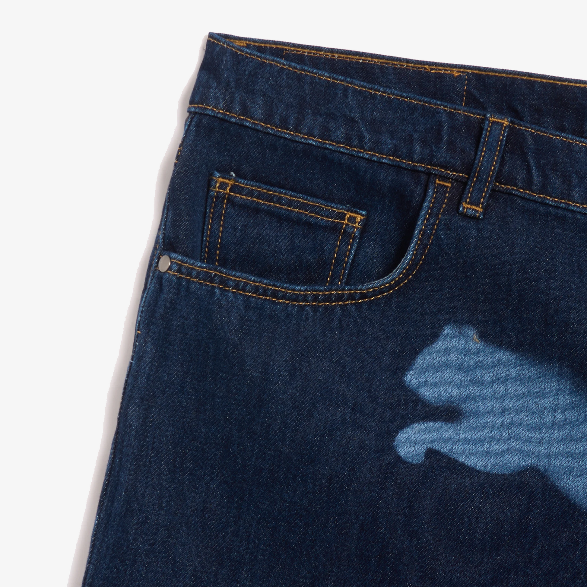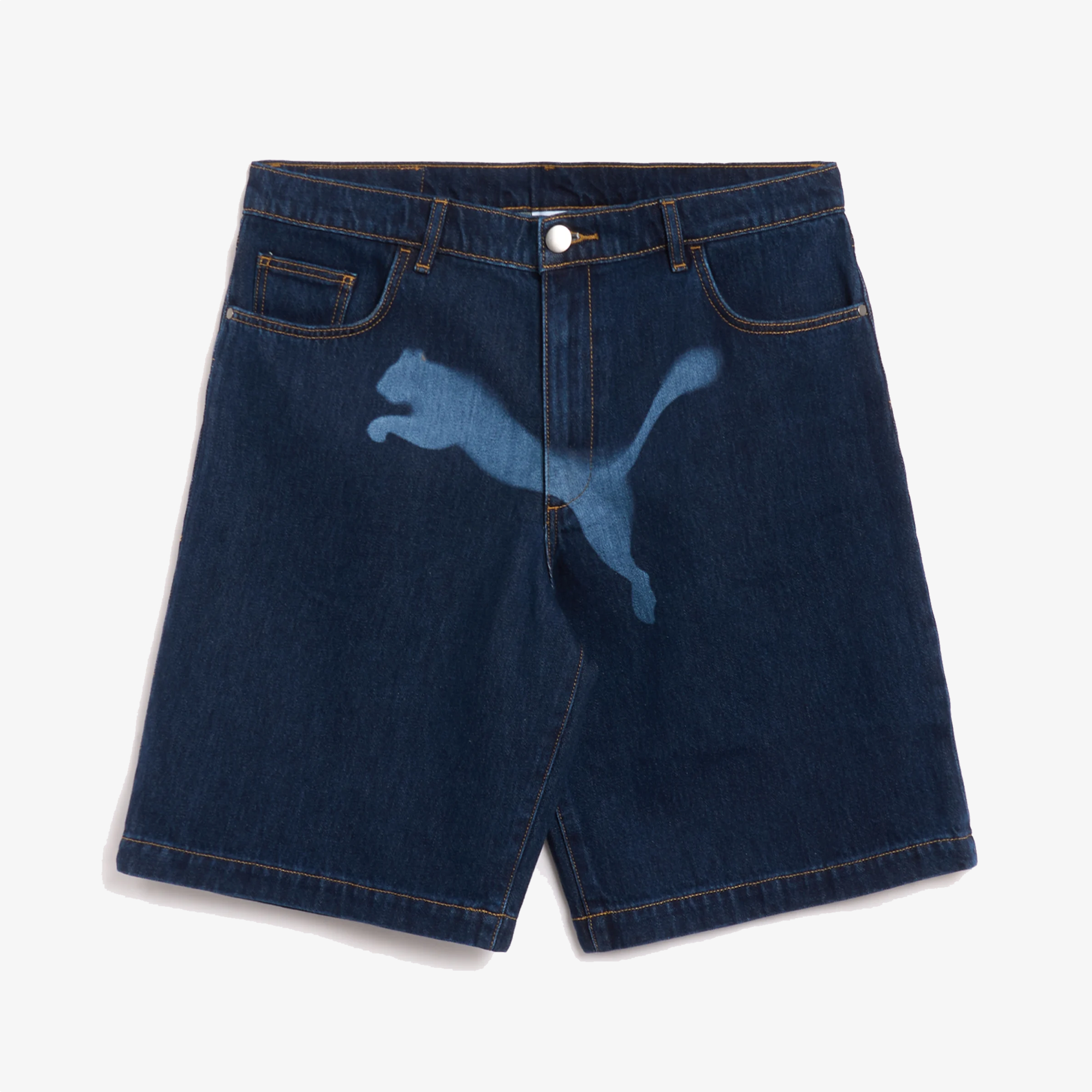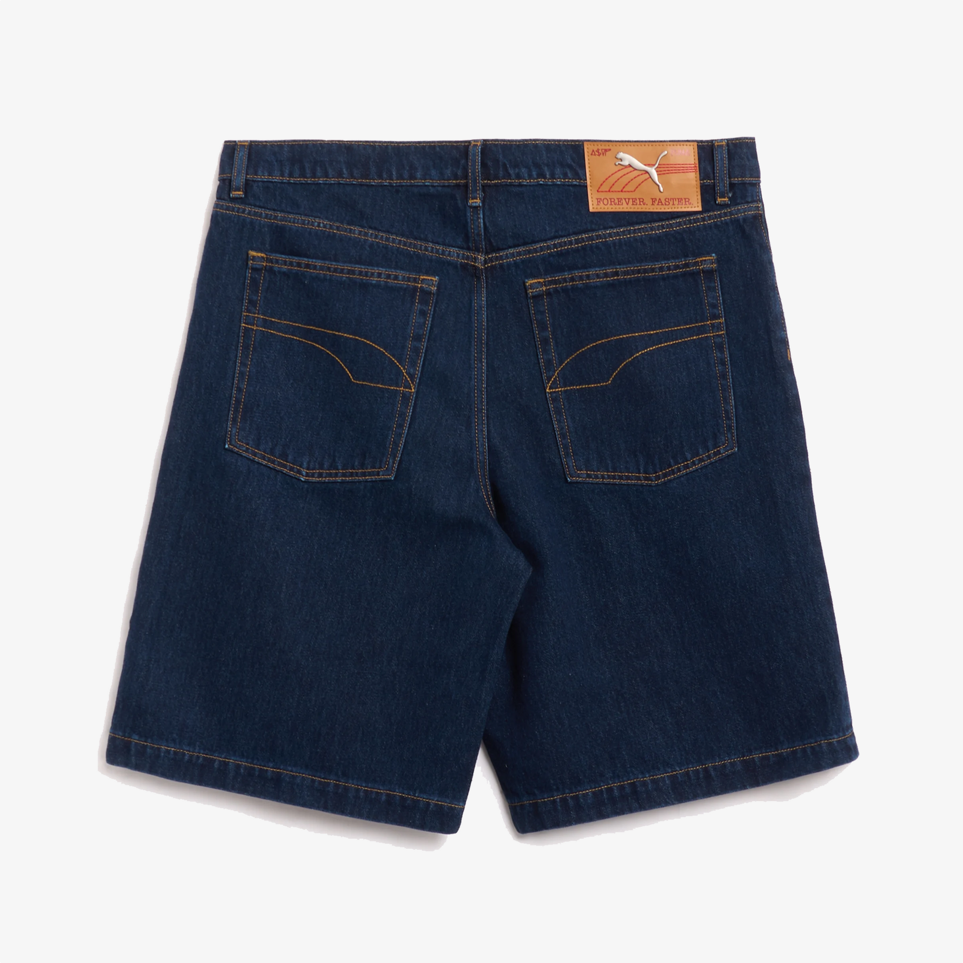 These A$AP ROCKY x PUMA denim shorts are designed with dark wash denim and a baggy fit, they feature oversized PUMA branding at the front and a Formstrip stitched at the back pockets.