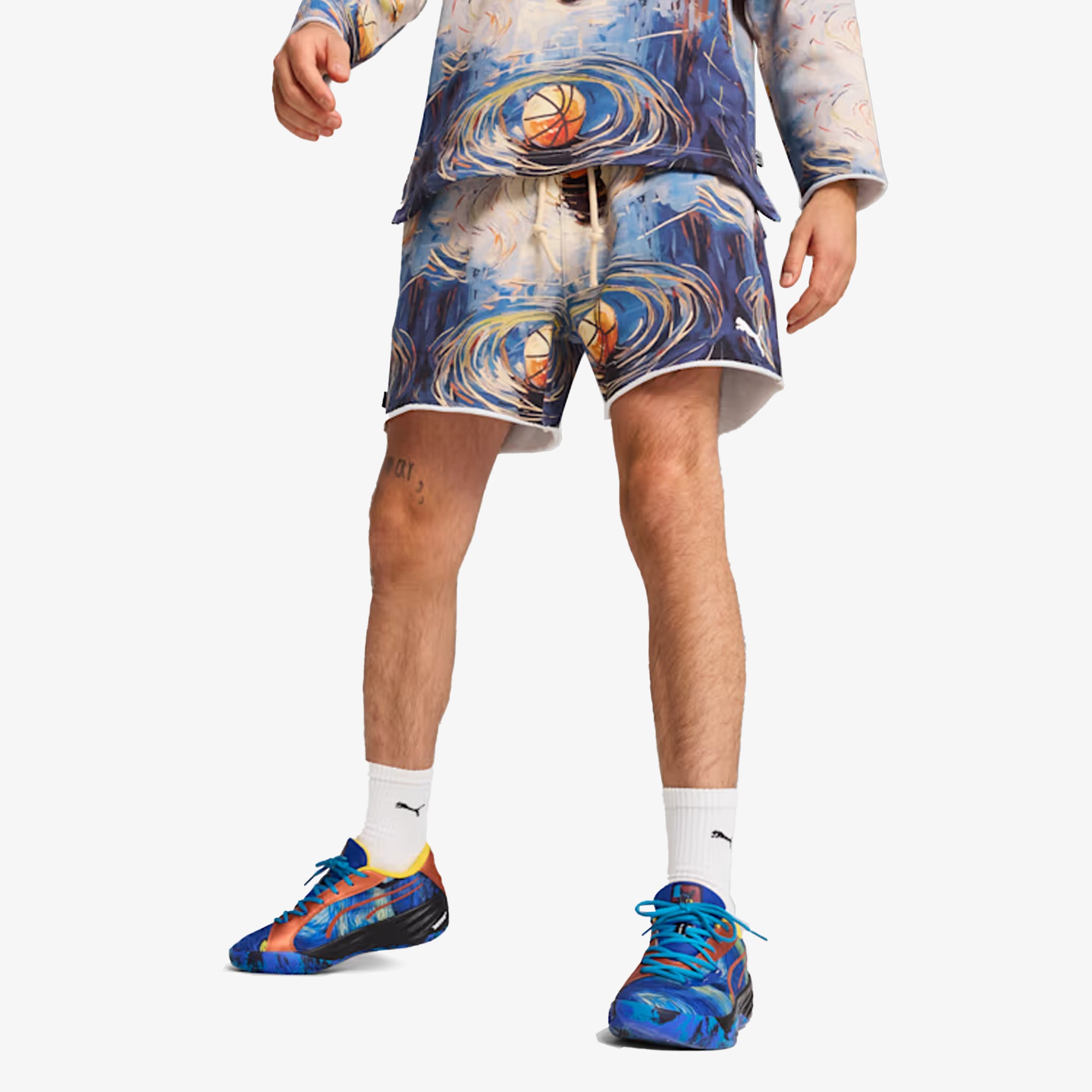 PUMA | X DYLAN EXHIBIT PRINTED TERRY SHORT { VIVID BLUE