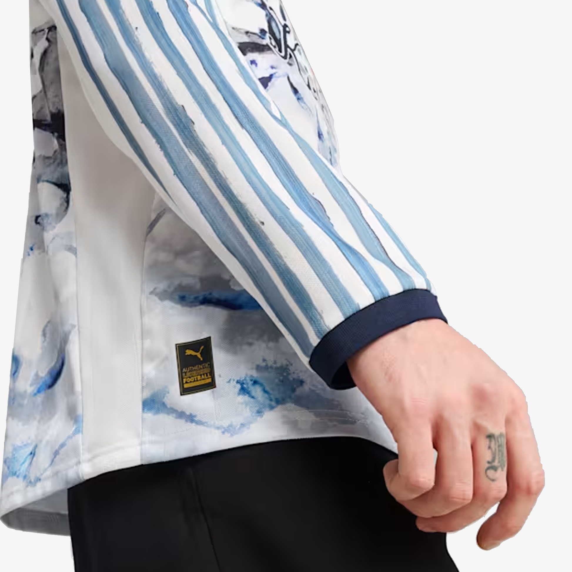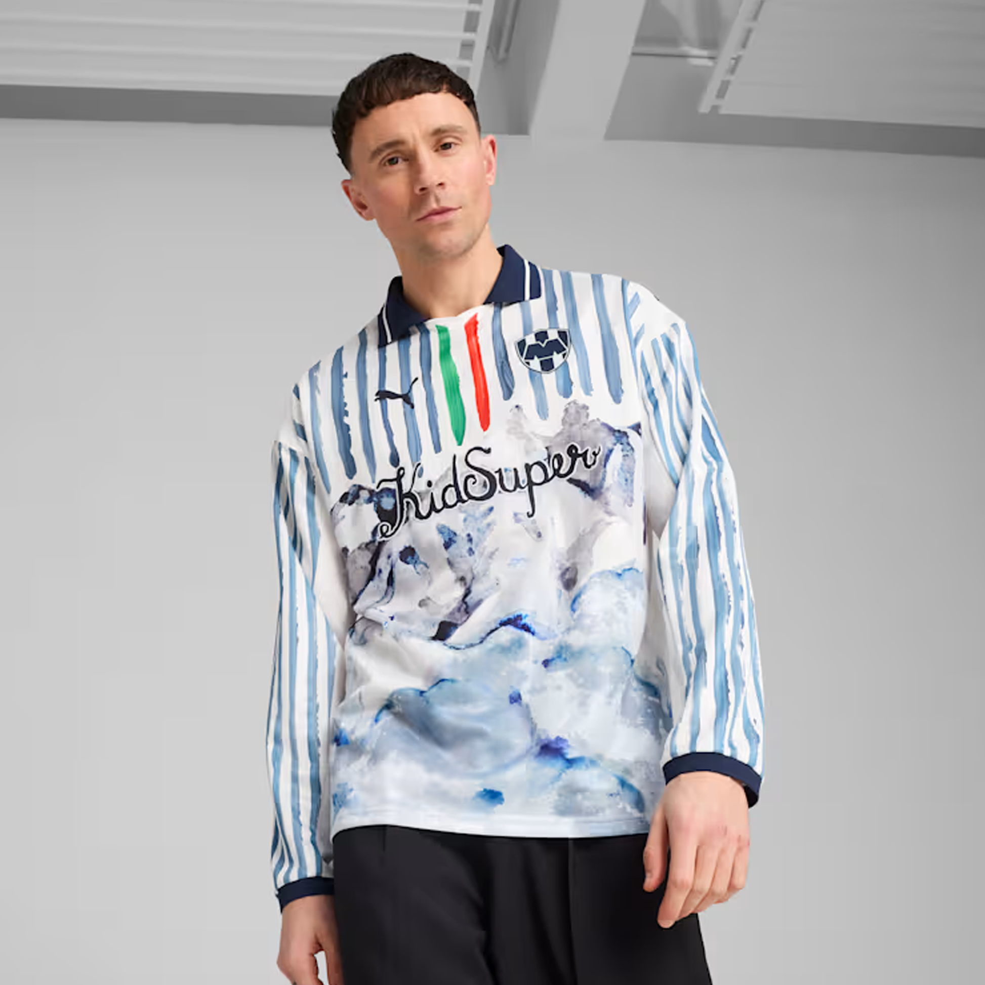 Colm Dillane, a.k.a. KidSuper, always wanted to play on the big stage. This summer, his designs are hitting the pitch at the world’s biggest club tournament. PUMA teams are heading to the USA in kits dreamt up by the Brooklyn designer. Hand-drawn graphics, watercolor palettes, and designs rooted in club culture come together for a fresh take on the Beautiful Game – created by someone who never stopped dreaming of it.