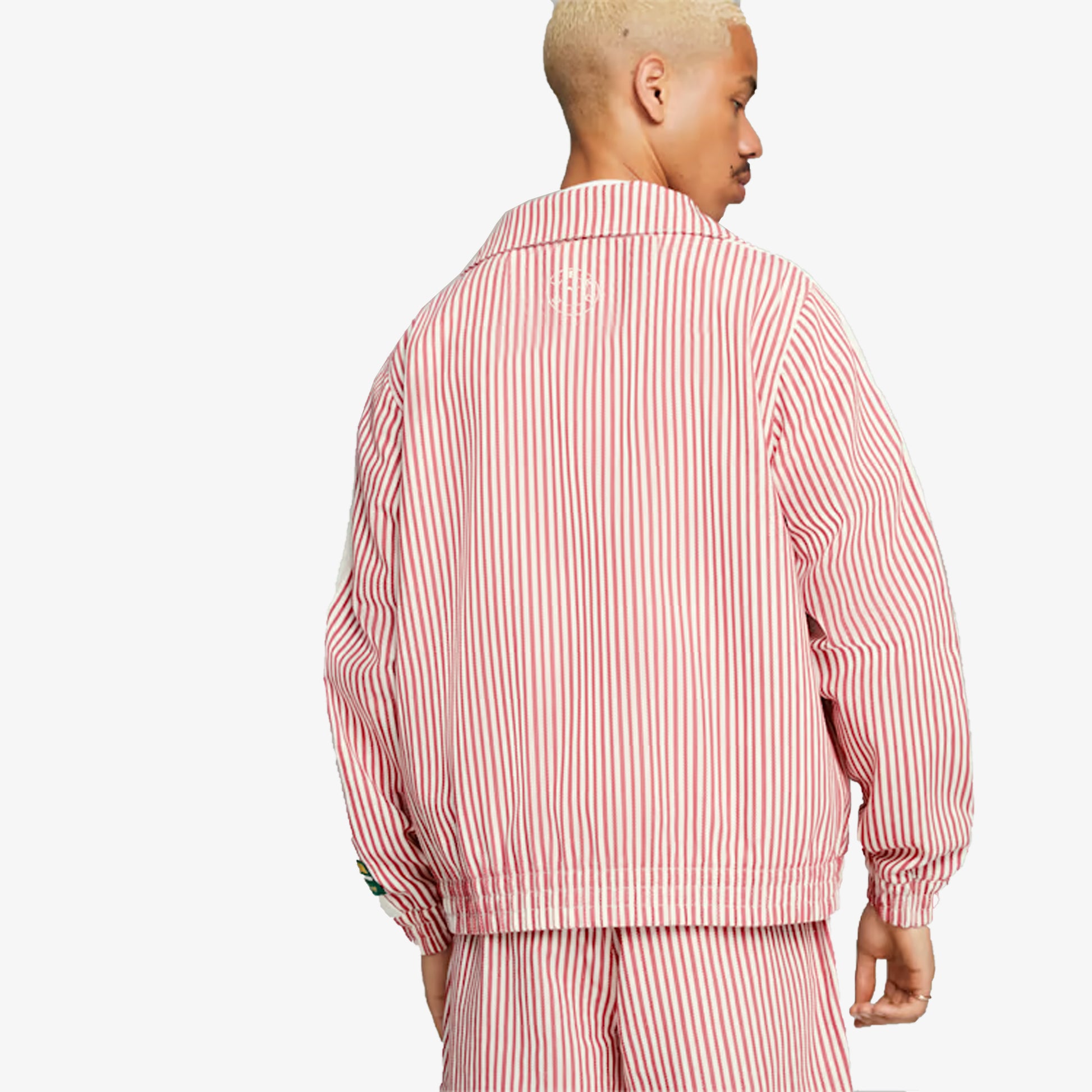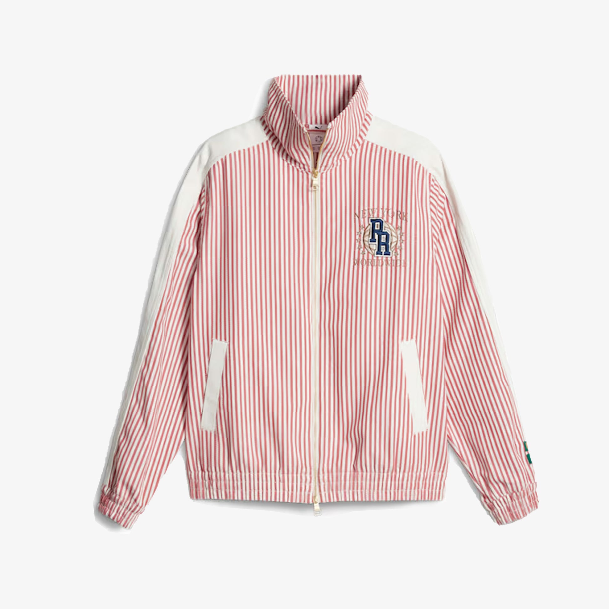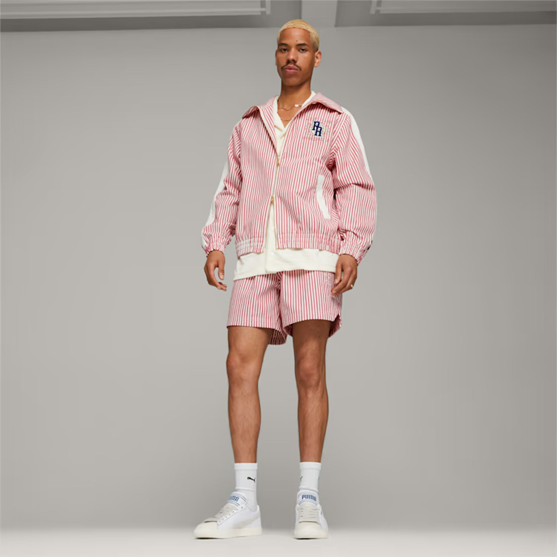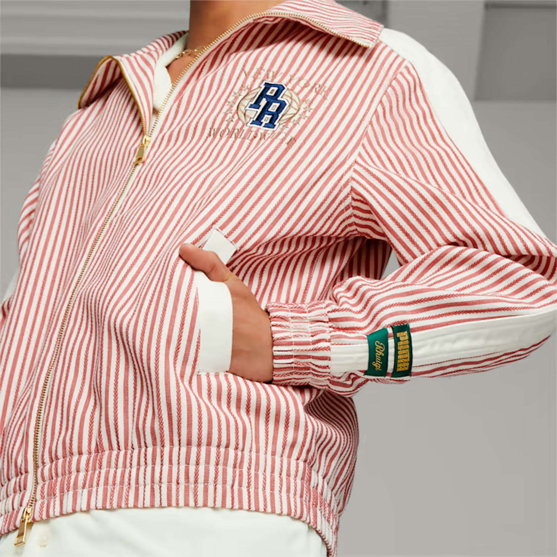 The latest PUMA x RHUIGI collection reinterprets PUMA classics as a tribute to New York – the city that shapes youth culture like no other. Timeless NYC silhouettes are given sporty textures, stripes and retro branding. This summer jacket follows the theme with some standout pinstripes and a silhouette that follows our iconic T7 track jacket.