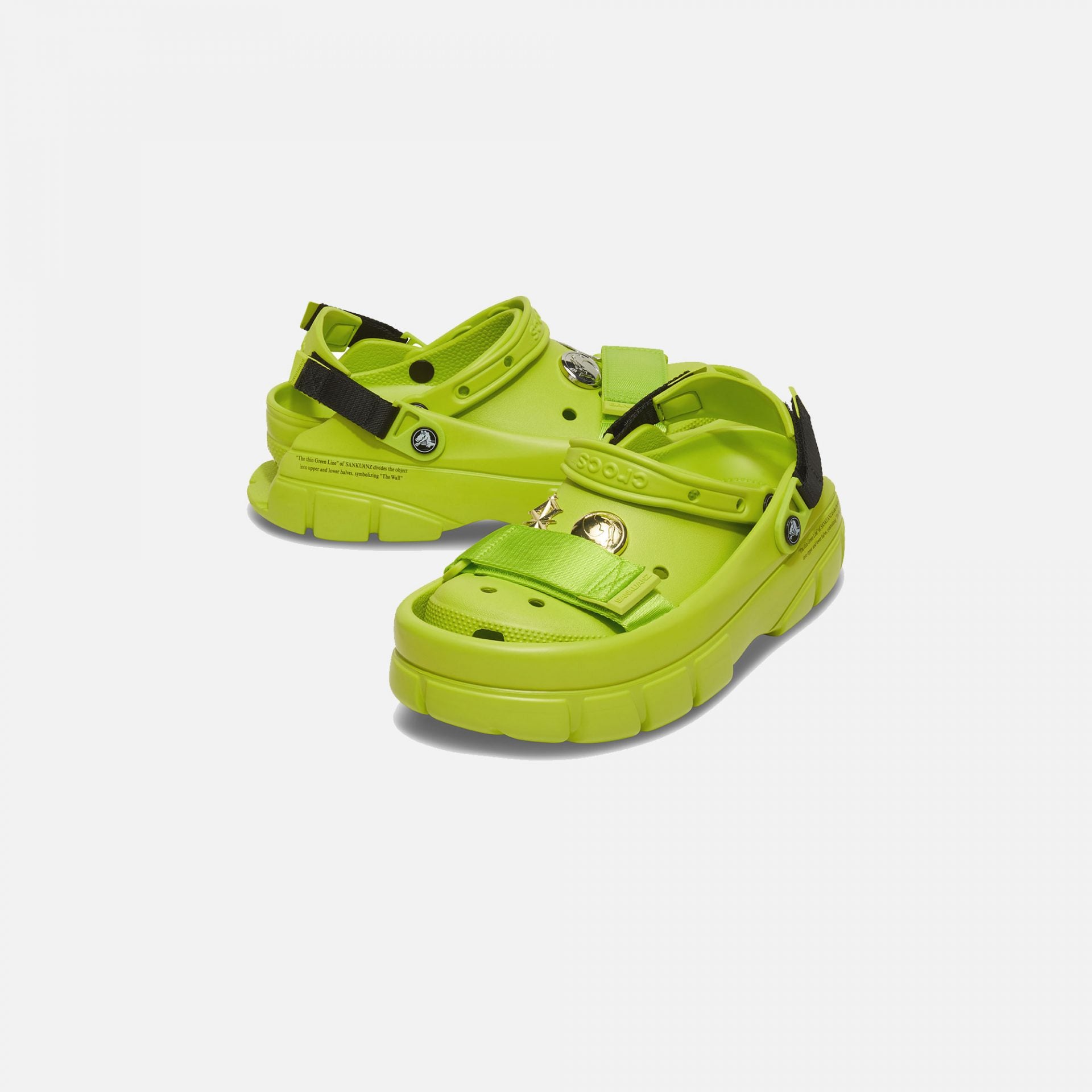 It’s an evolution of the Chinese label’s “shoe for shoes” that debuted in 2018, and naturally it’s the classic Clog that gets the nod. This lime pair has all the features you’d expect — comfy foam construction, jibbitz™ and heel straps — only there’s a chunky, detachable exterior should you need some extra protection.