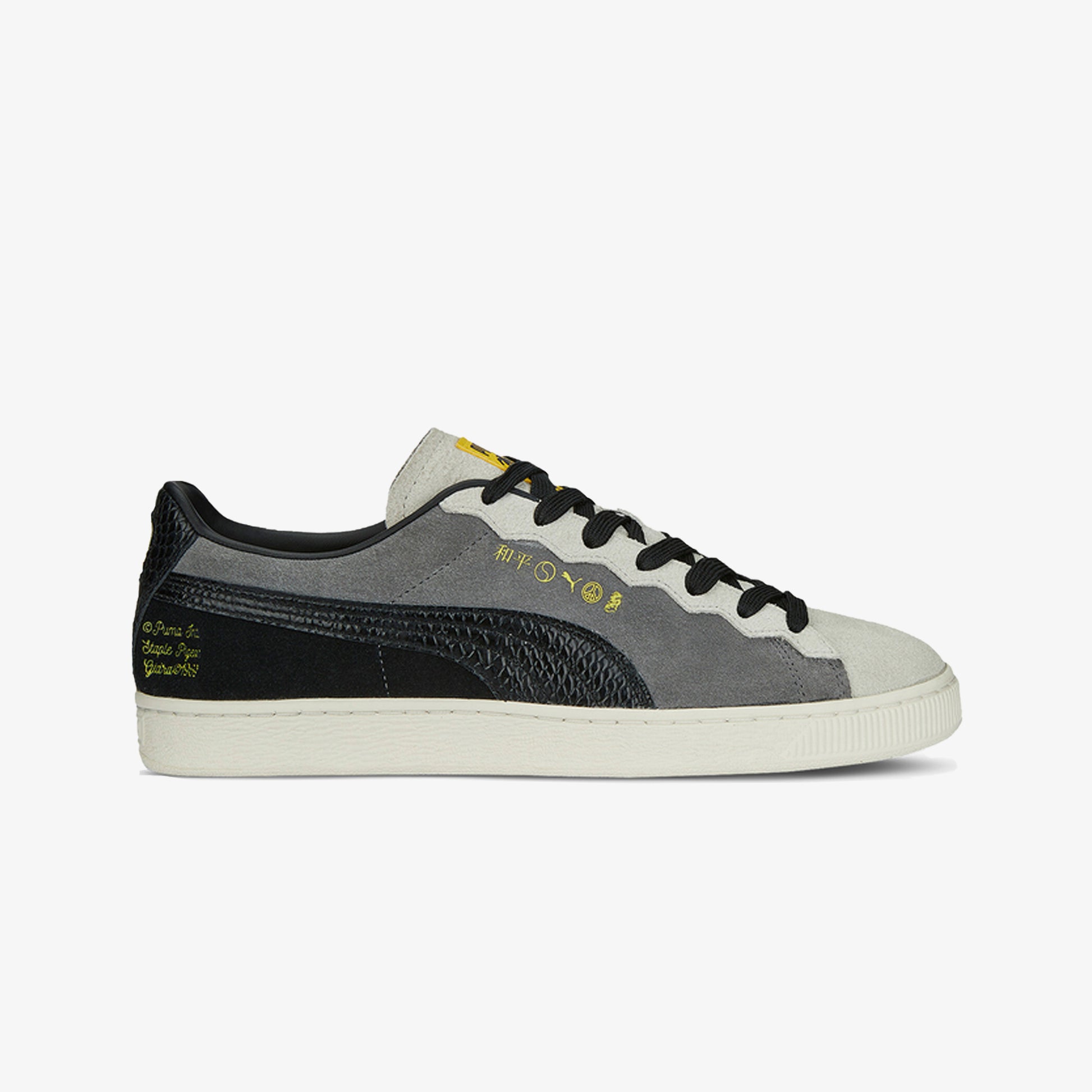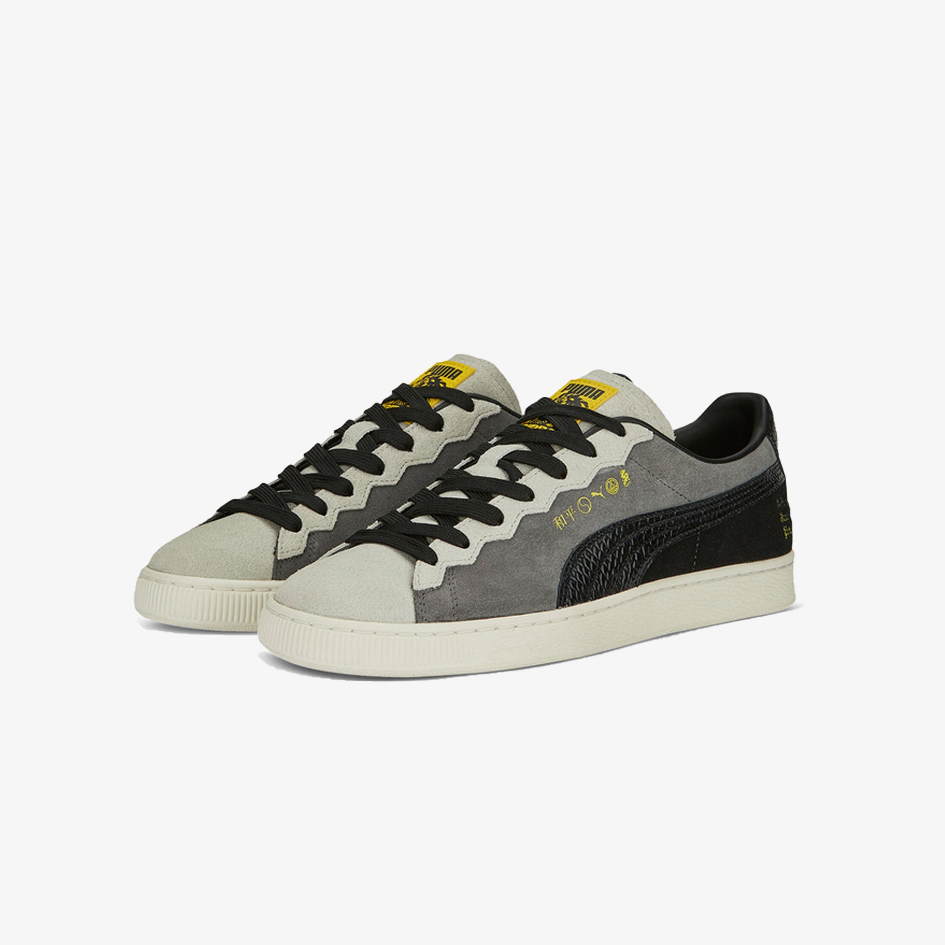The latest PUMA x STAPLE collaboration takes inspiration from Gidra, a California newspaper founded in 1969 to be a powerful Asian-American voice during the American civil rights movement. Pieces from the collection combine Jeff Staple’s trademark clean, thoughtful aesthetic, with bold colours and graphics honouring Asian-American history. This take on the Suede follows the theme, with a dual dark tone execution.