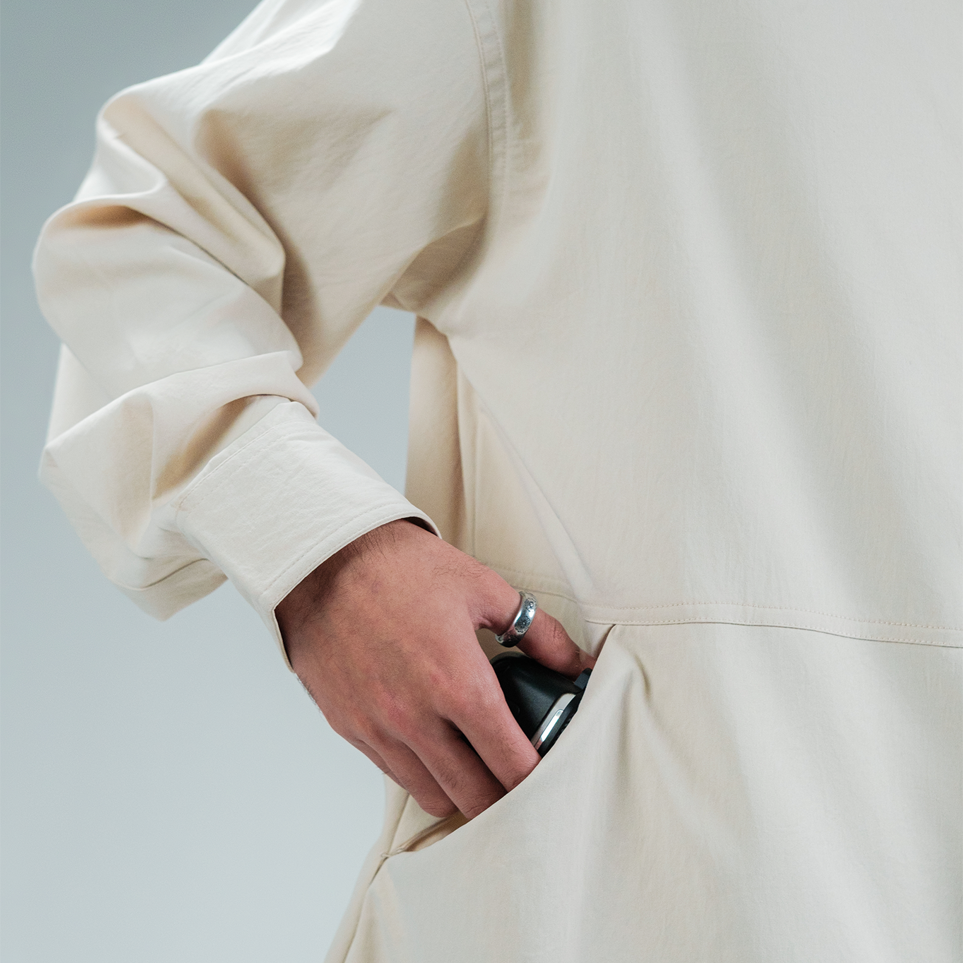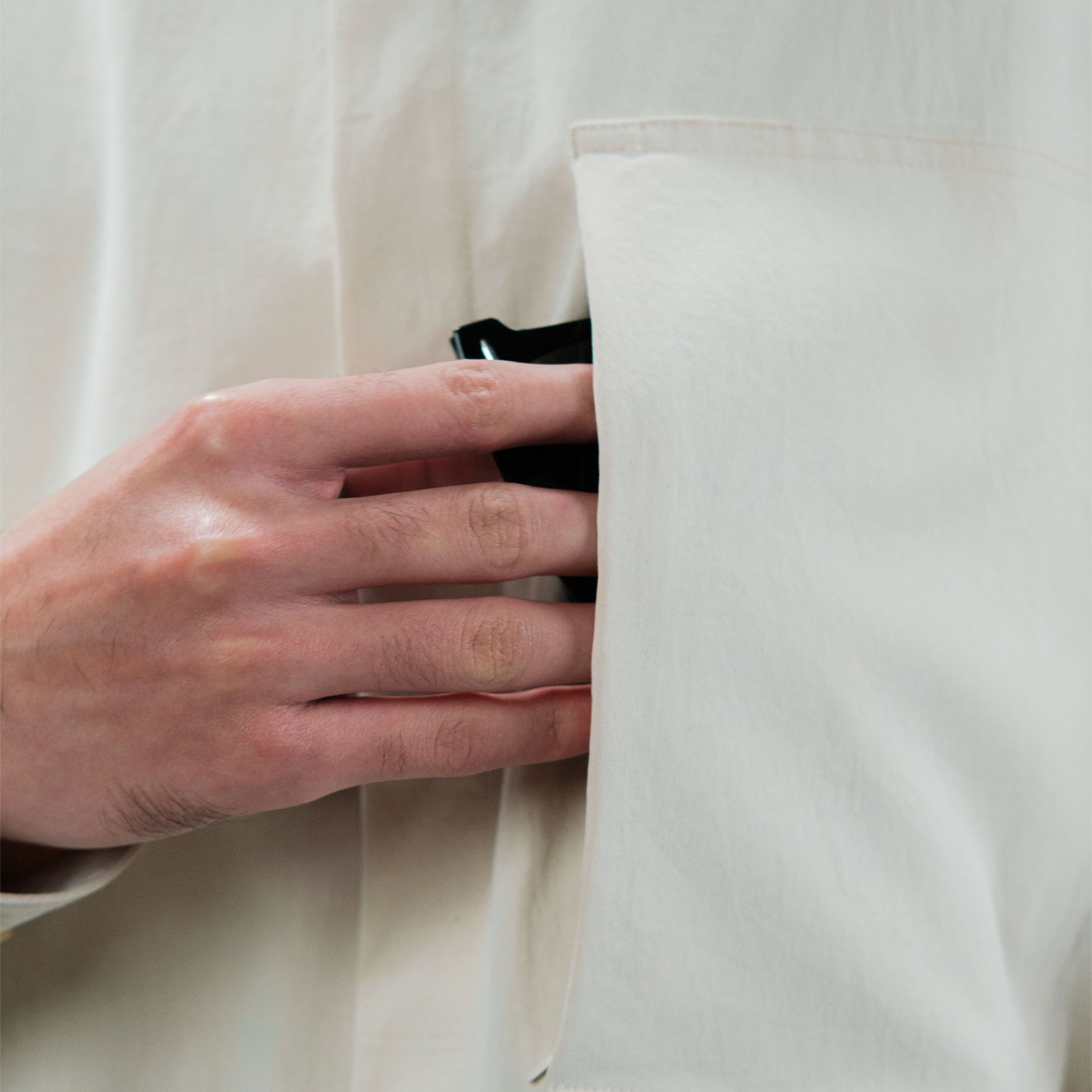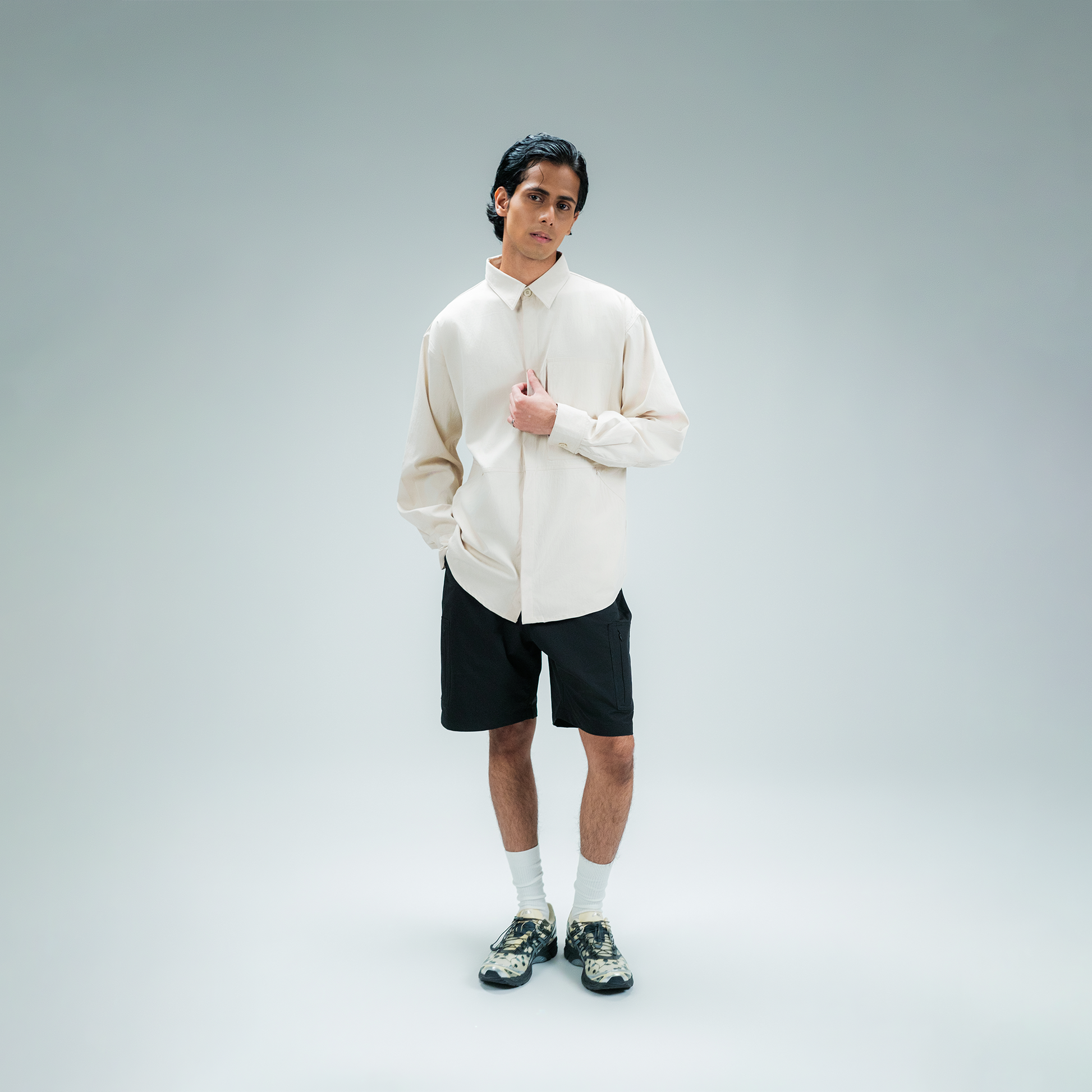 This tech inspired Full Sleeve Shirt offers a clean cut look with concealed buttons, zippered breast pocket and side pockets.