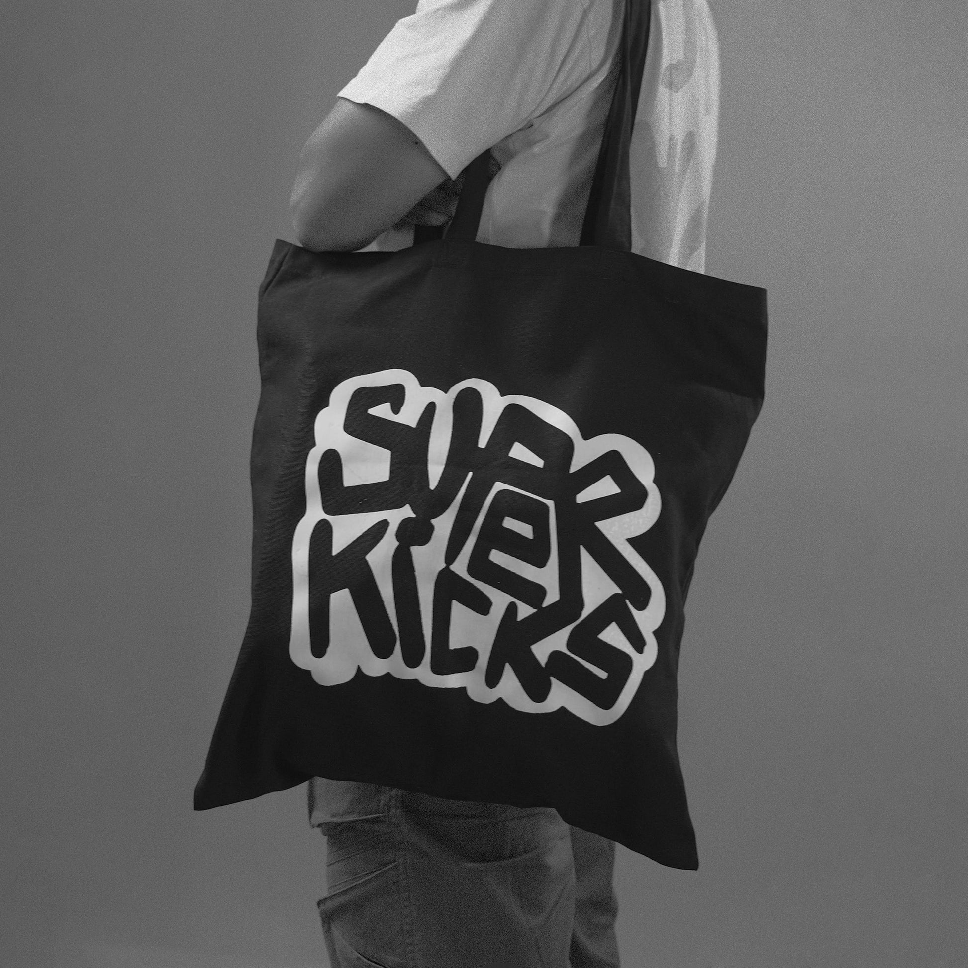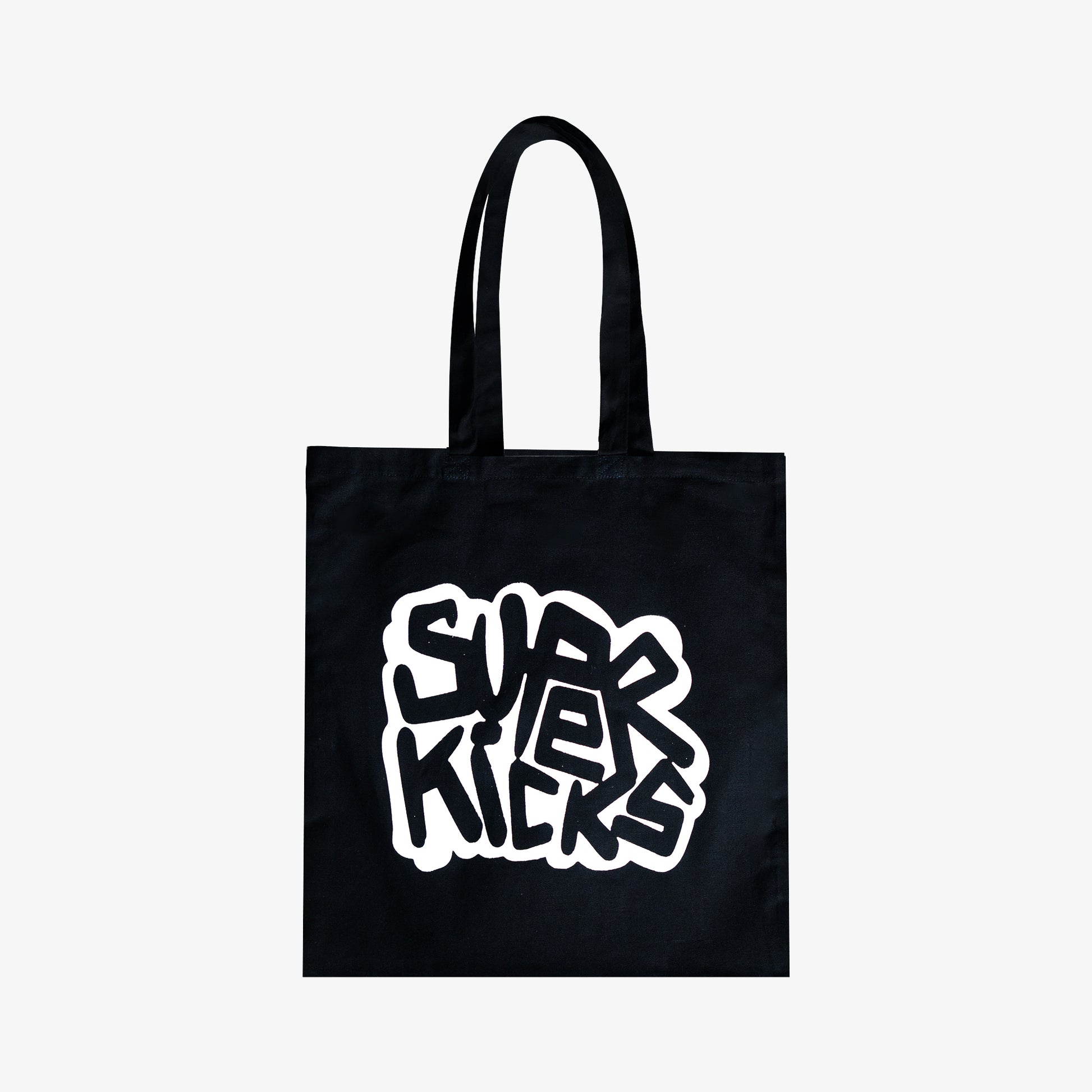 Designed for everyday use & carry. Medium sized tote bag featuring elongated handles and a bespoke Superkicks Play logo graphic.