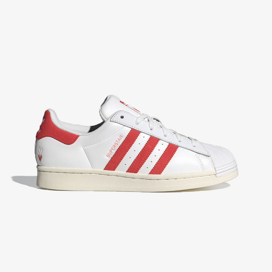 These adidas Superstar shoes are your stylish companion for everyday life. Their iconic smooth leather upper and rubber shell toe have been turning heads for over 50 years. Now crafted in a bold color palette, they bring new flare to a forever classic. Embroidered hearts on the heel add an extra dose of sweetness. And the cushioned footbed means your arches and soles get as much love as your style. For a shoe that's shaped culture and defined generations, the Superstar makes a statement in any setting. This product features at least 20% recycled materials. By reusing materials that have already been created, we help to reduce waste and our reliance on finite resources and reduce the footprint of the products we make.