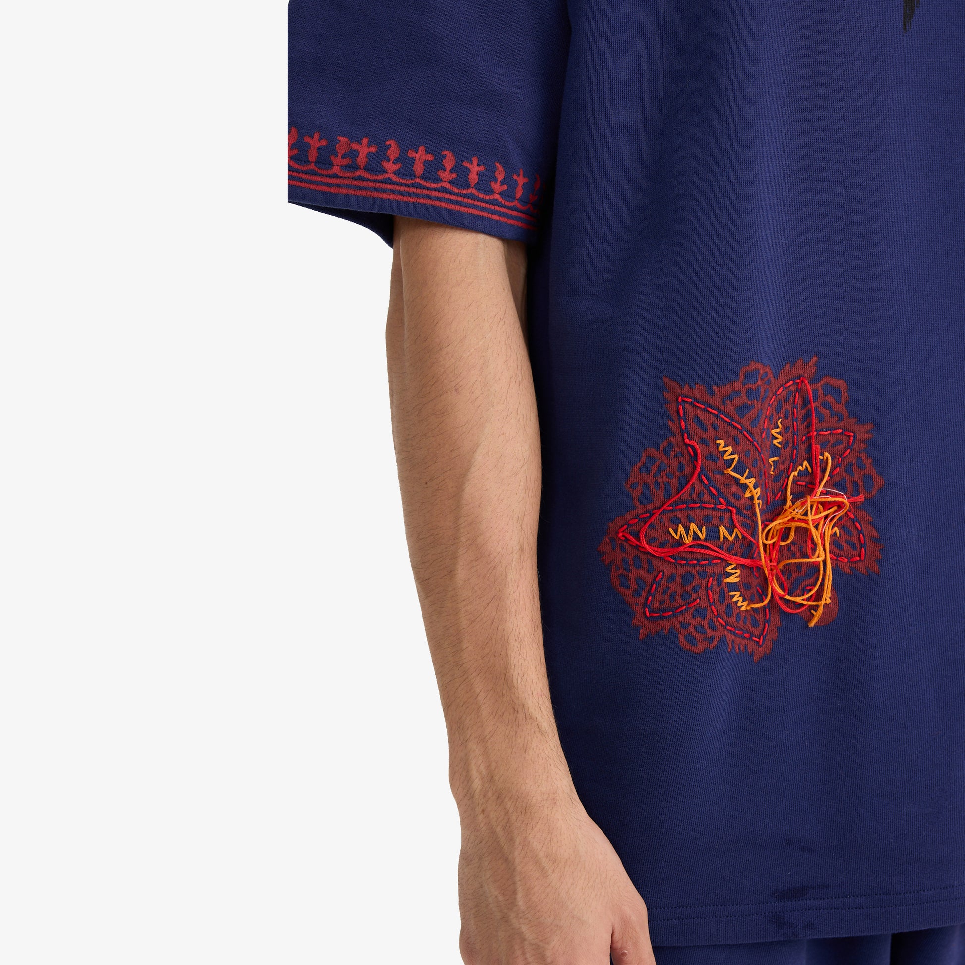 Immerse yourself in the "Toxic Love" Handmade Tee, a powerful blend of craftsmanship and raw emotion. Block-printed and hand kantha embroidered, this piece captures the darker side of love with deep, muted hues and a burning flower motif. The design reflects the melancholic beauty of a love that has faded into toxicity, with each detail symbolizing the intense emotions of passion gone awry.