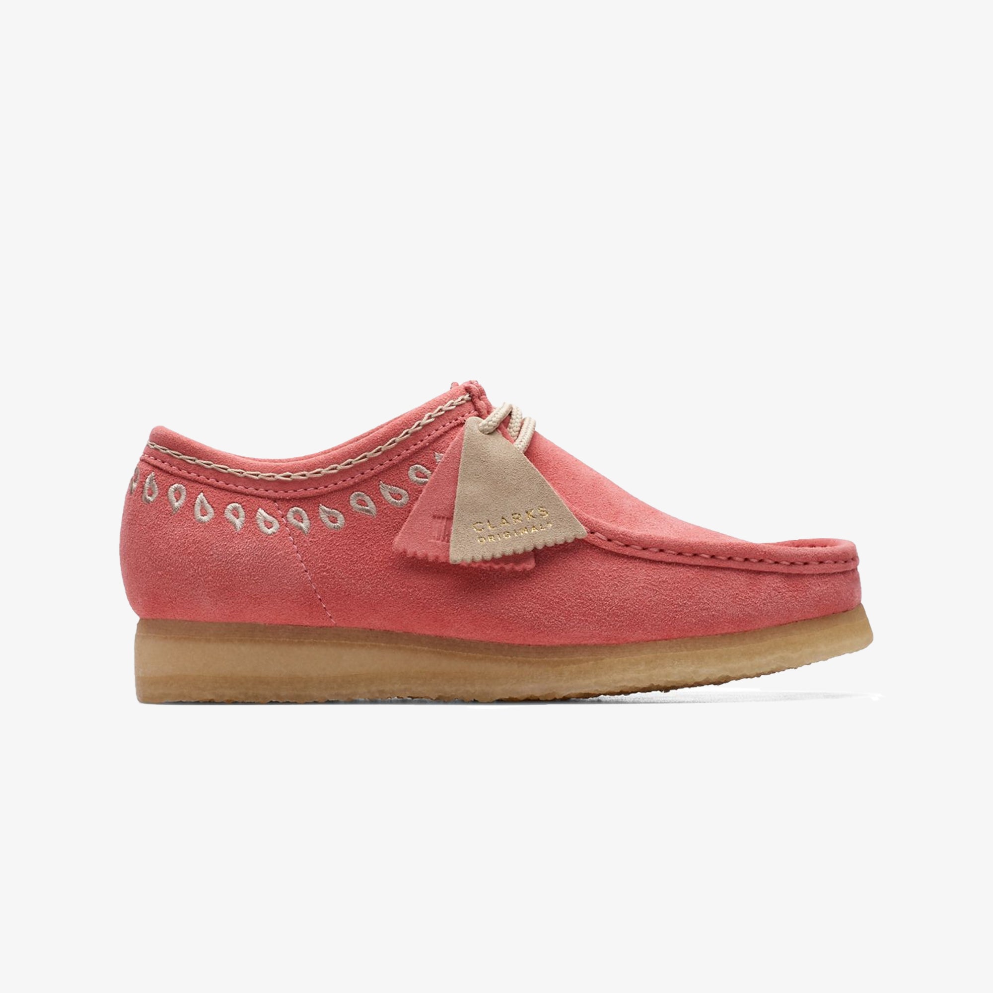 Our heritage Wallabee in vibrant pink turns up the volume on summer style. An embroidered collar brings a tactile twist - complementing the soft suede uppers perfectly, while our statement crepe sole is left natural for a retro look.
