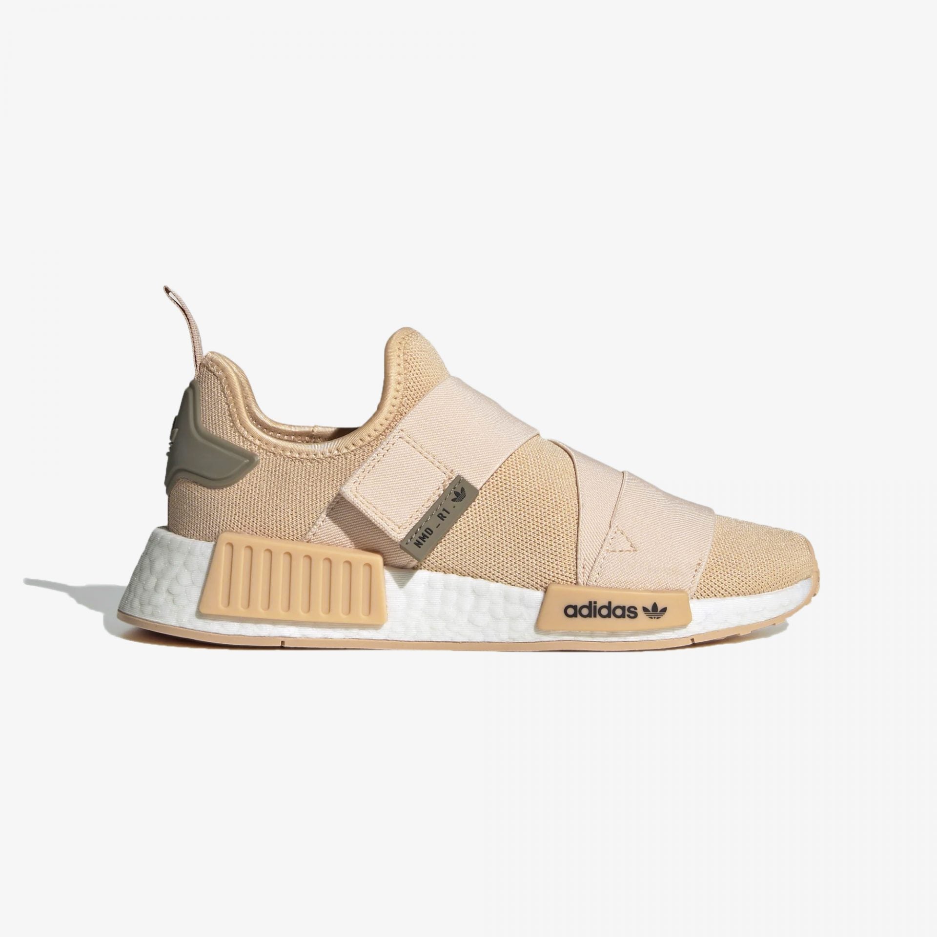 In a constantly changing world, be part of the change for good. Join our mission to help end plastic waste by slipping on these adidas NMD_R1 Strap shoes. As expected for an NMD, the signature elements are there. You have the sock-like knit upper, the plush BOOST midsole and, of course, the iconic heel plugs. One big difference? The strap, which replaces the laces to create a streamlined, modern look.