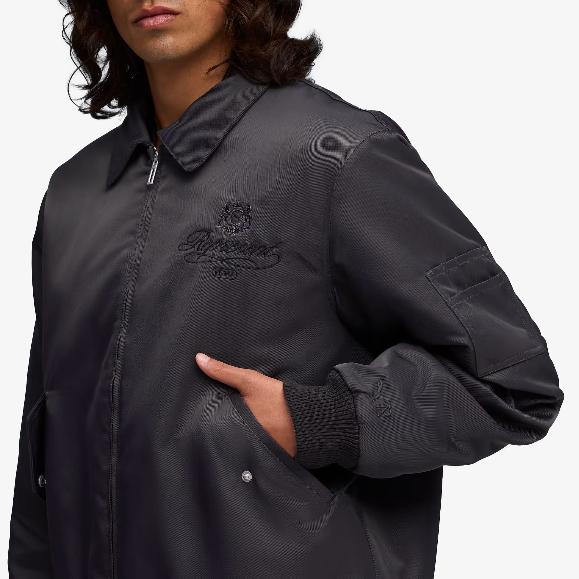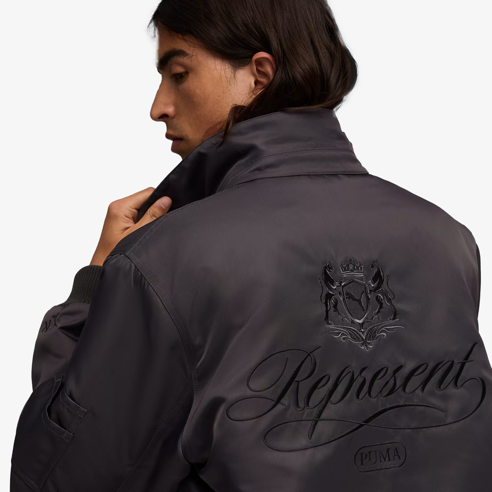 PUMA | x REPRESENT PADDED BOMBER JACKET { FLAT DARK GRAY