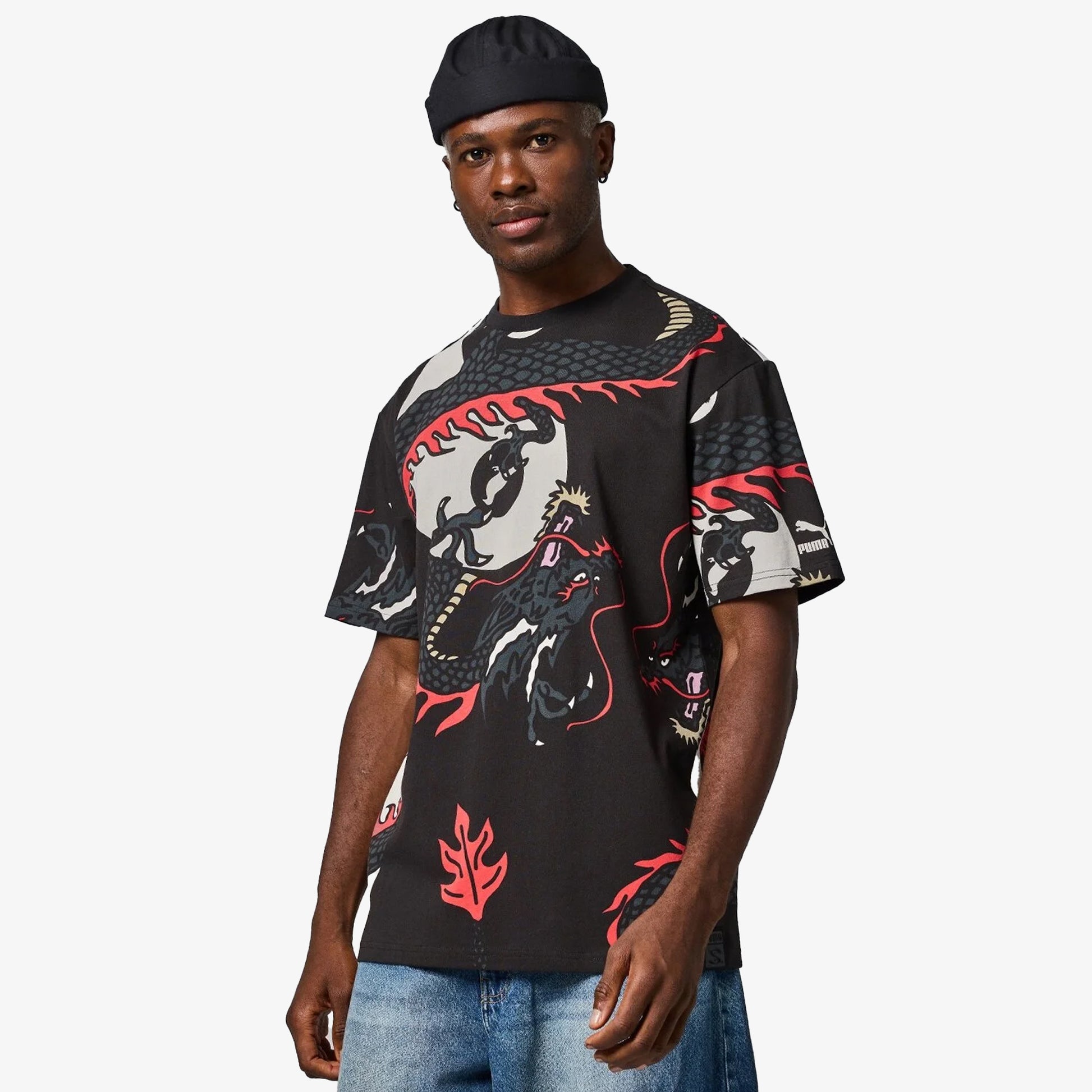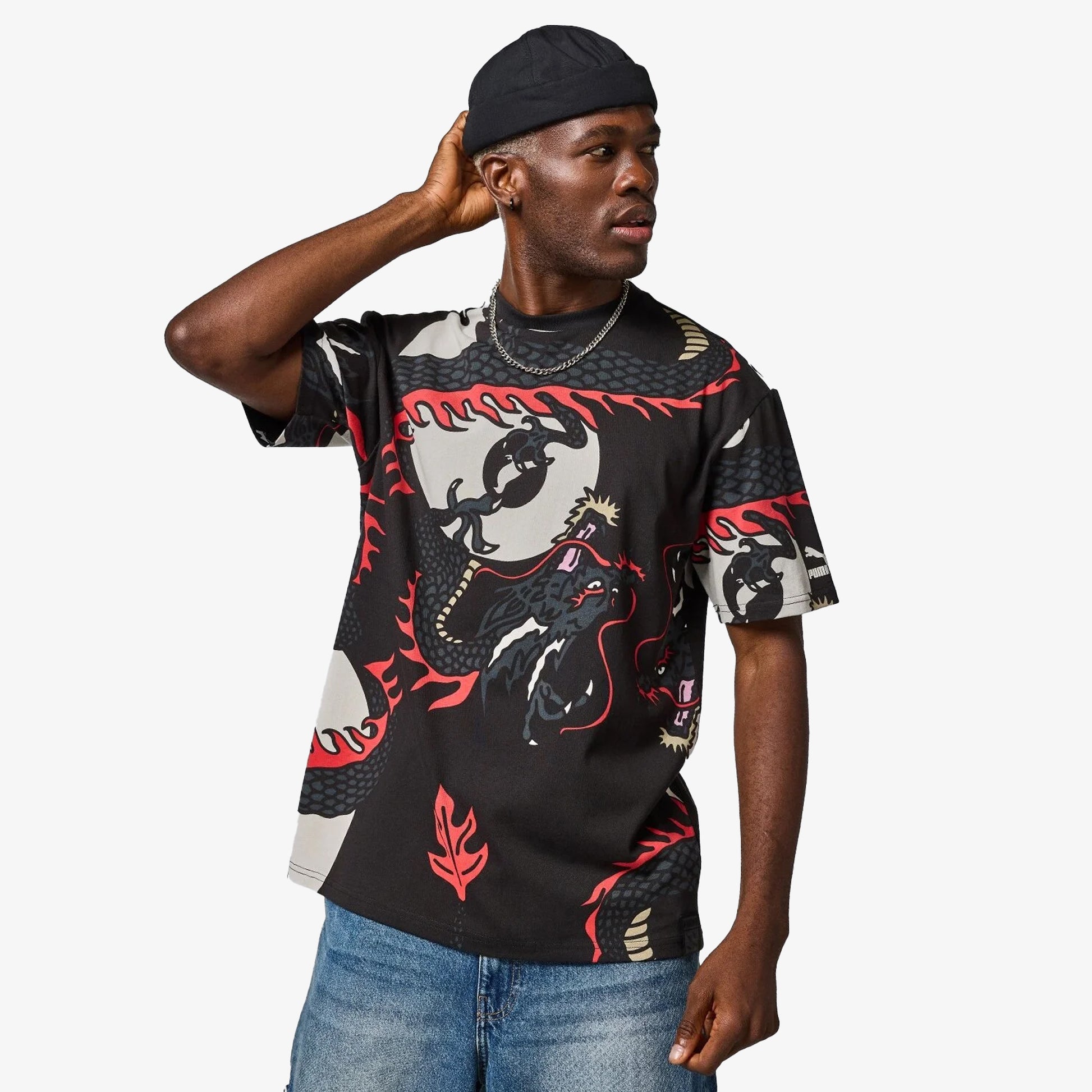 Jeff Staple is renowned throughout the streetwear world for his iconic work that incorporates streetwear and design. His latest collaboration with PUMA continues to celebrate the AAPI community, with designs that feature an S-shaped dragon from Staple’s archive and a bolder take on yin-yang iconography. This tee goes all out with the theme with an all-over-print graphic.