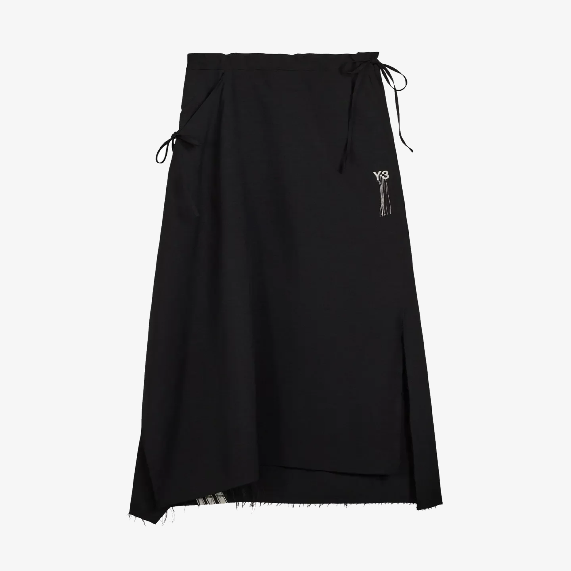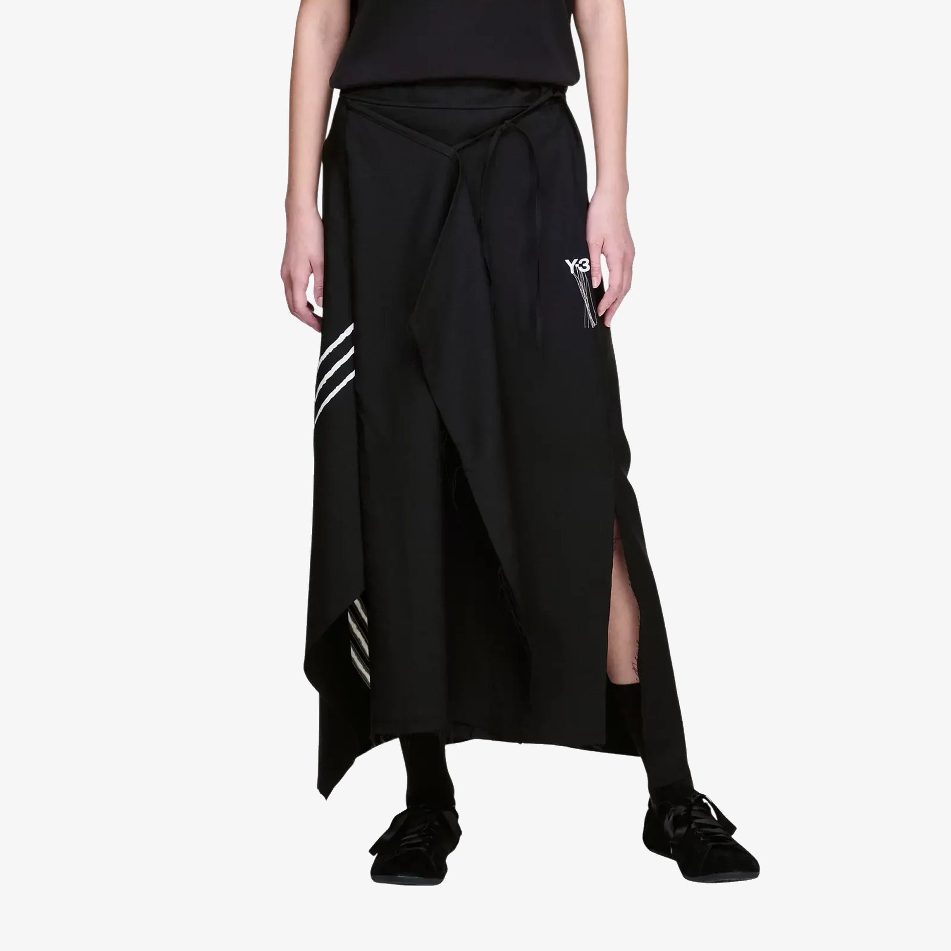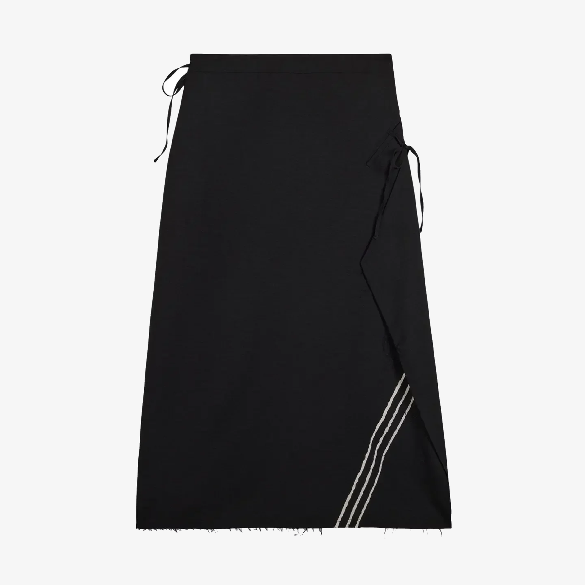 A Y-3 skirt with raw cut 3-Stripes and versatile styling options.
